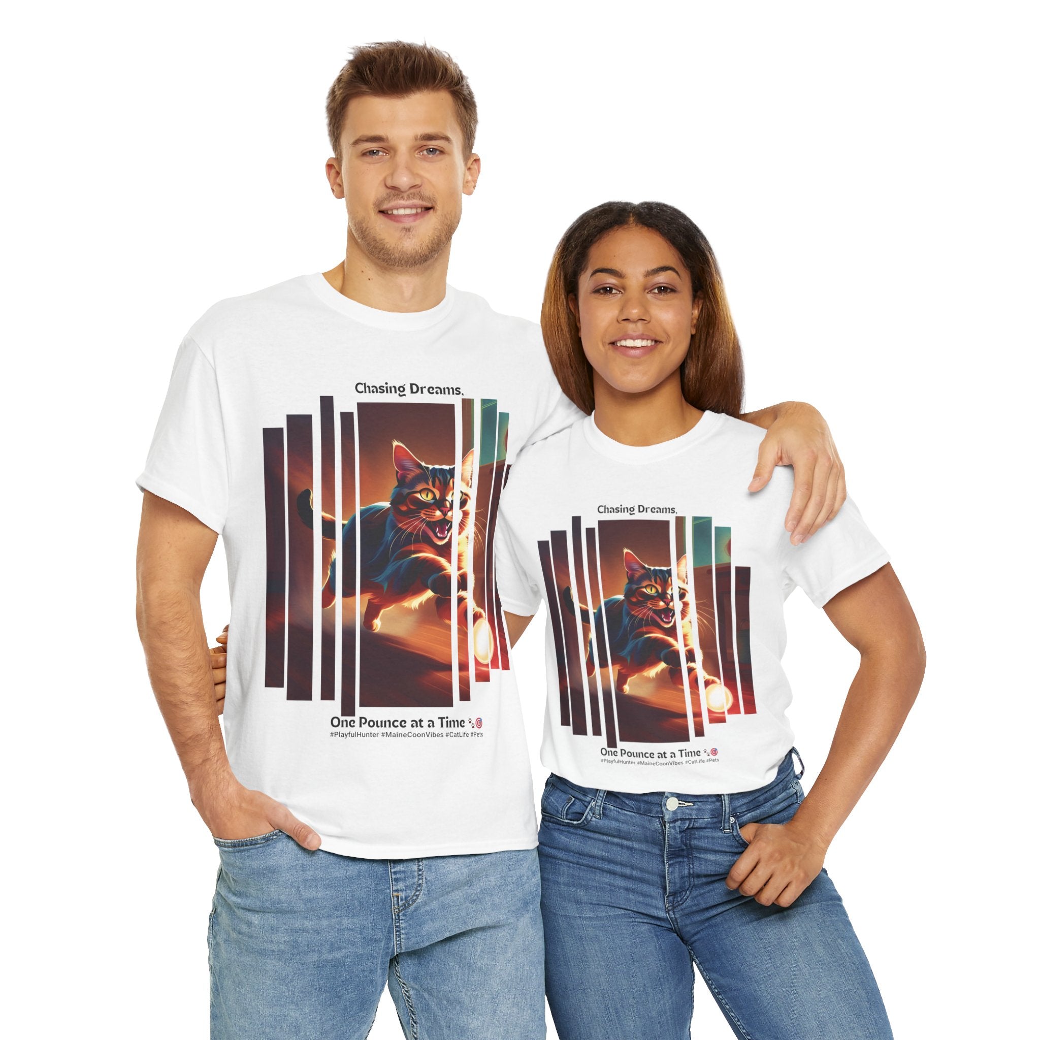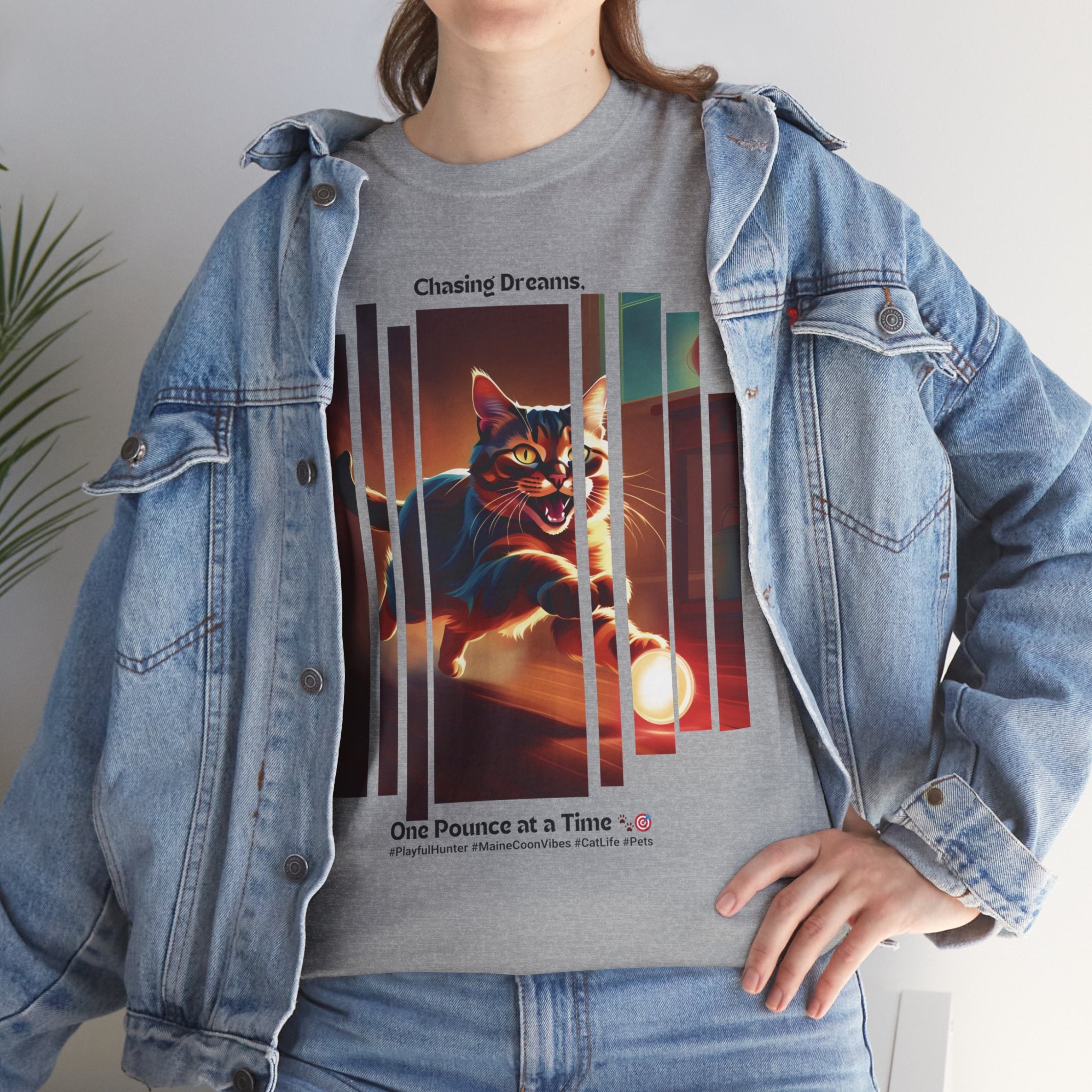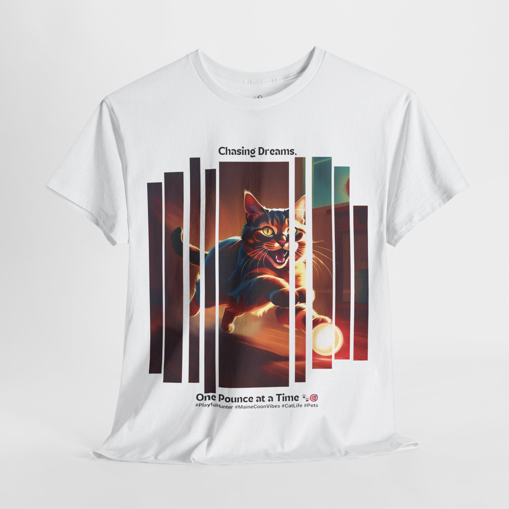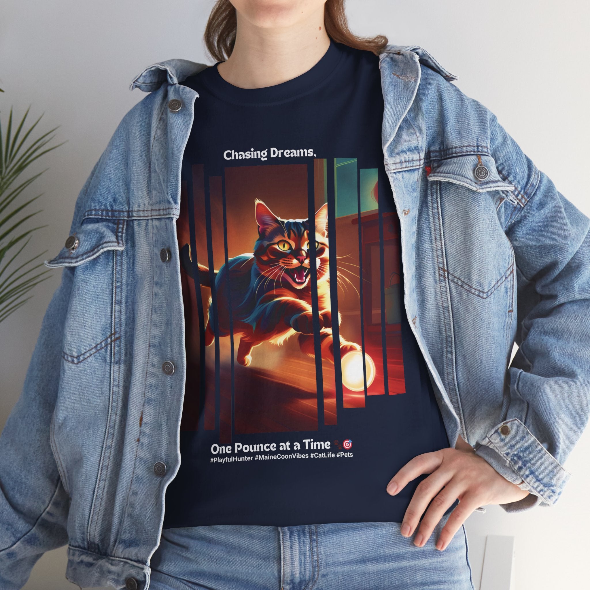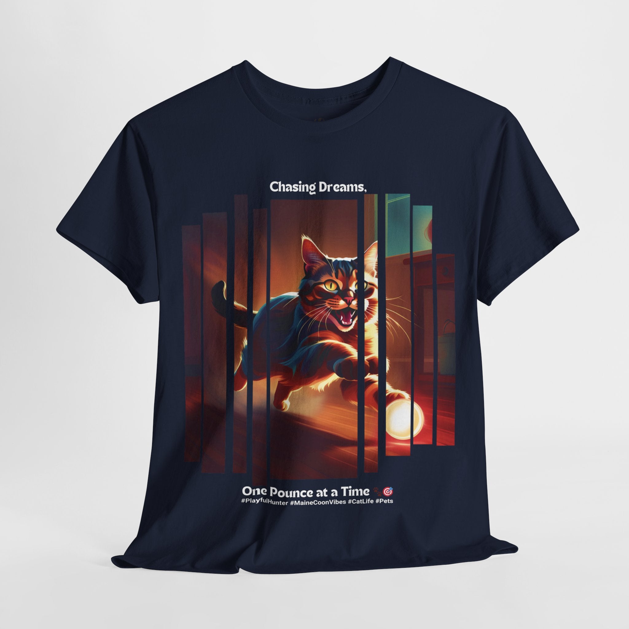 Unisex “Chasing Dreams, One Pounce at a Time” Maine Coon T‑Shirt – Dreaming Cat Gift