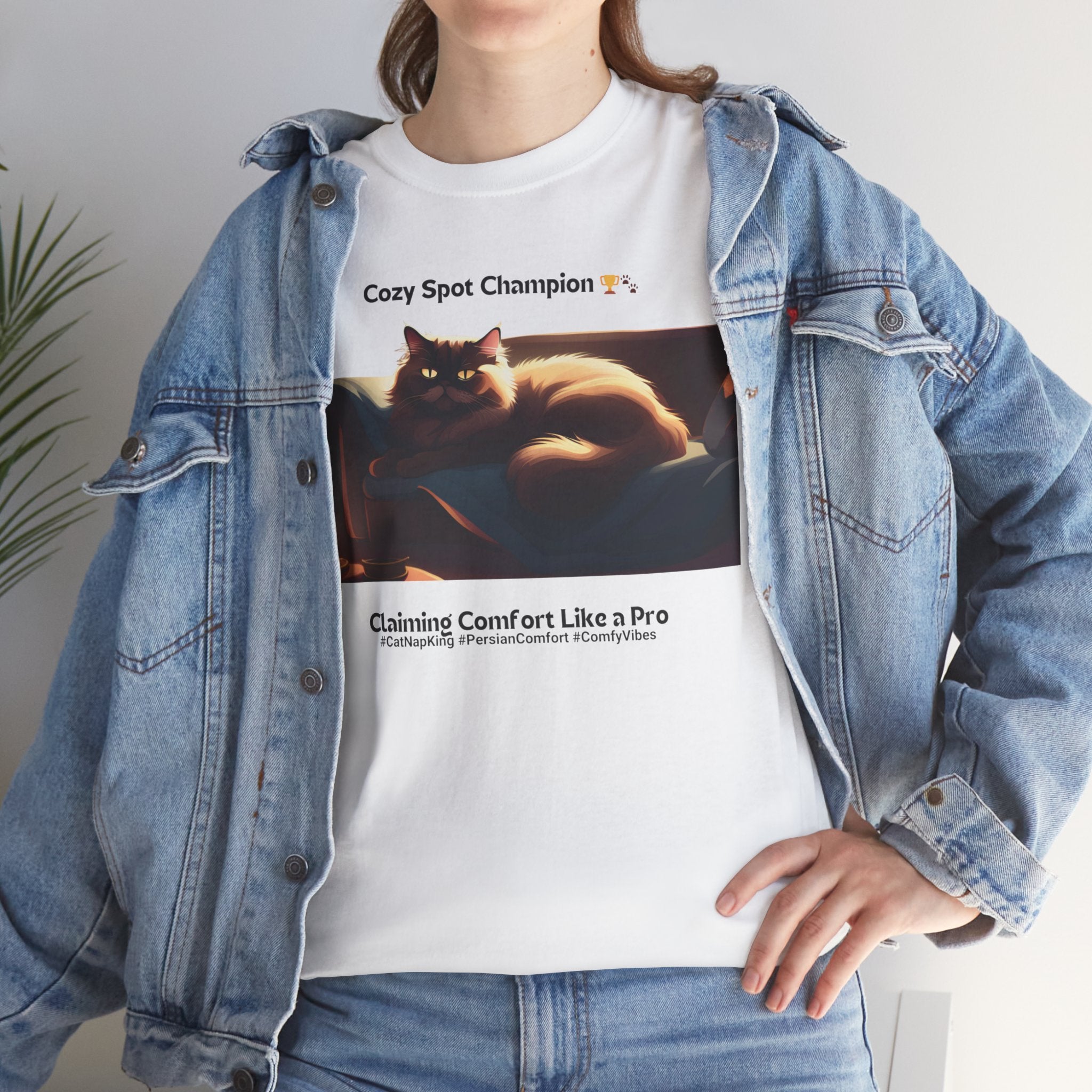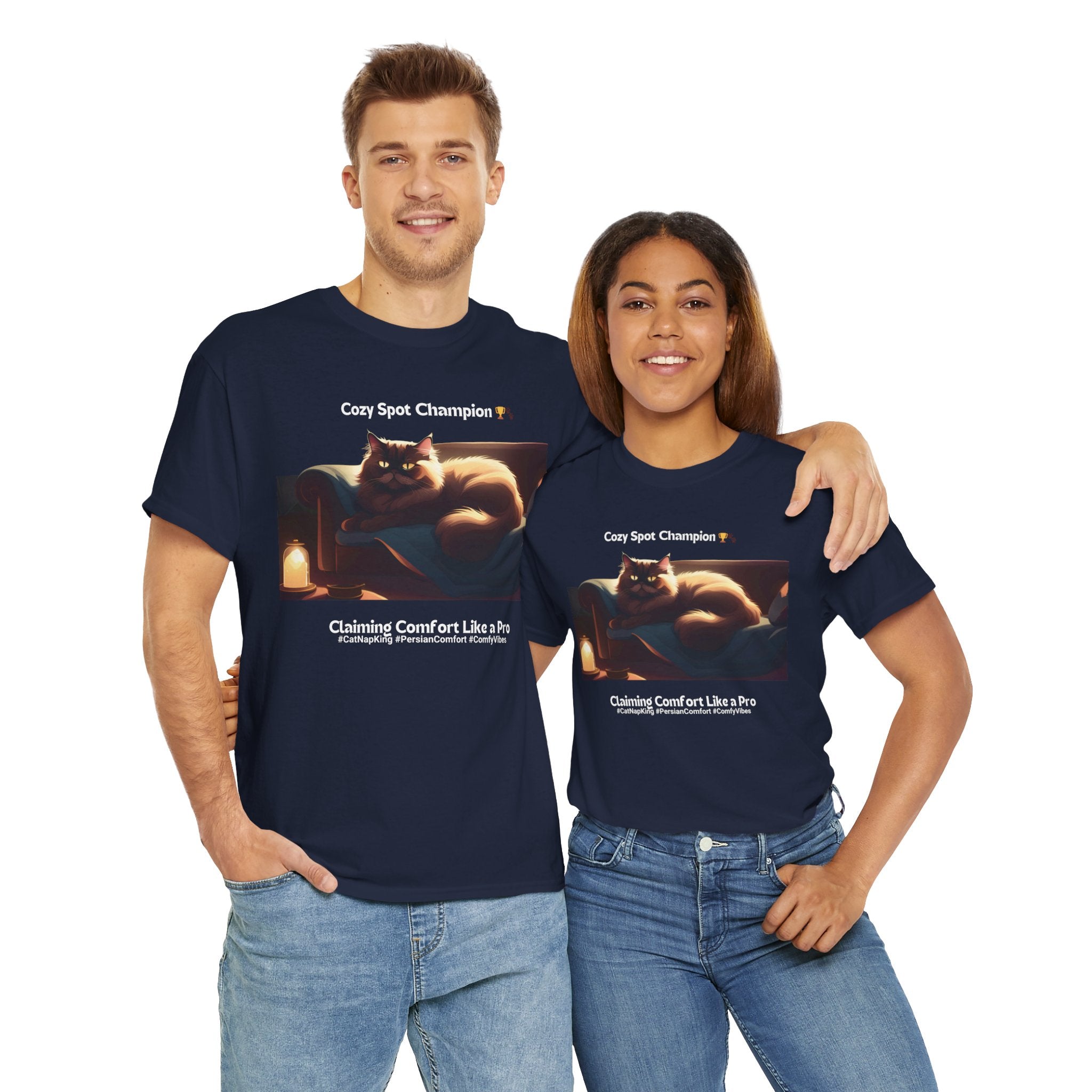 Unisex “Cozy Spot Champion” Persian T‑Shirt – Nap King Cat Gift