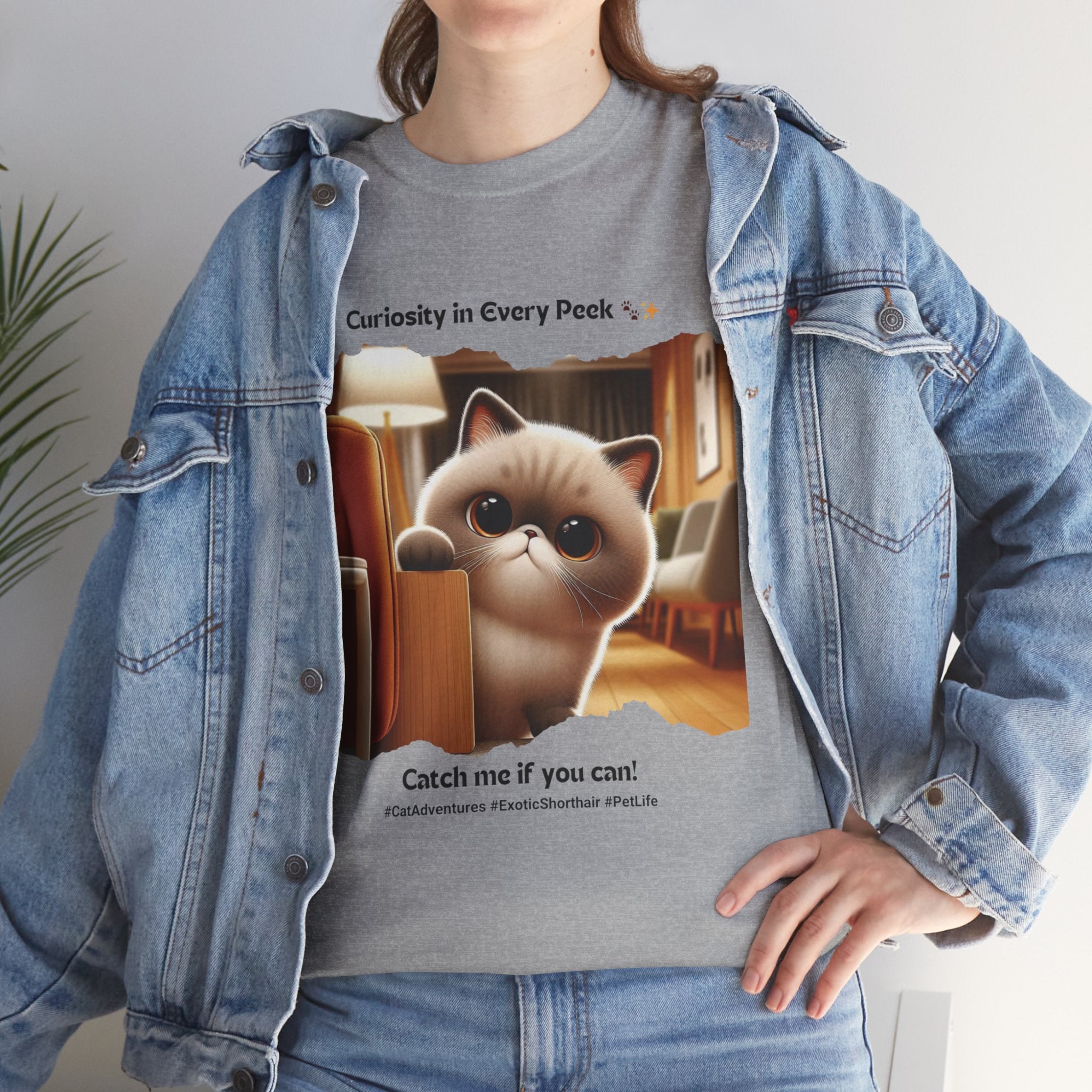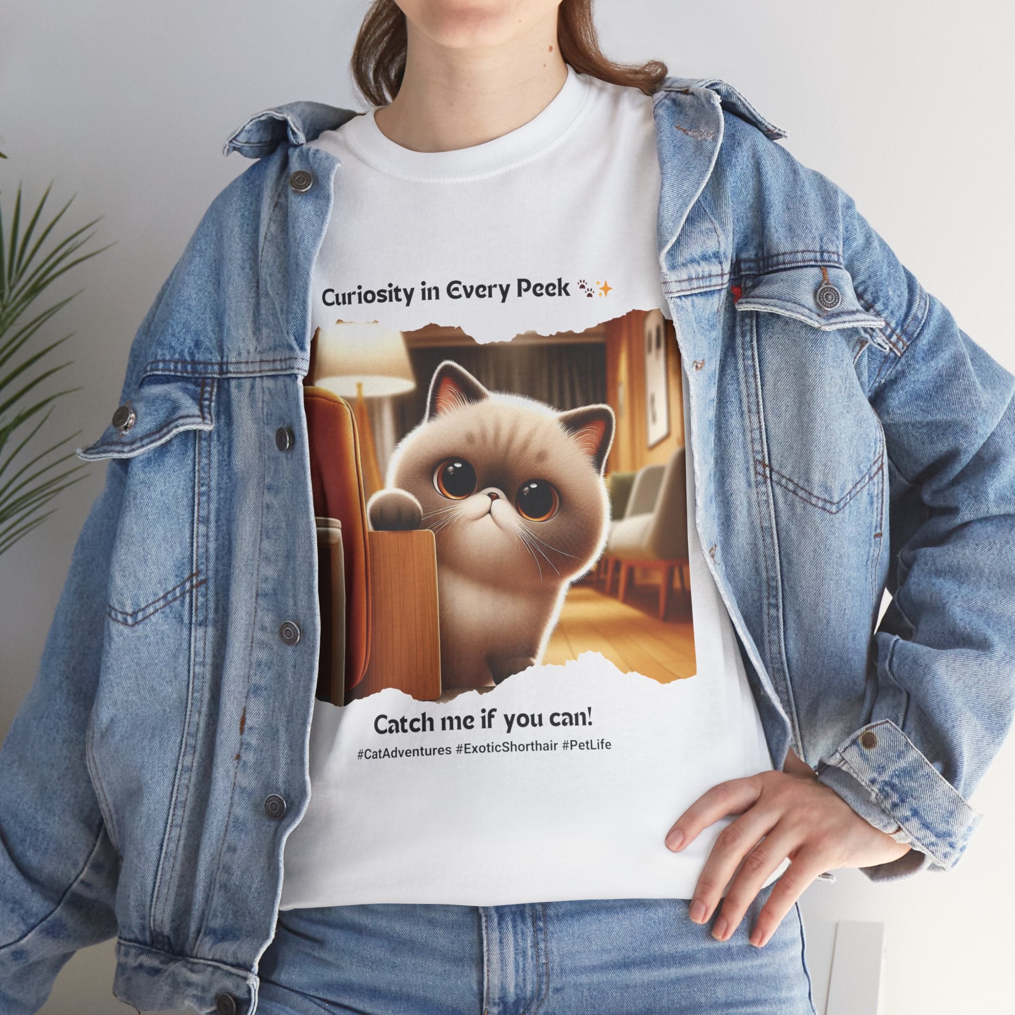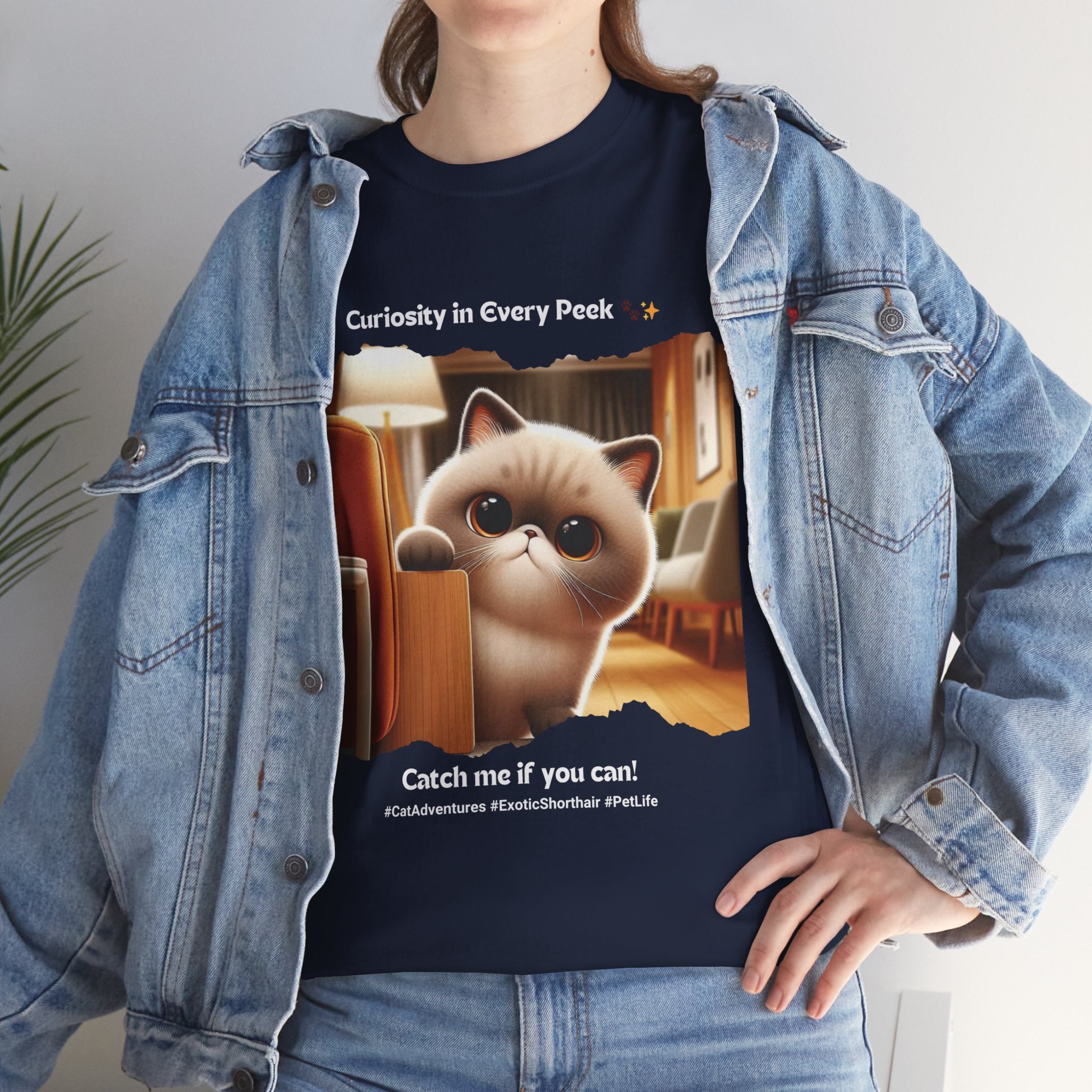 Unisex “Curiosity in Every Peek” Exotic Shorthair T‑Shirt – Inquisitive Cat Gift