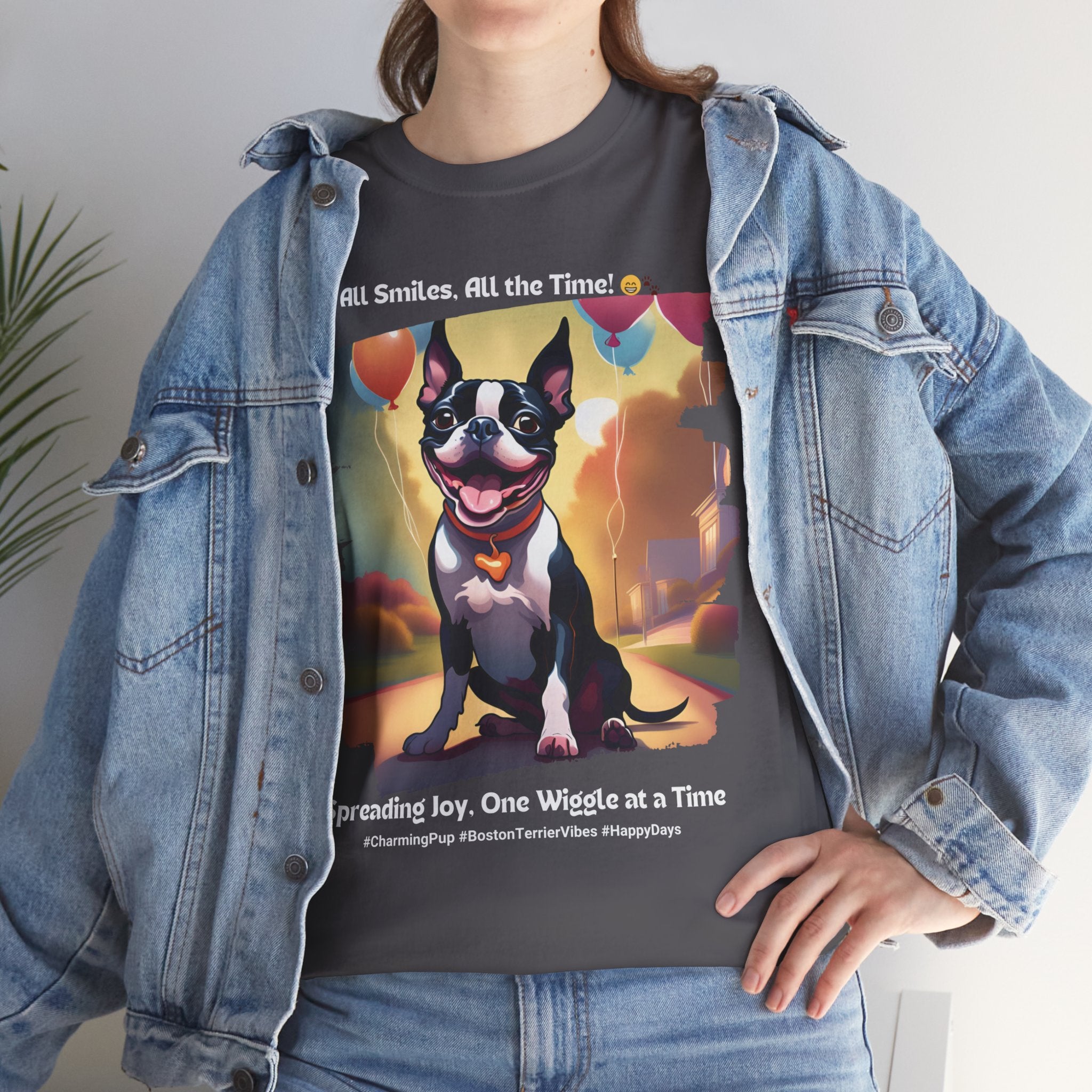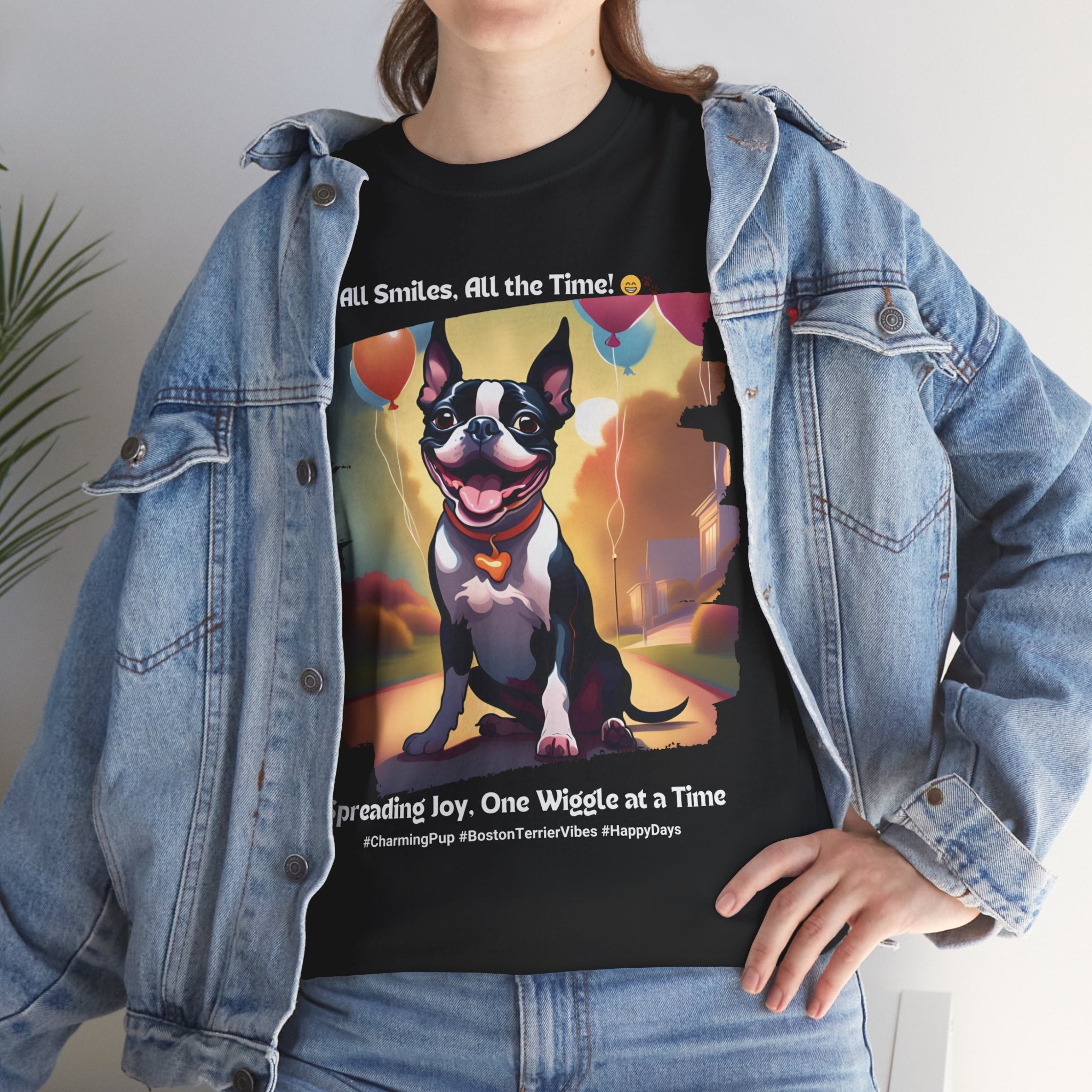 Unisex “Happy Days” Boston Terrier T‑Shirt – Bright Mood Pup Tee