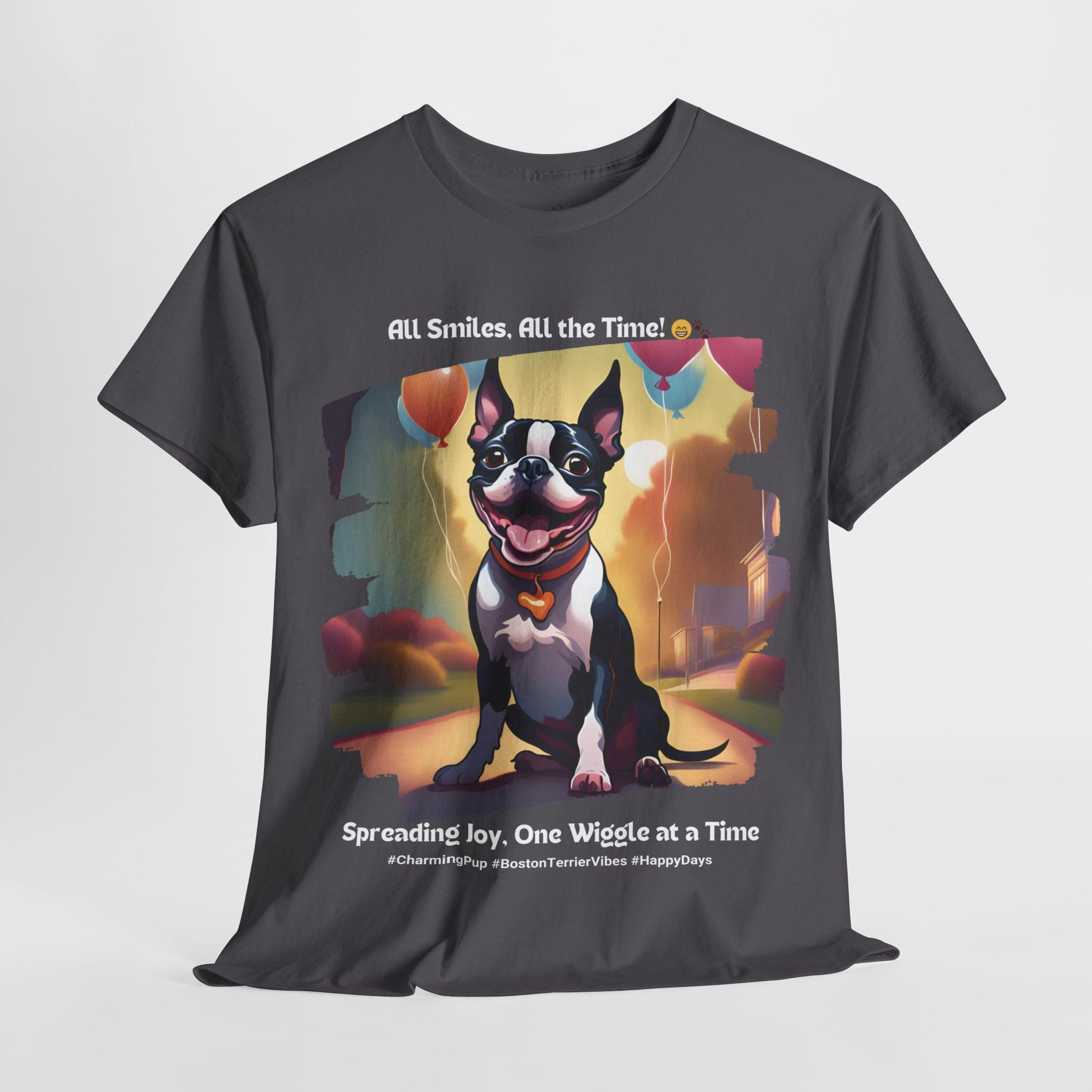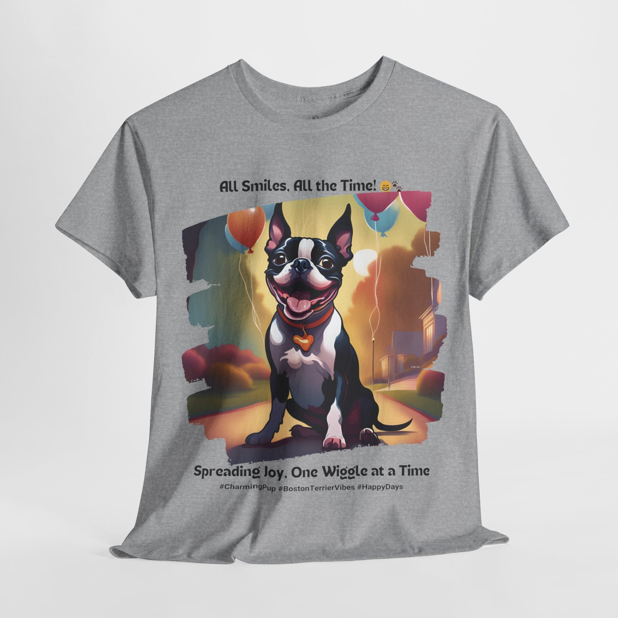 Are you a proud Boston Terrier owner who loves the joy and positivity your furry friend brings to your life? This t-shirt is a must-have for any dog parent who appreciates the incredible energy and infectious smile of their canine companion. Our design features a happy Boston Terrier surrounded by balloons, perfect for spreading joy and happiness wherever you go.