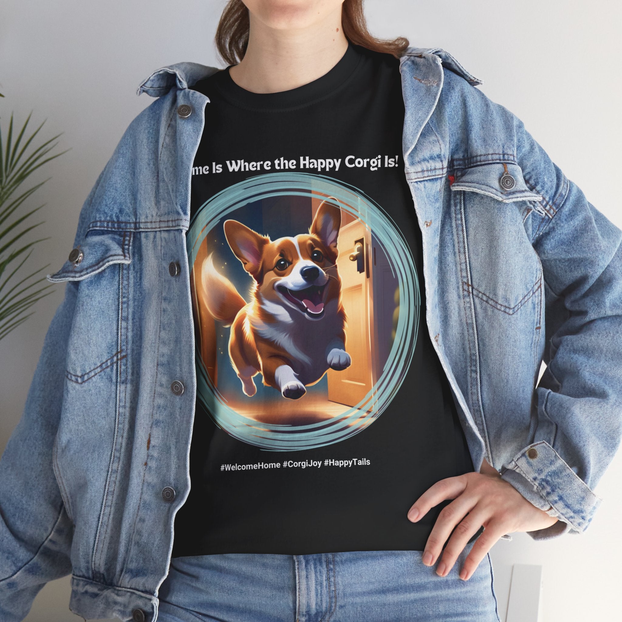 Unisex “Home Is Where the Happy Corgi Is!” T‑Shirt – Happy Home Pup Gift