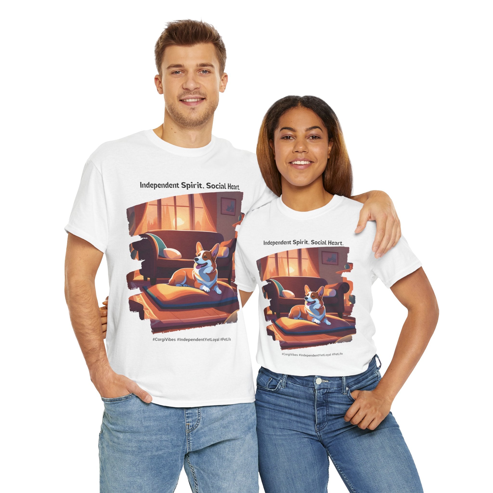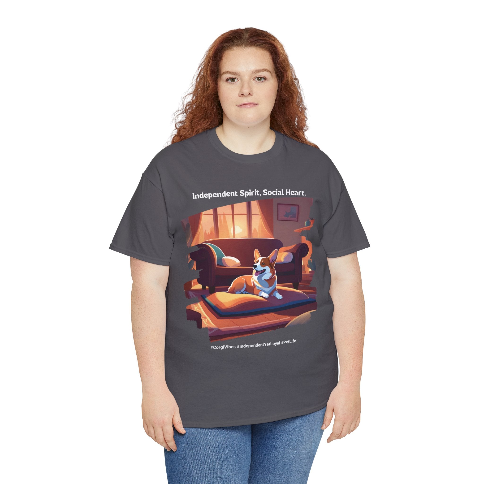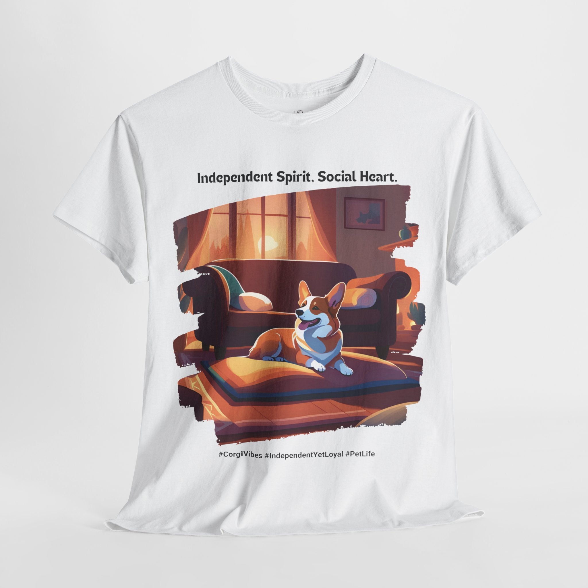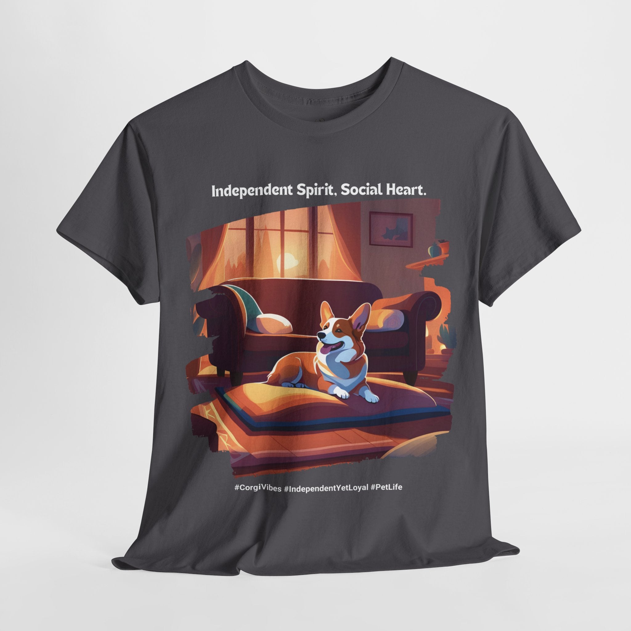 Unisex “Independent Spirit, Social Heart” Corgi T-Shirt – Corgi Vibes, Dog Lover Gift