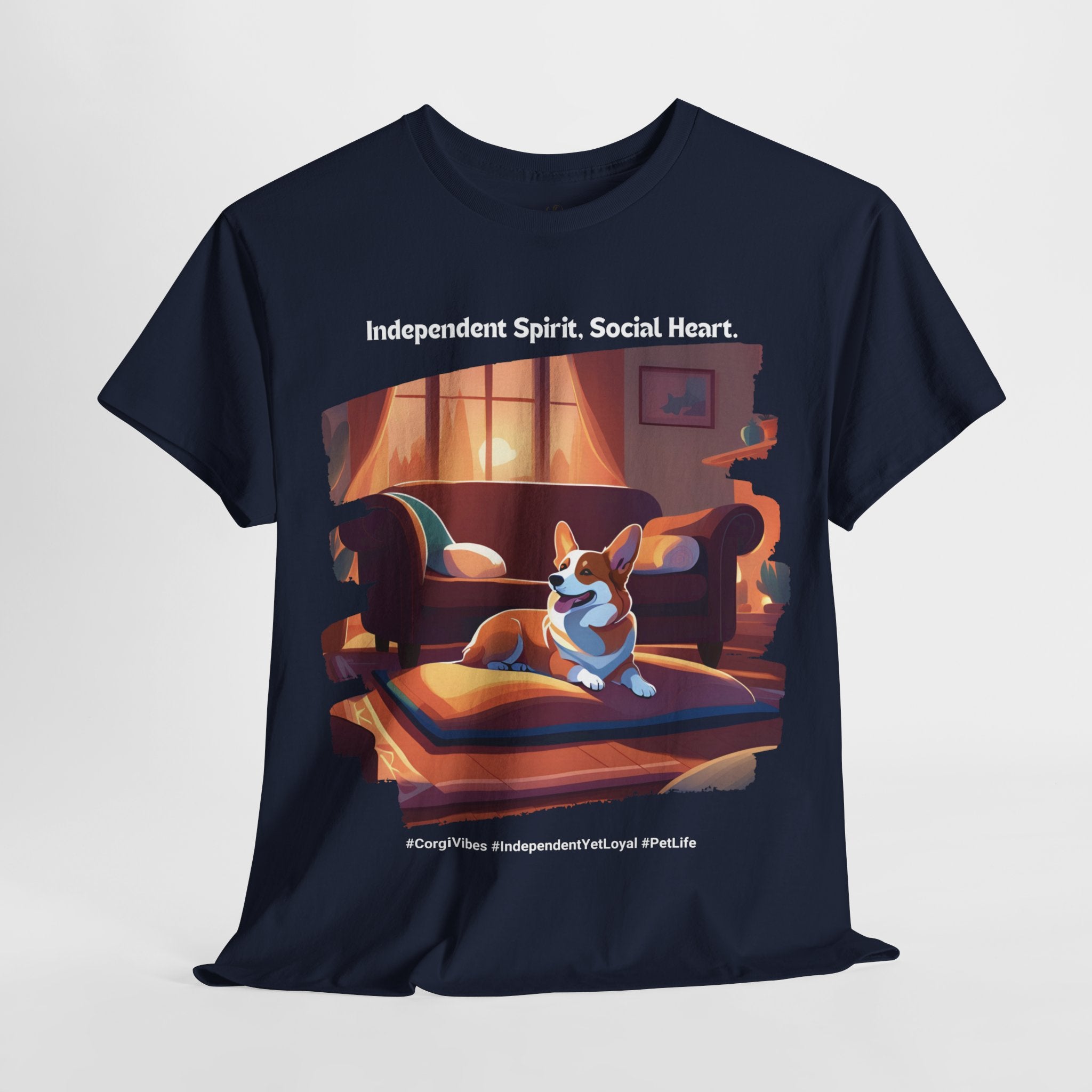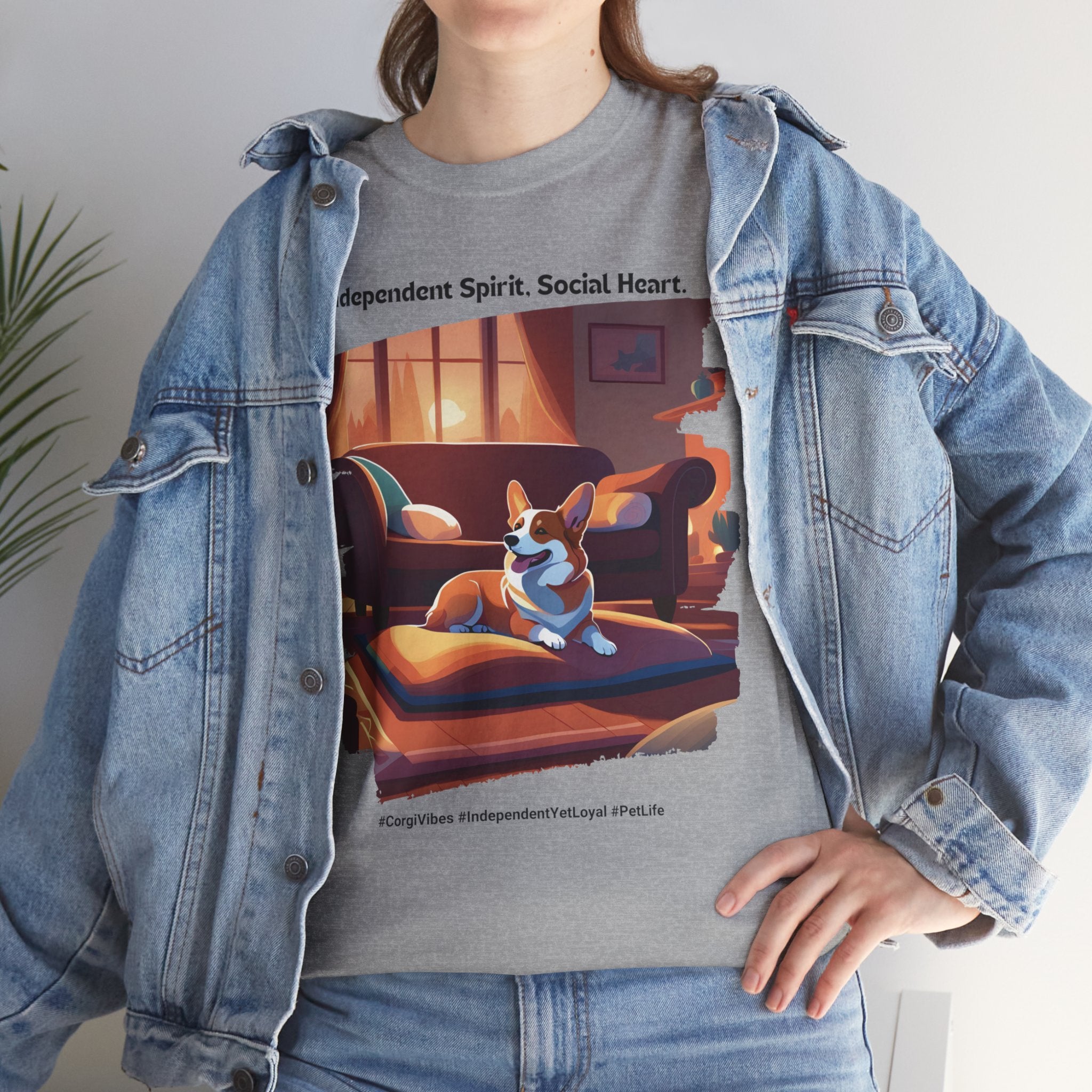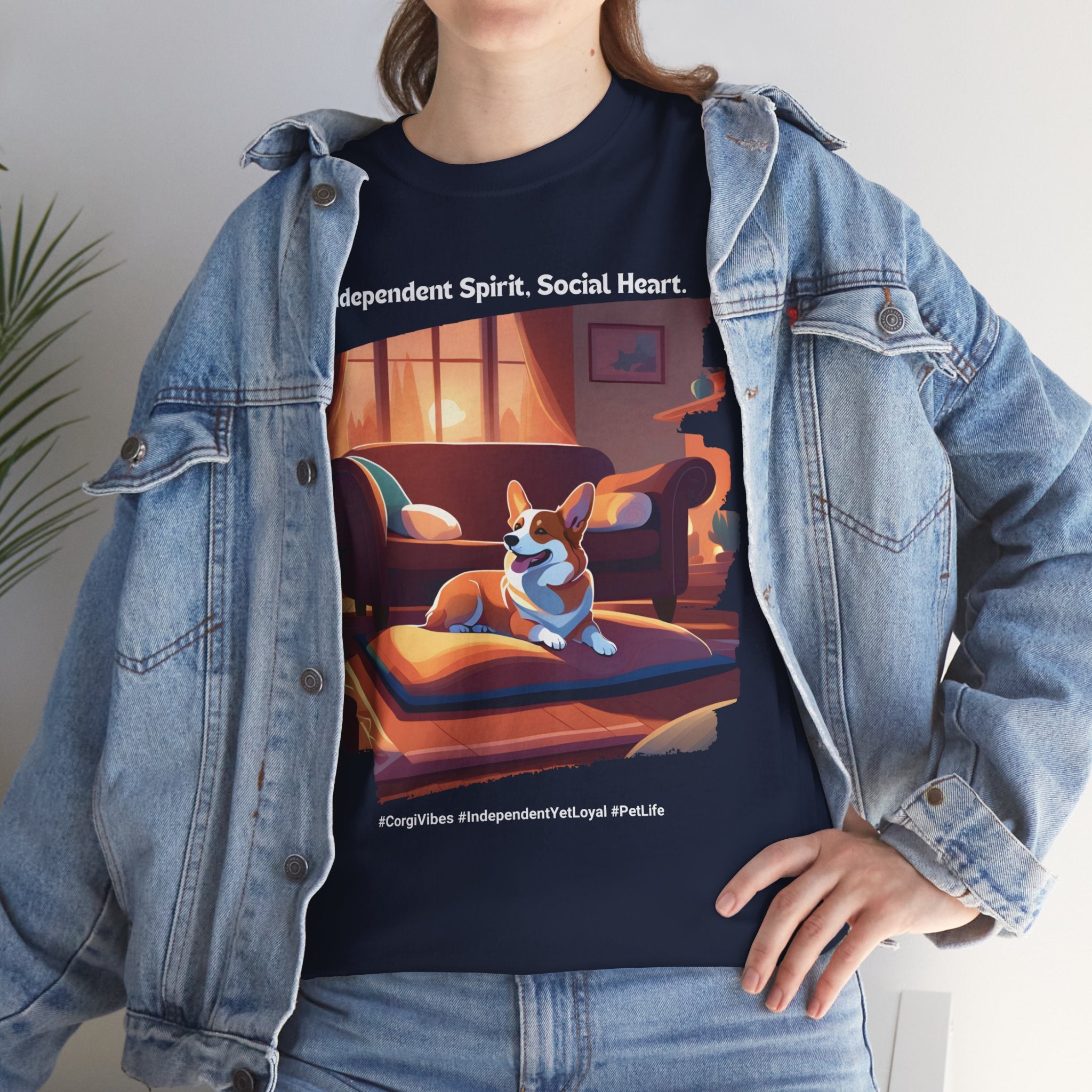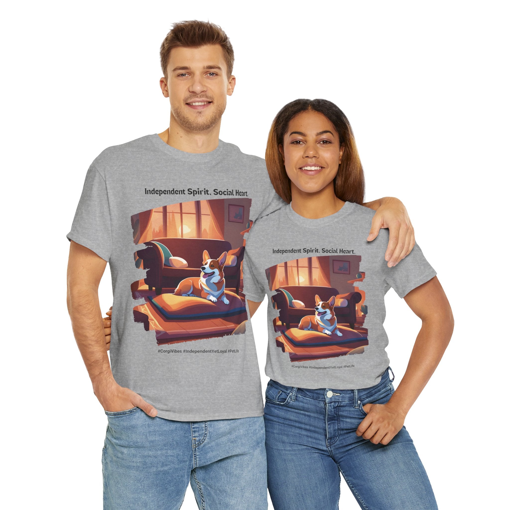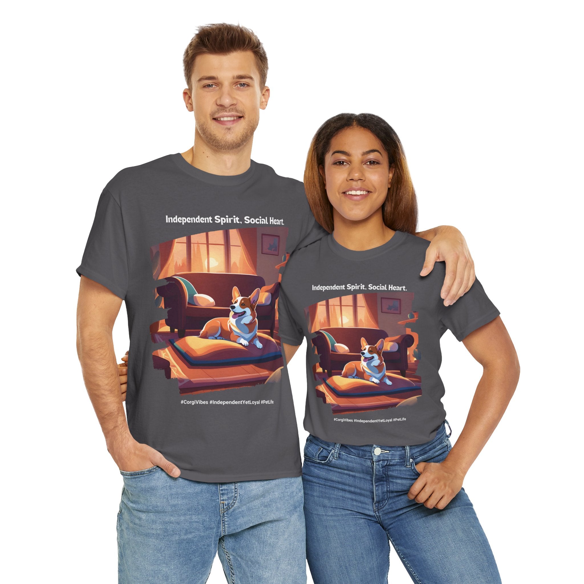 Unisex “Independent Spirit, Social Heart” Corgi T-Shirt – Corgi Vibes, Dog Lover Gift
