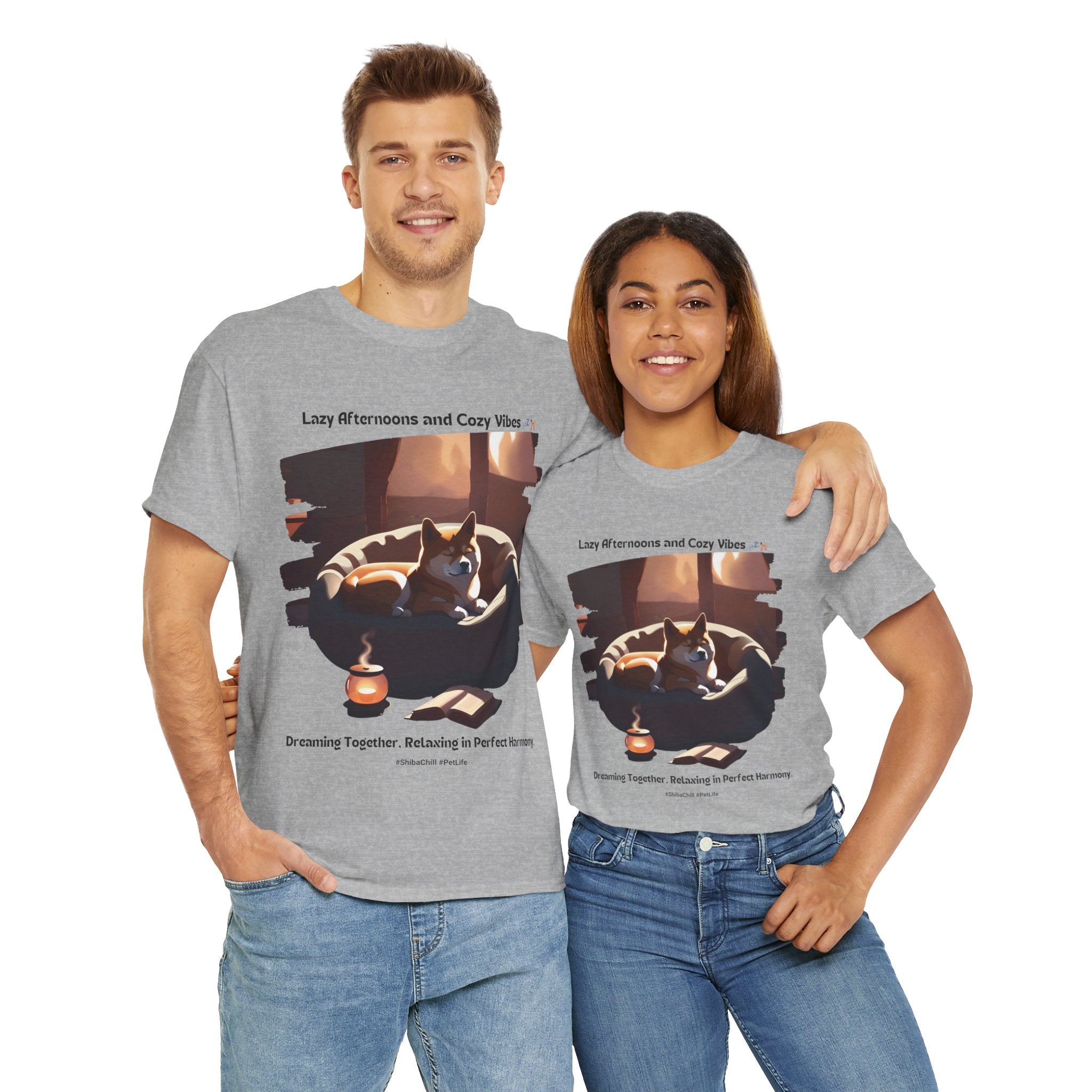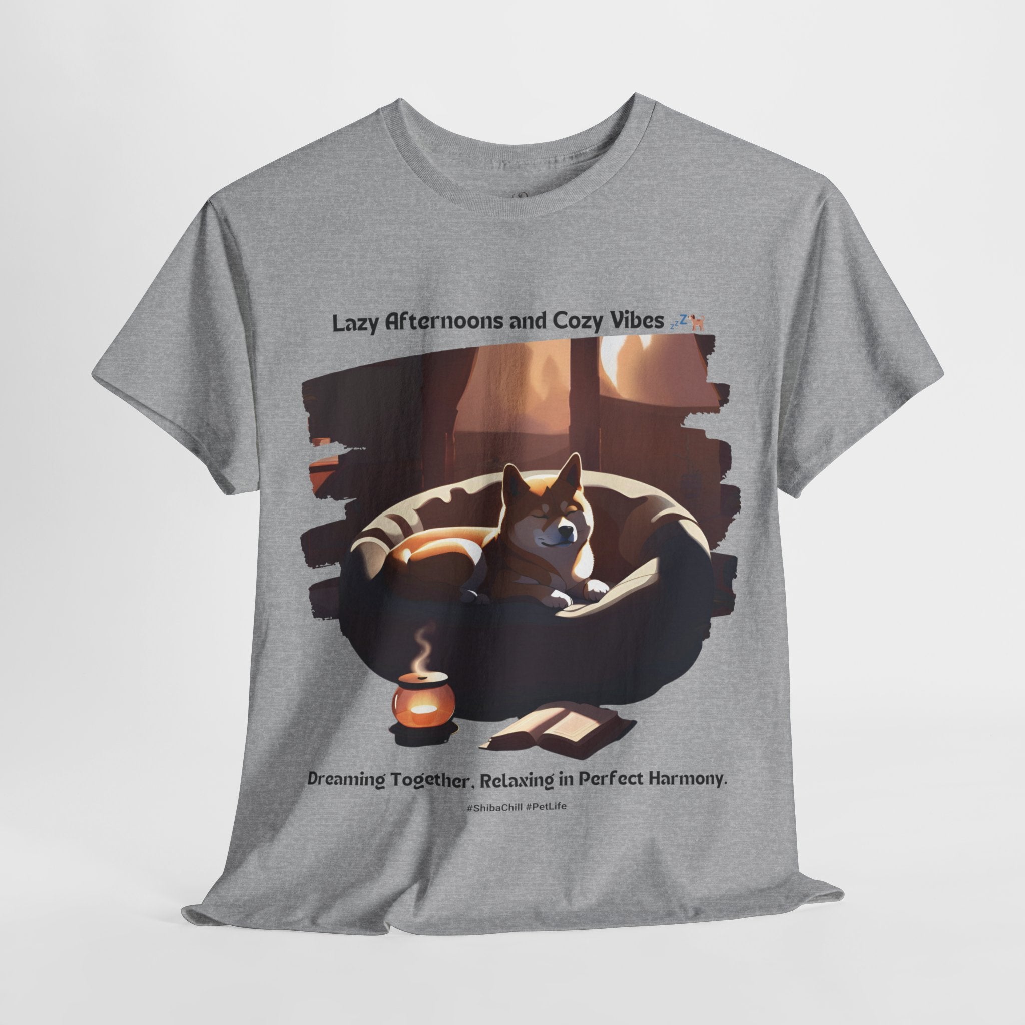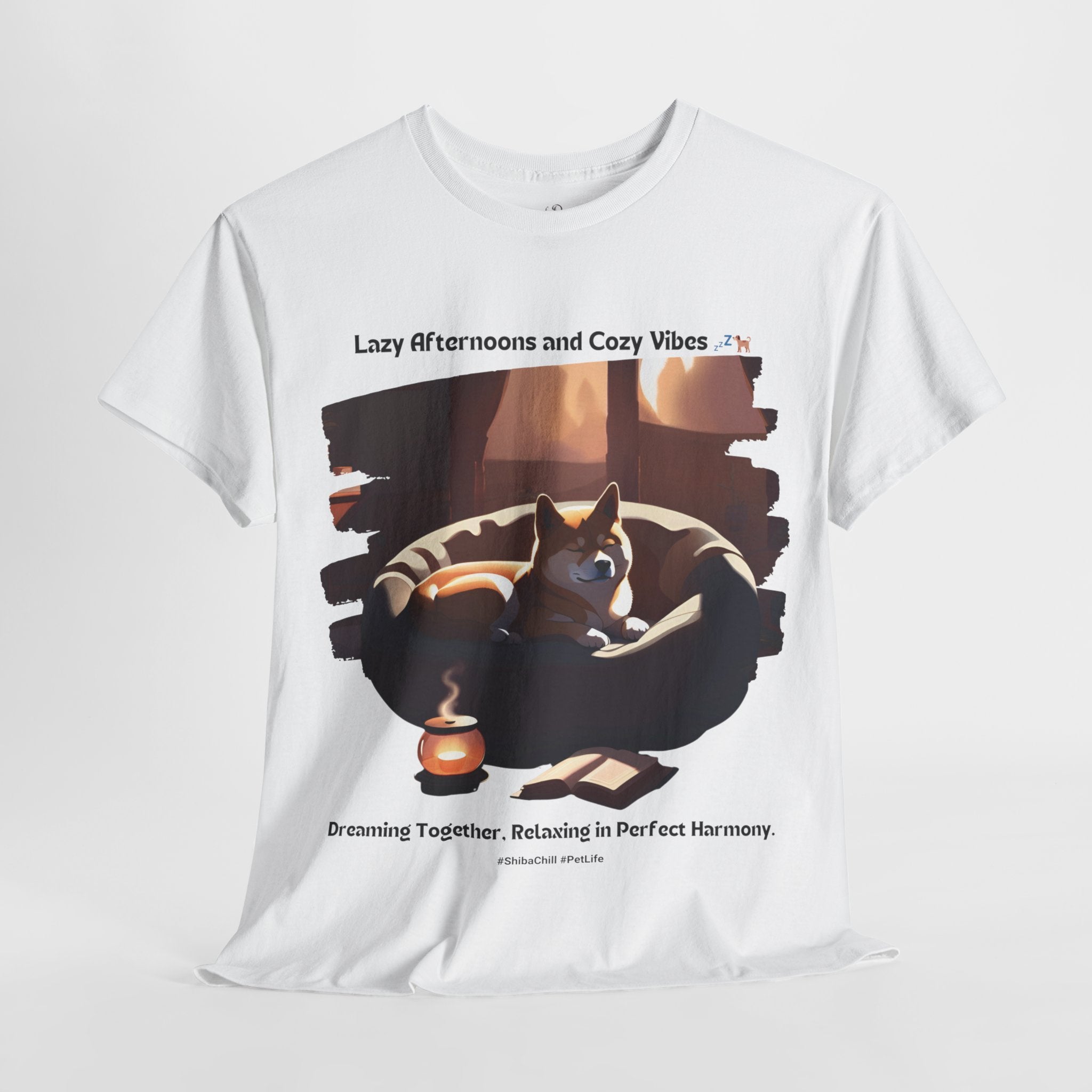 Unisex “Lazy Afternoons & Cozy Vibes” Shiba Inu T‑Shirt – Laid‑Back Pup Gift