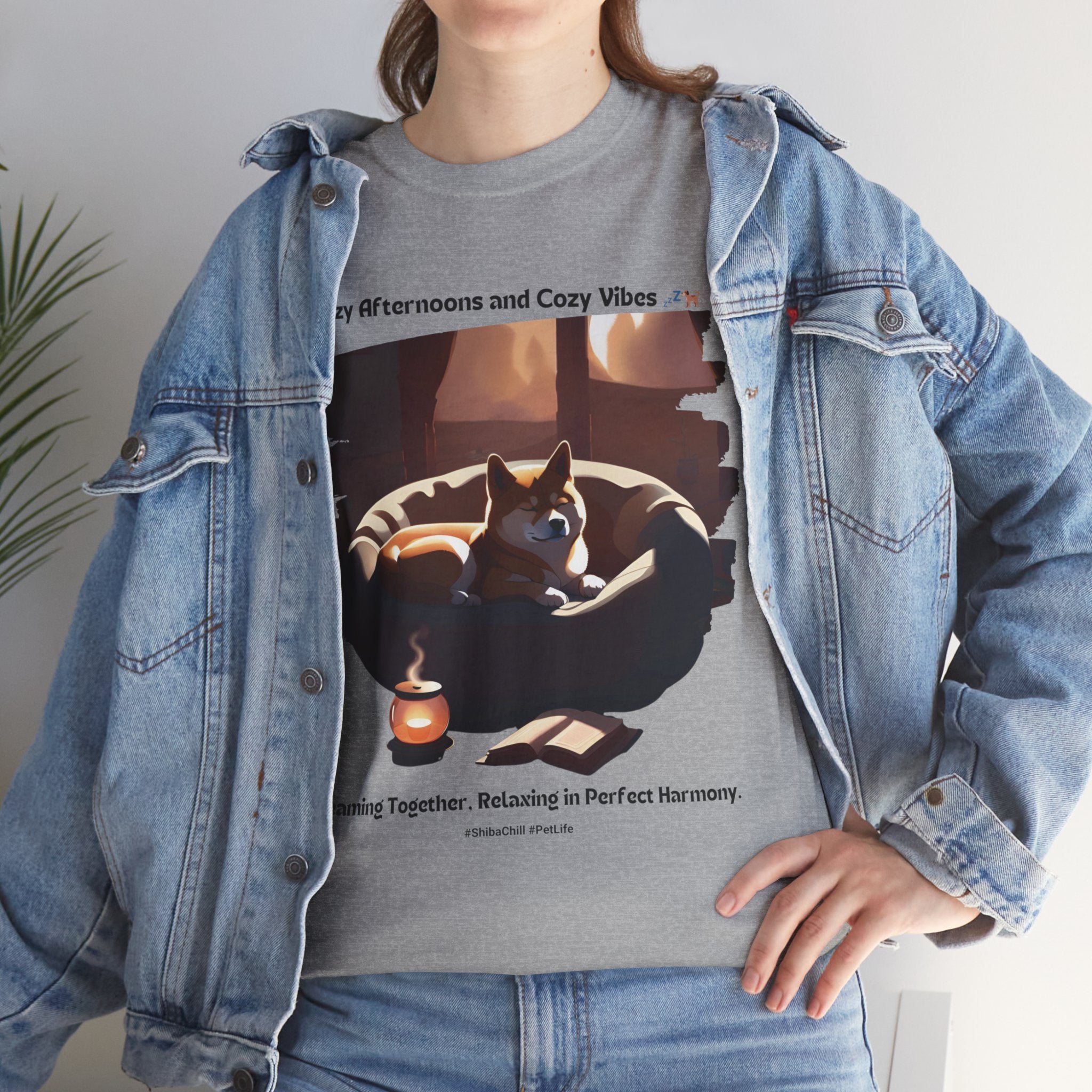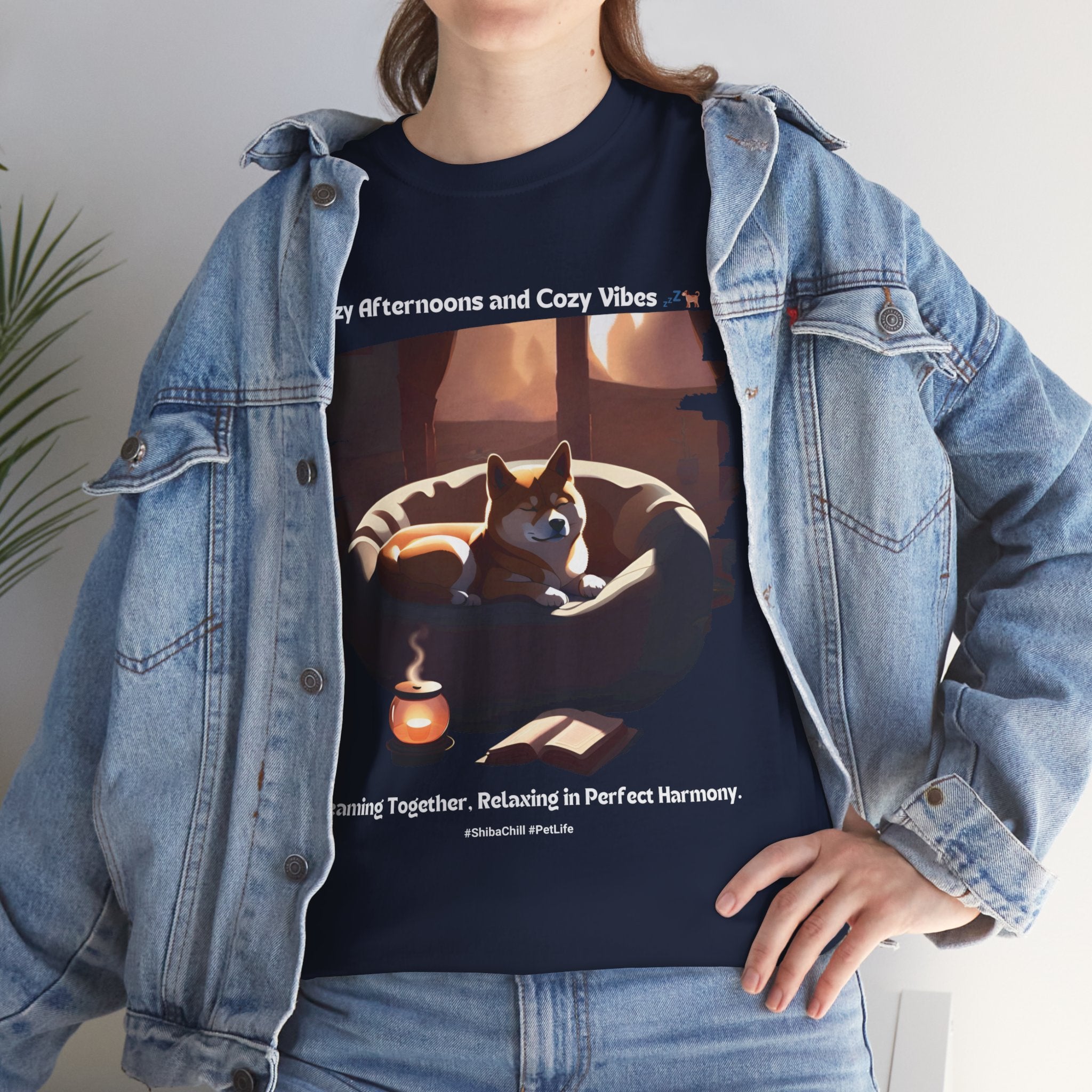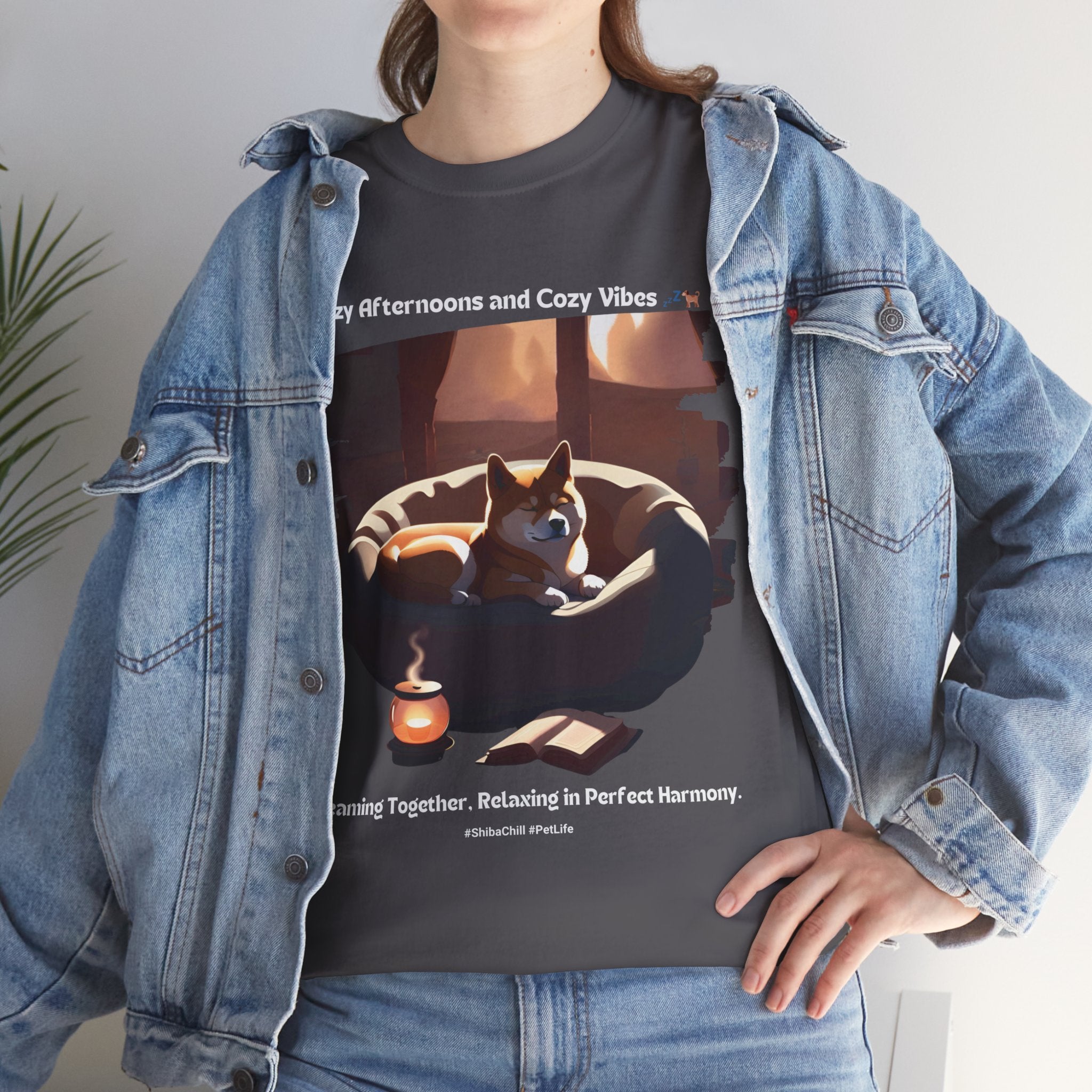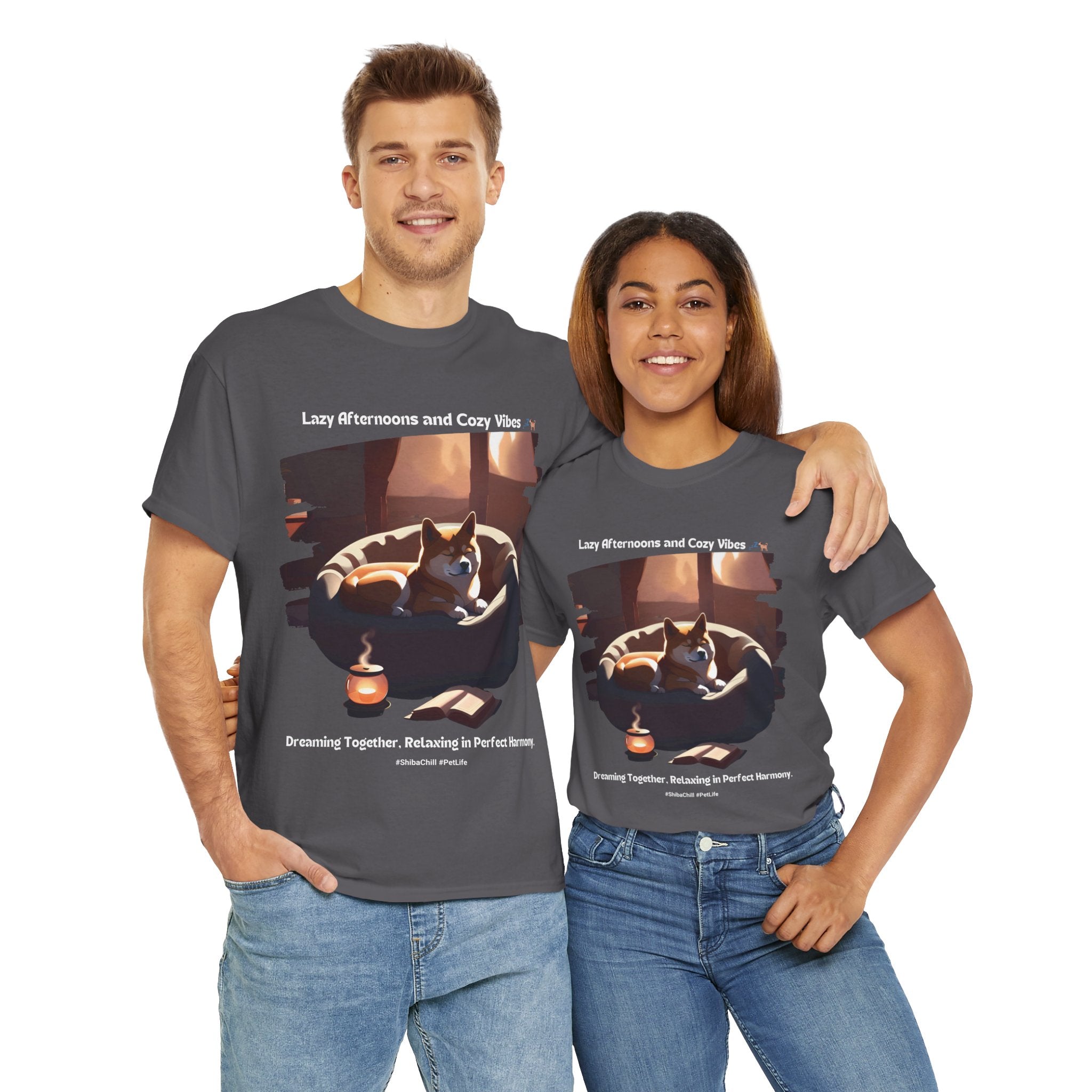 Unisex “Lazy Afternoons & Cozy Vibes” Shiba Inu T‑Shirt – Laid‑Back Pup Gift