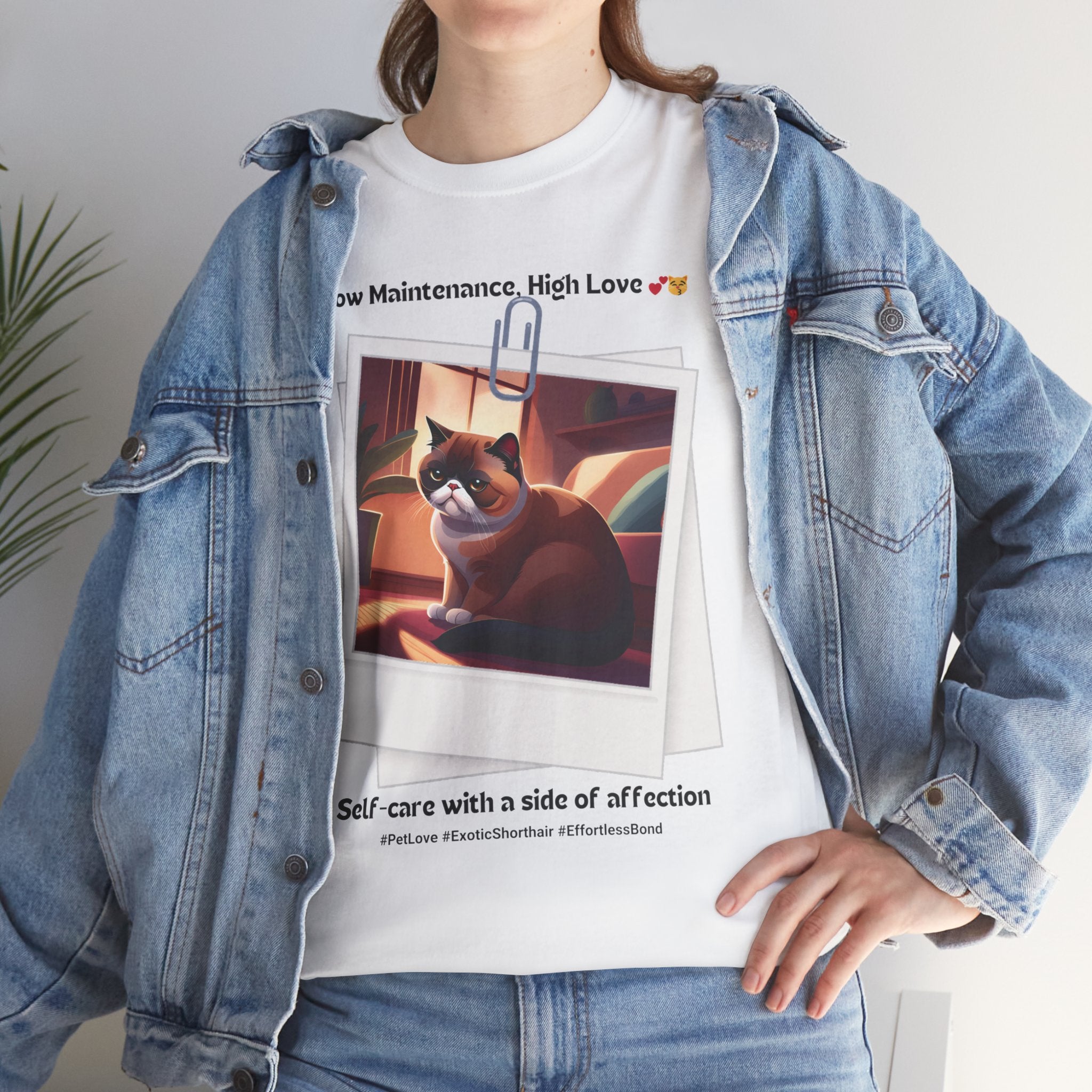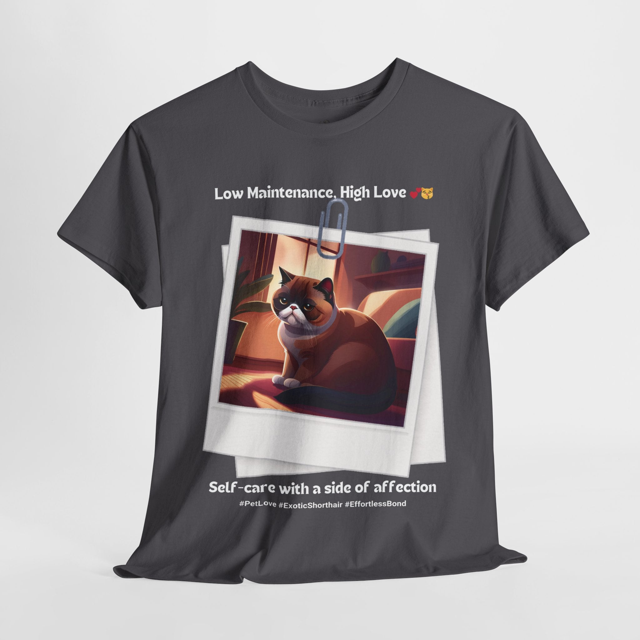 Unisex “Low Maintenance, High Love” Exotic Shorthair T‑Shirt – Easy Loving Cat Gift