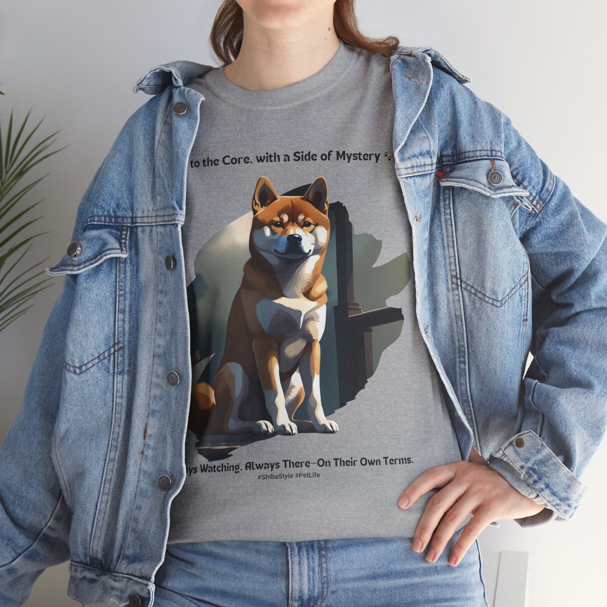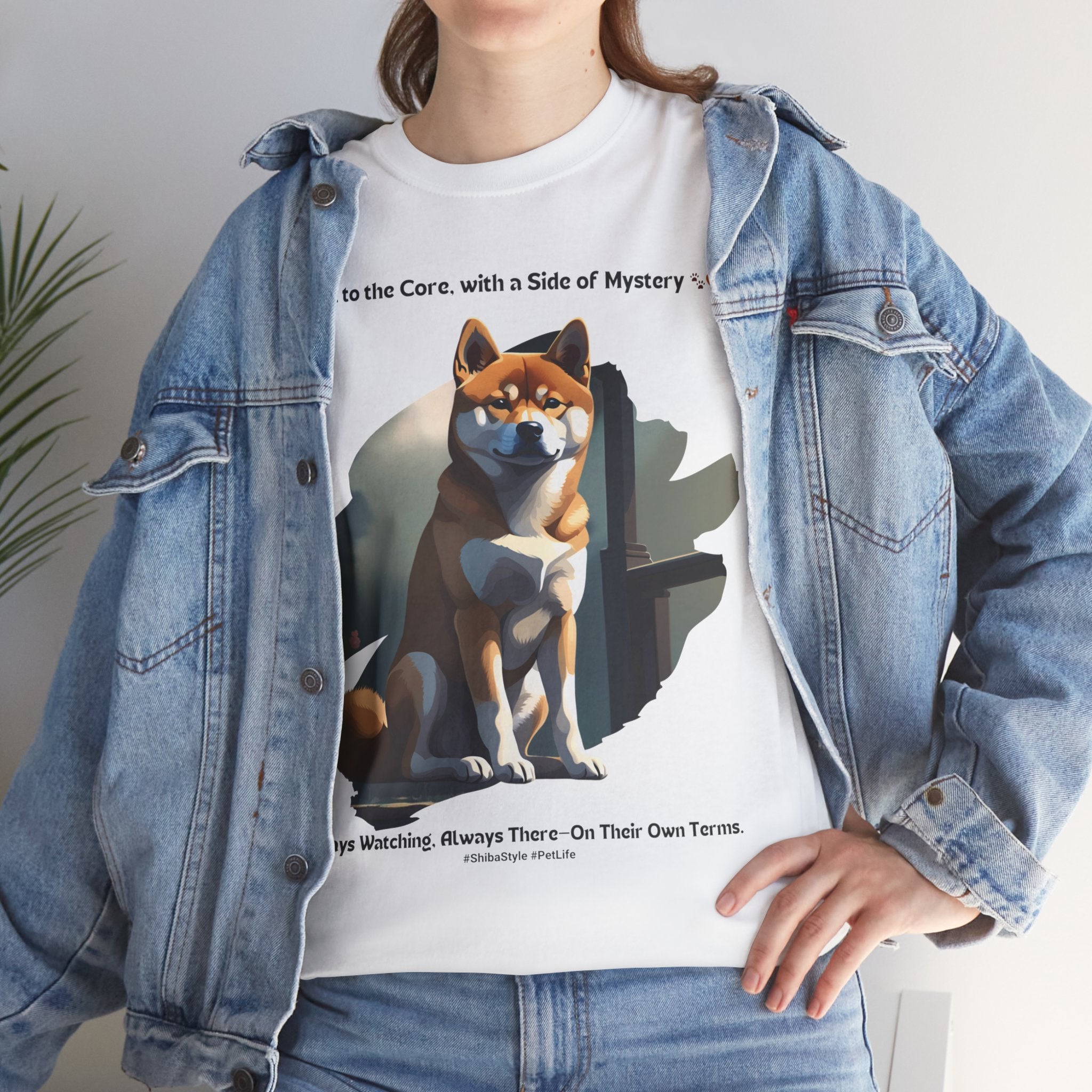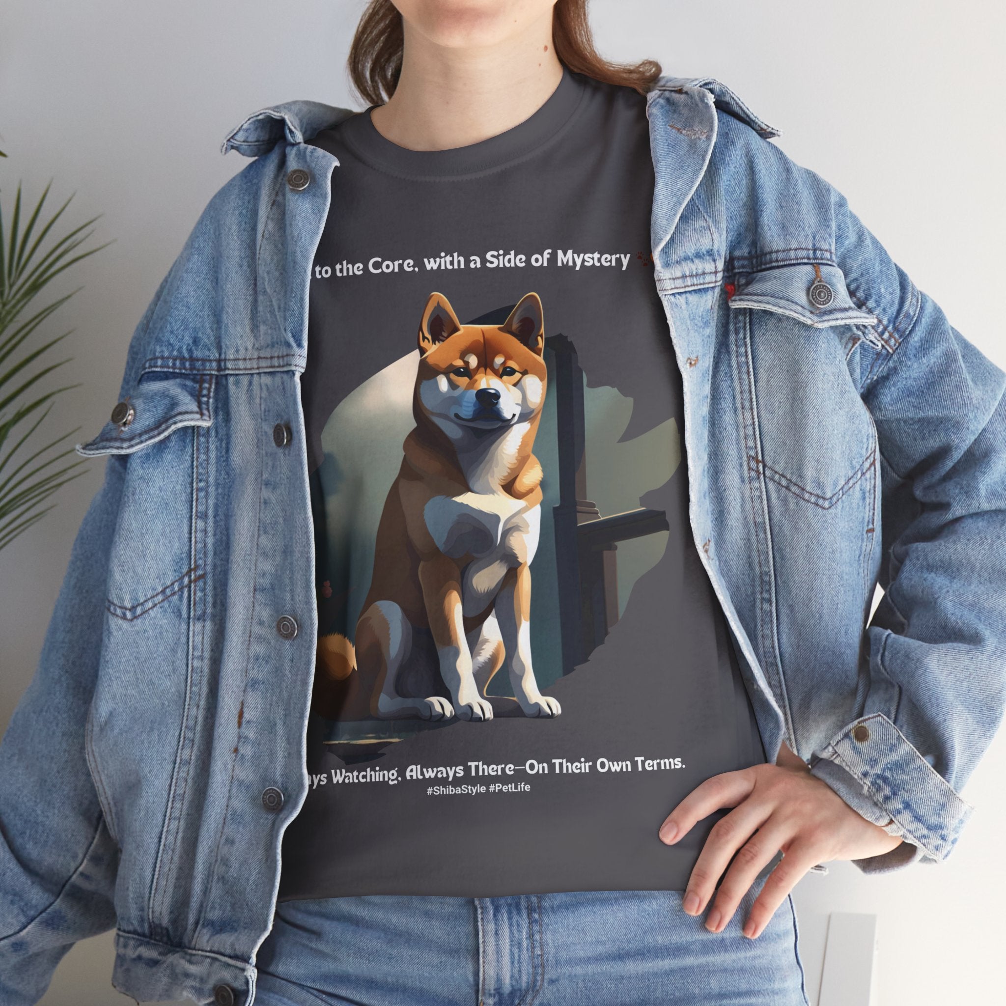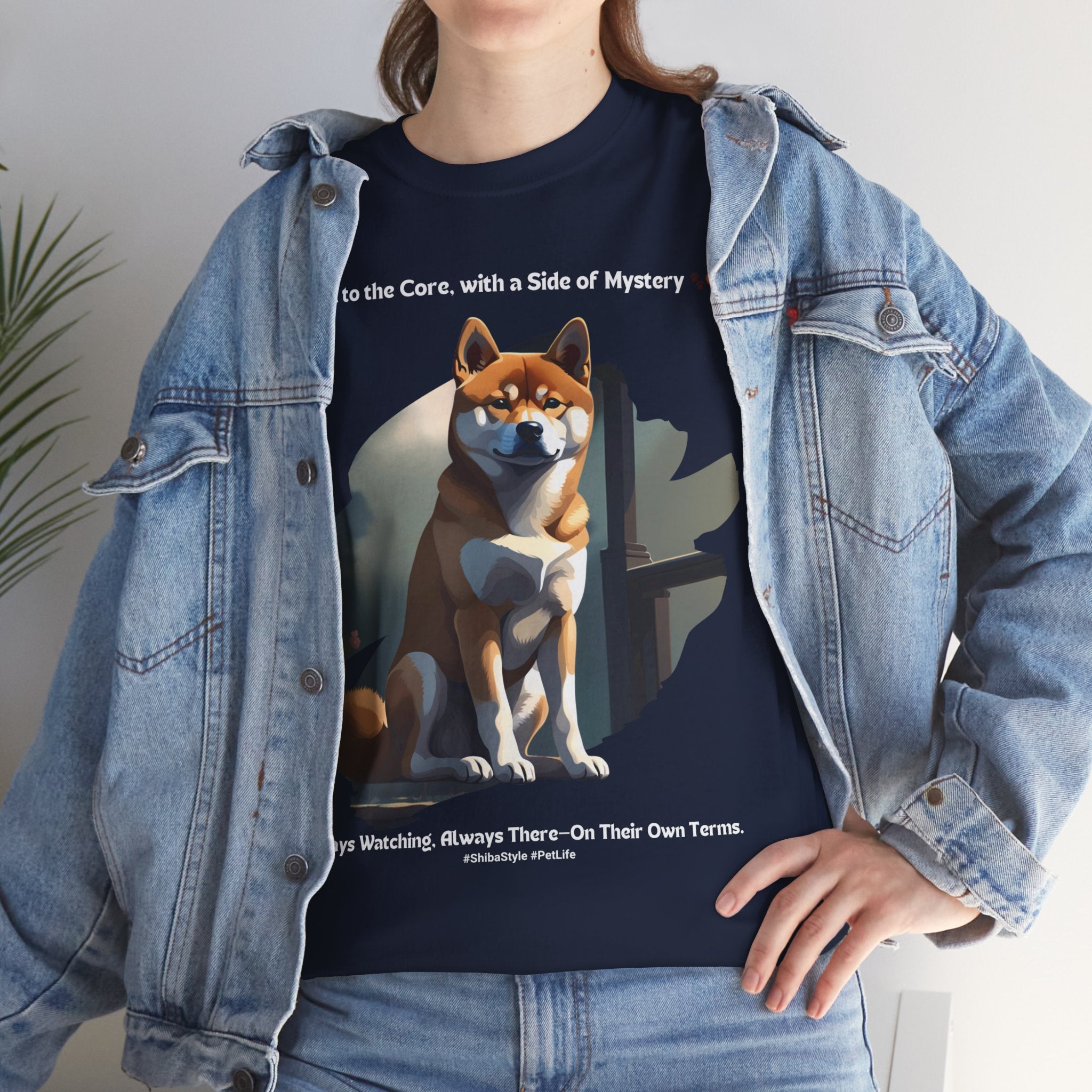 Unisex “Loyal to the Core, Mysterious to the End” Shiba Inu T‑Shirt – Intriguing Pup Gift