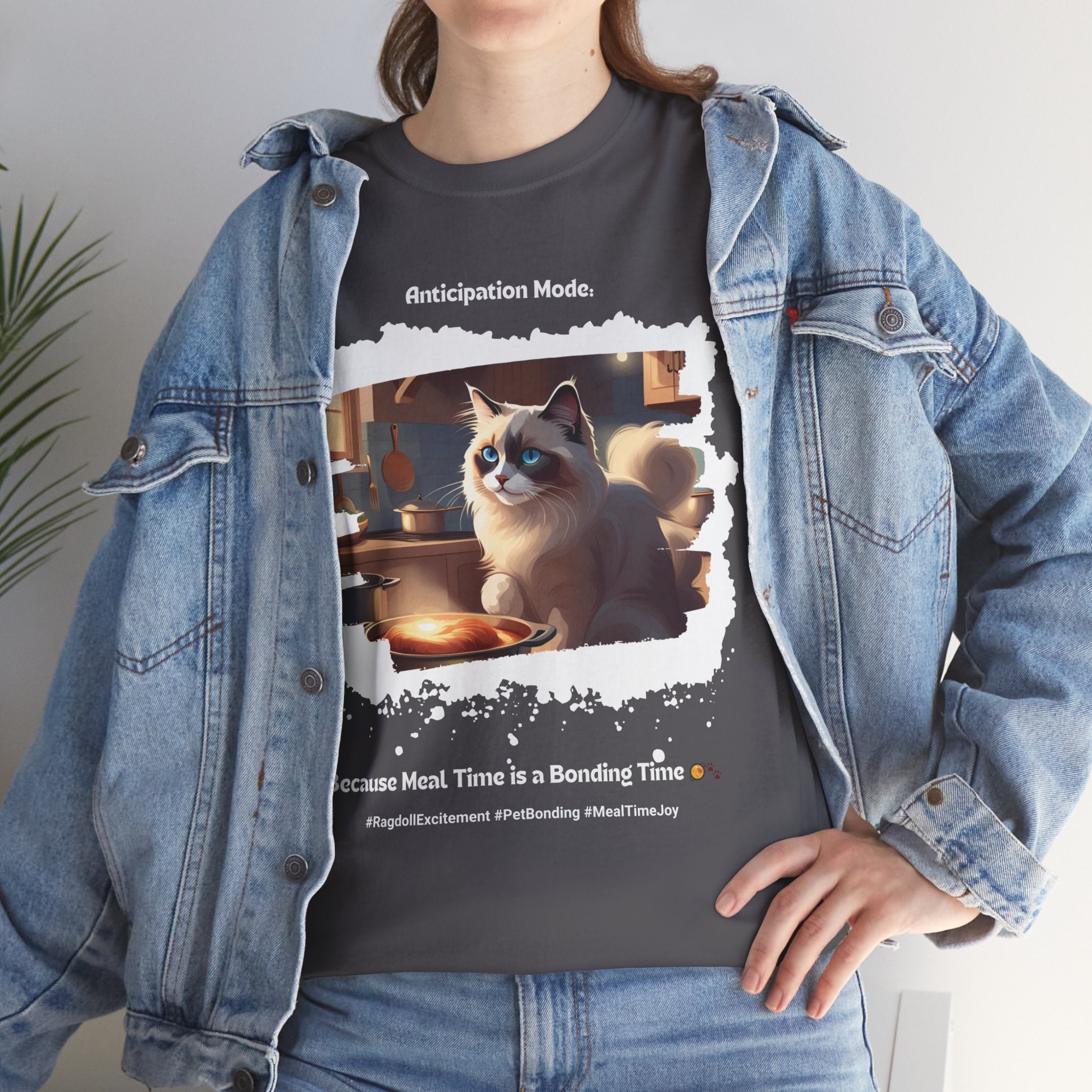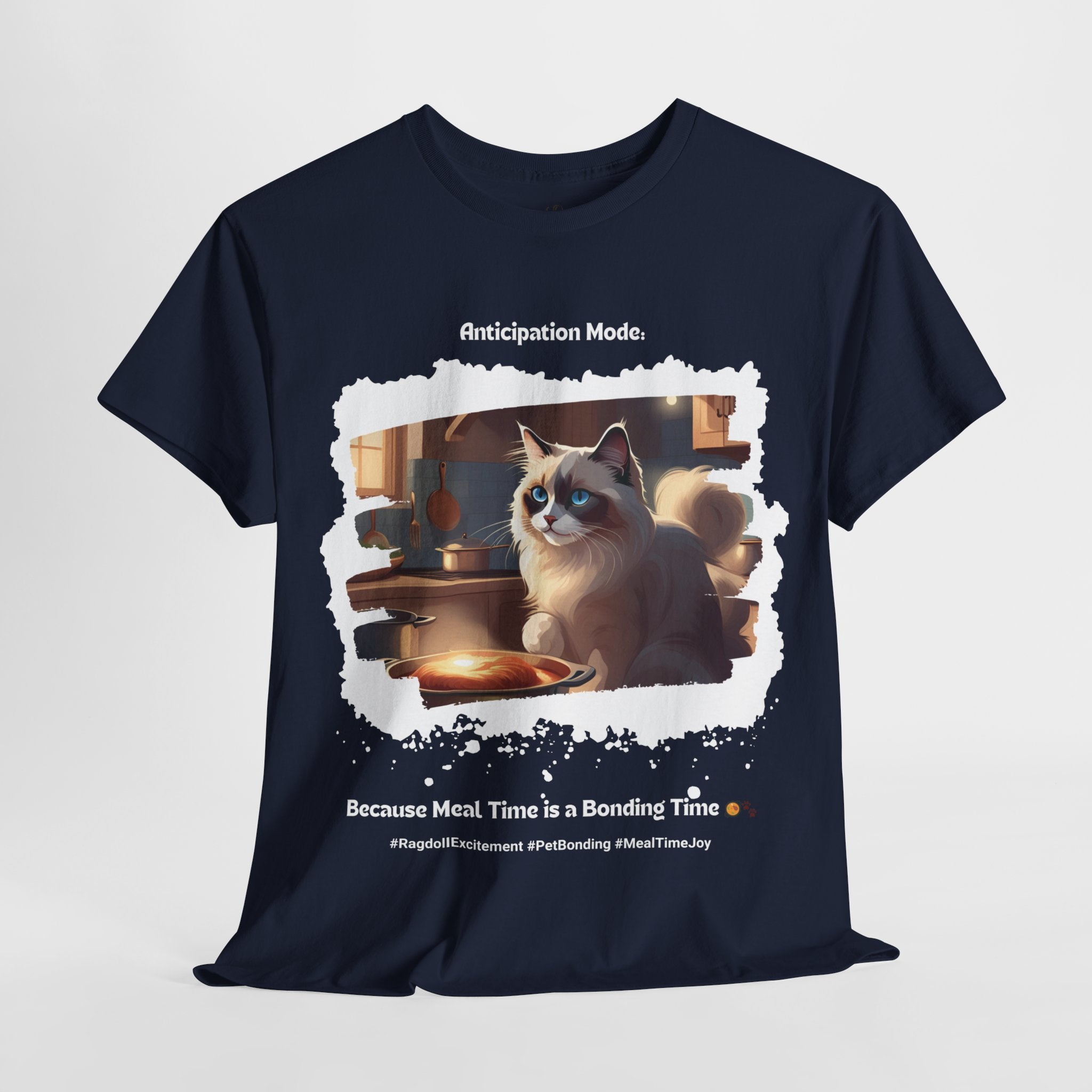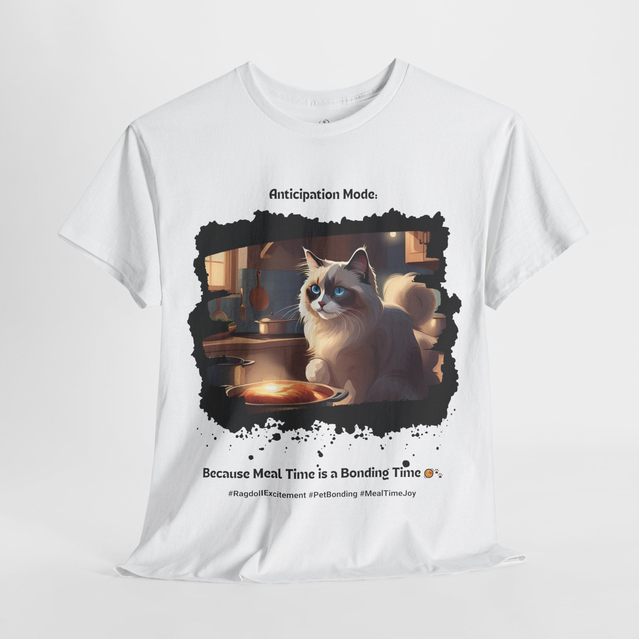 Experience the pure joy and excitement of a Ragdoll cat awaiting mealtime with our t-shirt. This design features a captivating image of a Ragdoll eagerly watching as dinner is prepared, capturing the anticipation and excitement of feeding time.