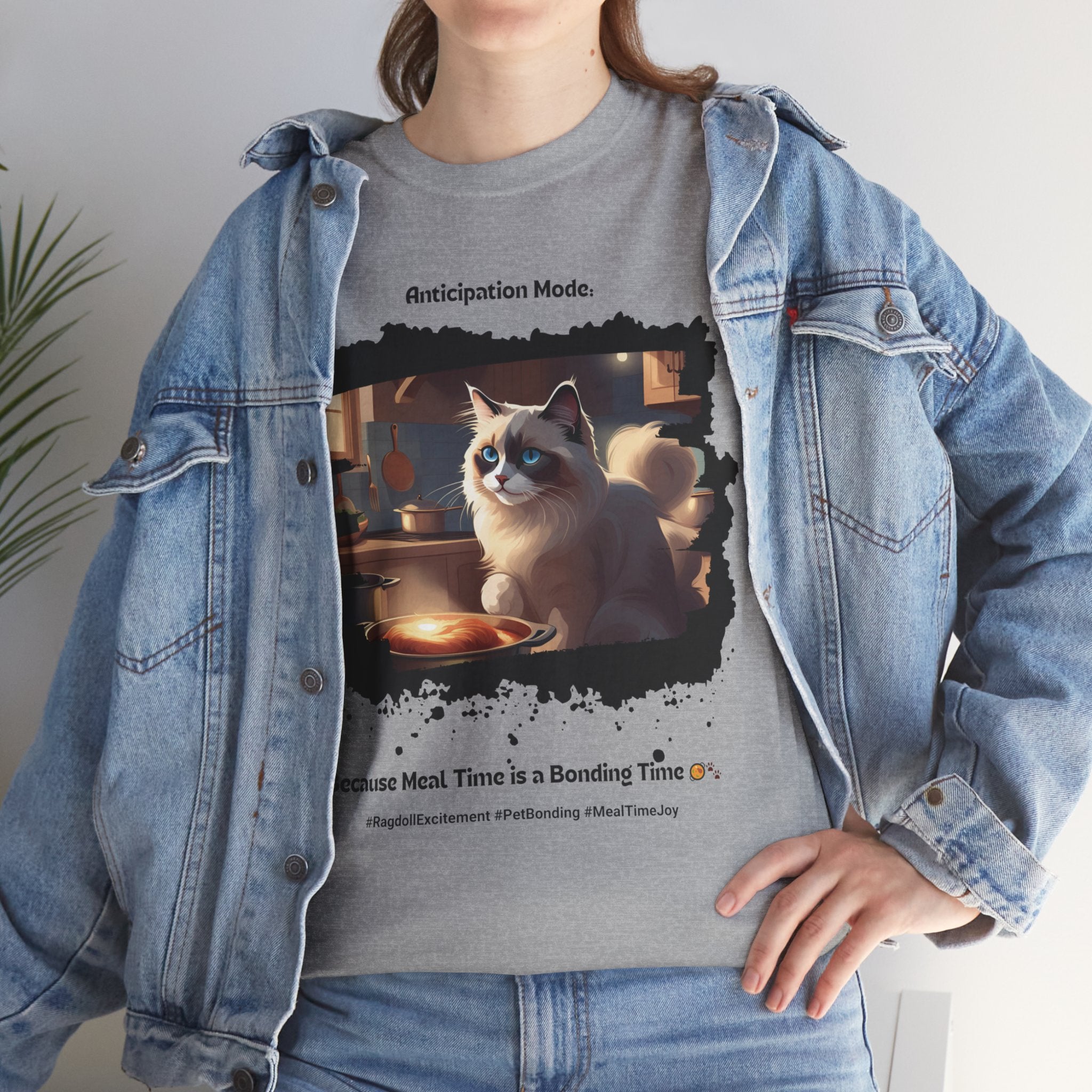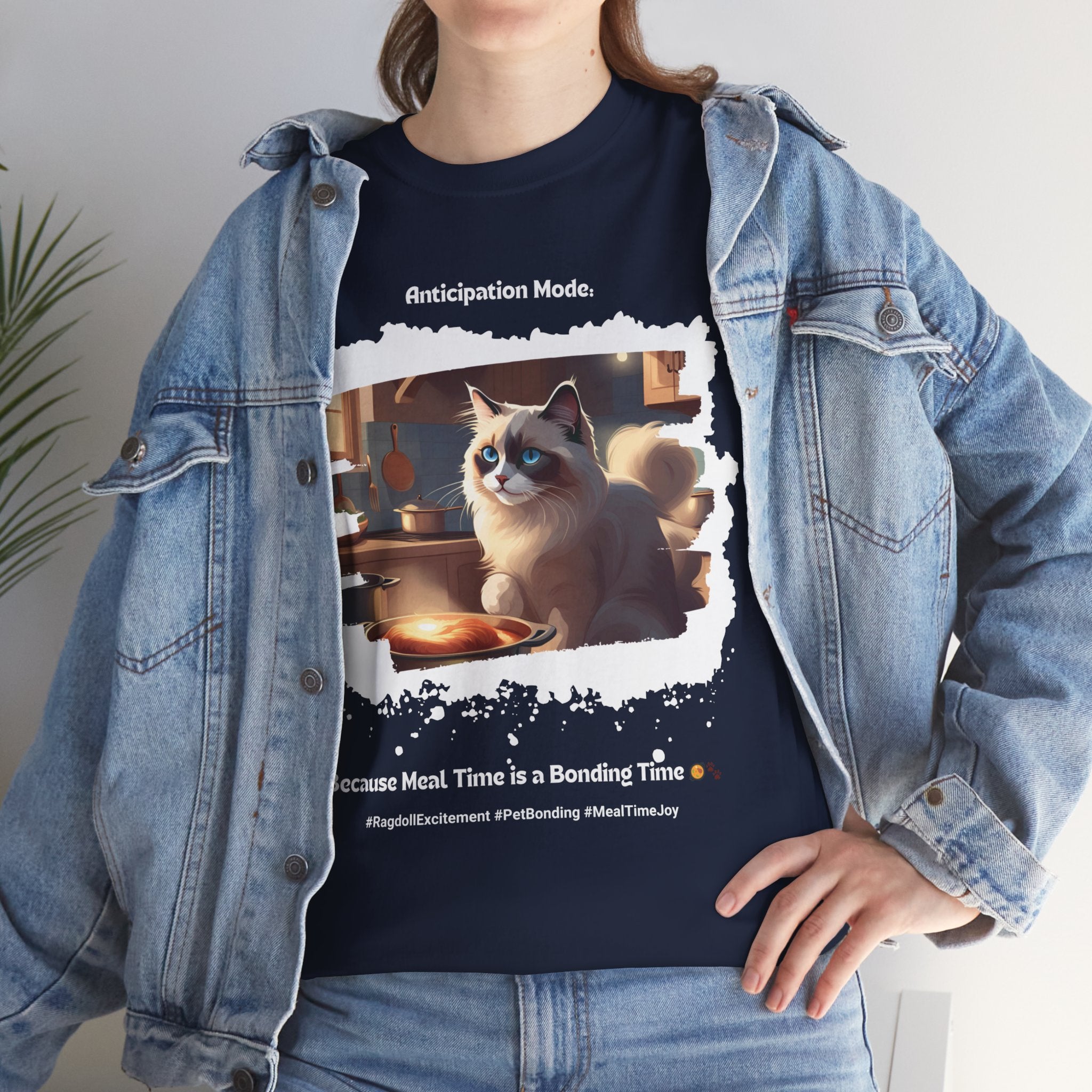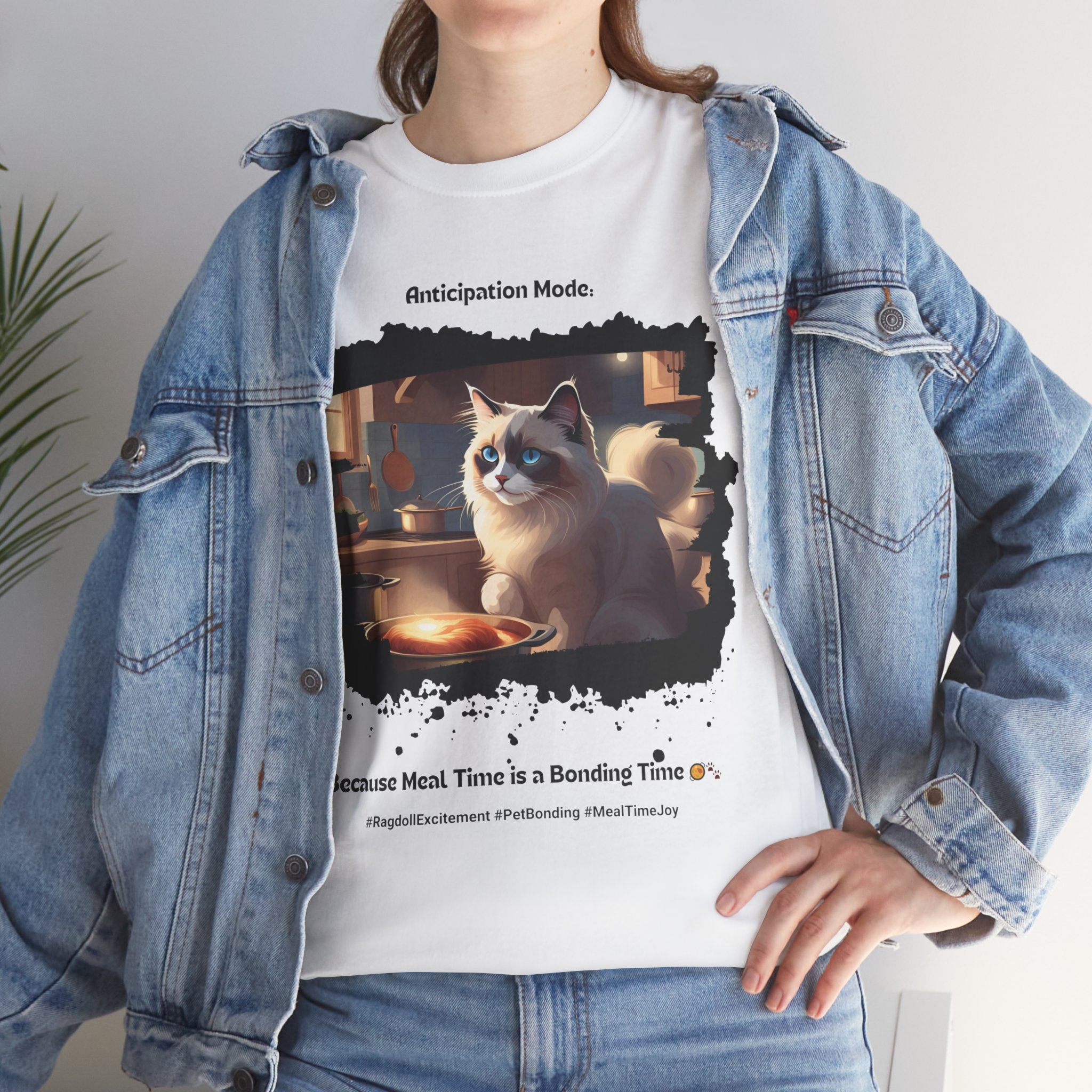 Experience the pure joy and excitement of a Ragdoll cat awaiting mealtime with our t-shirt. This design features a captivating image of a Ragdoll eagerly watching as dinner is prepared, capturing the anticipation and excitement of feeding time.