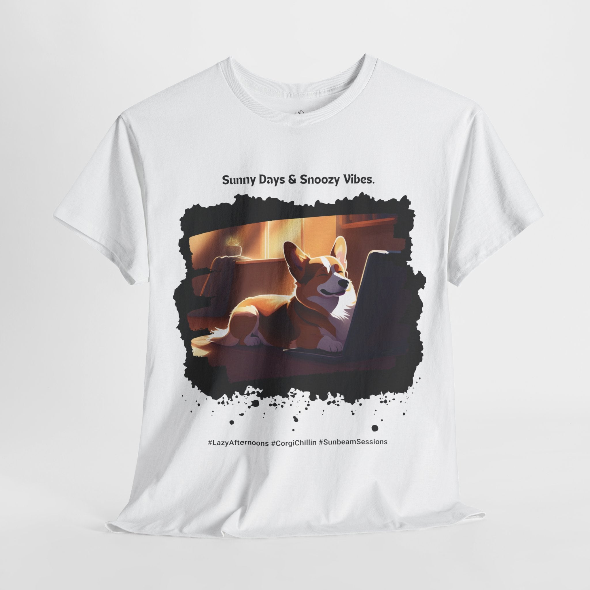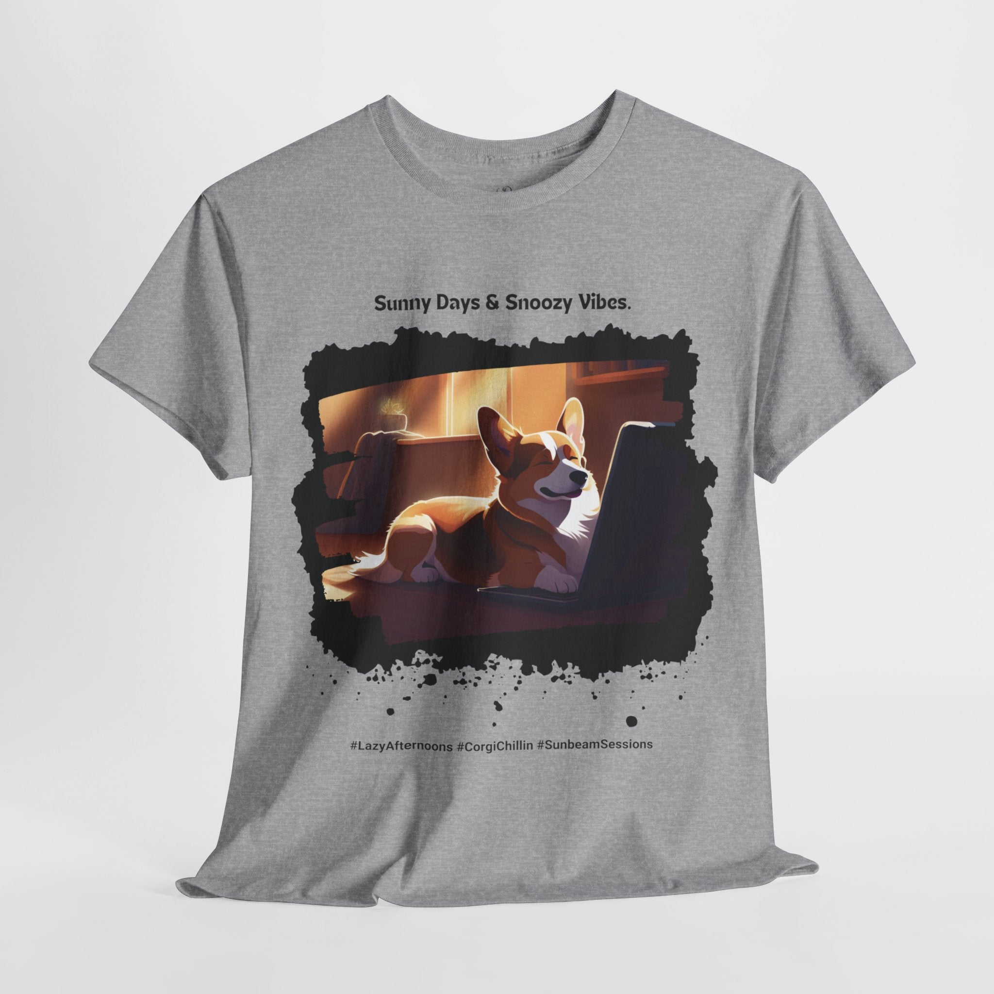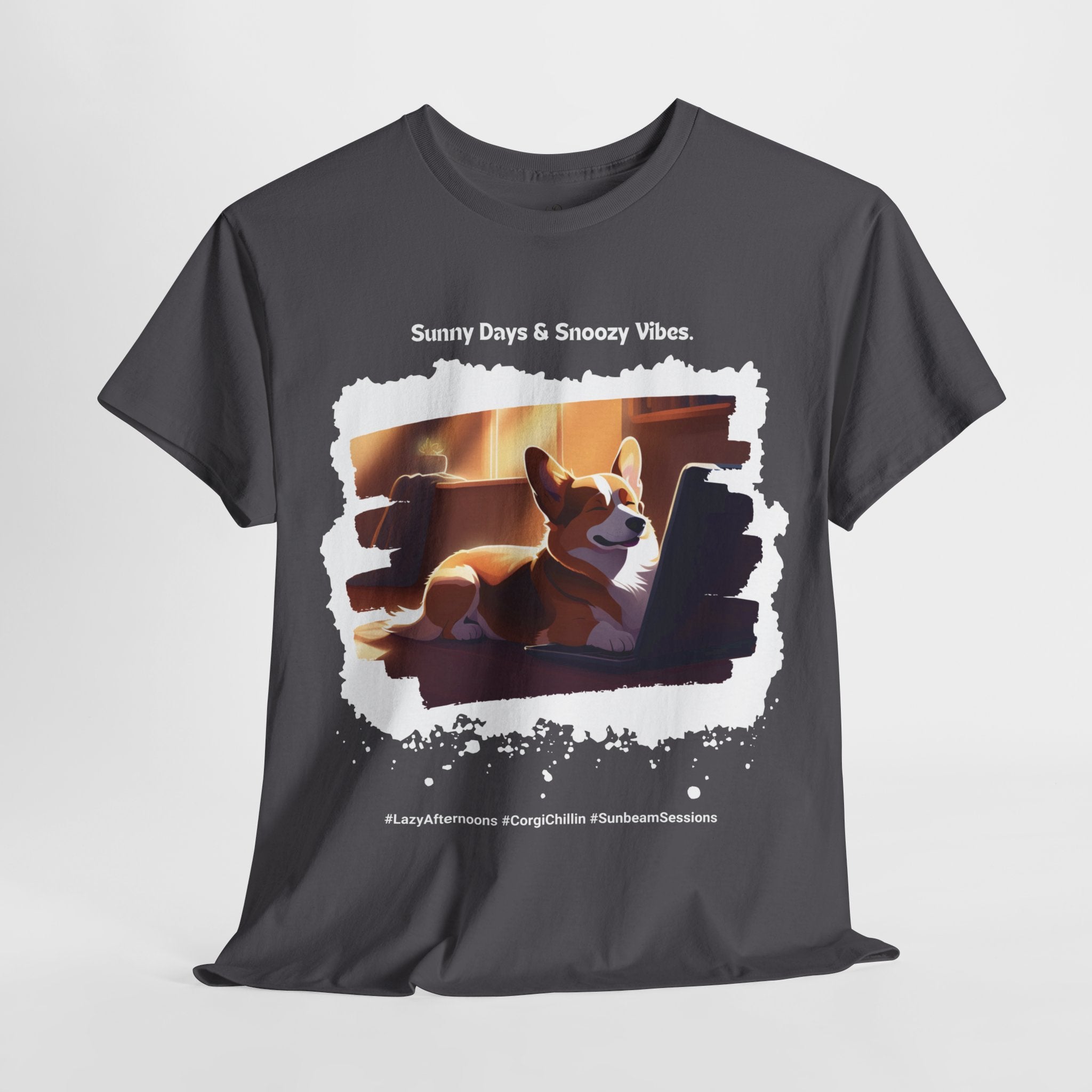 Unisex “Sunny Days & Snoozy Vibes” Corgi T‑Shirt – Chill Pup Gift