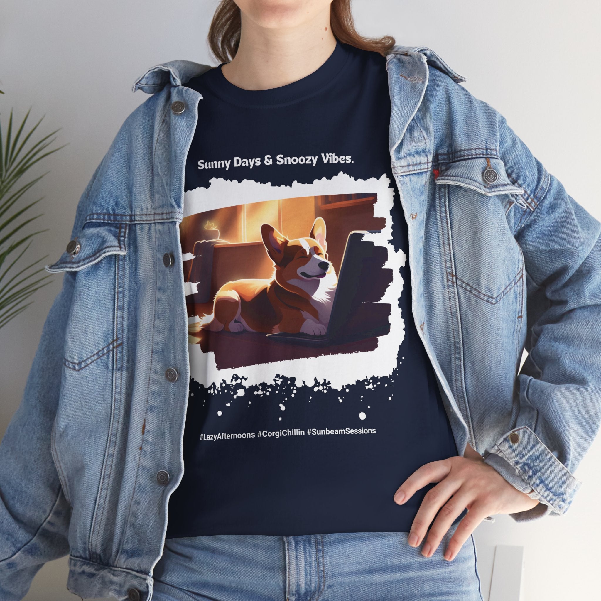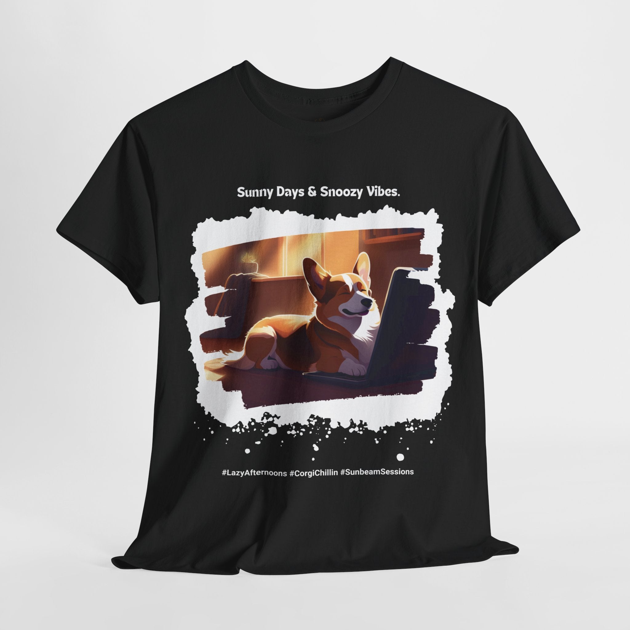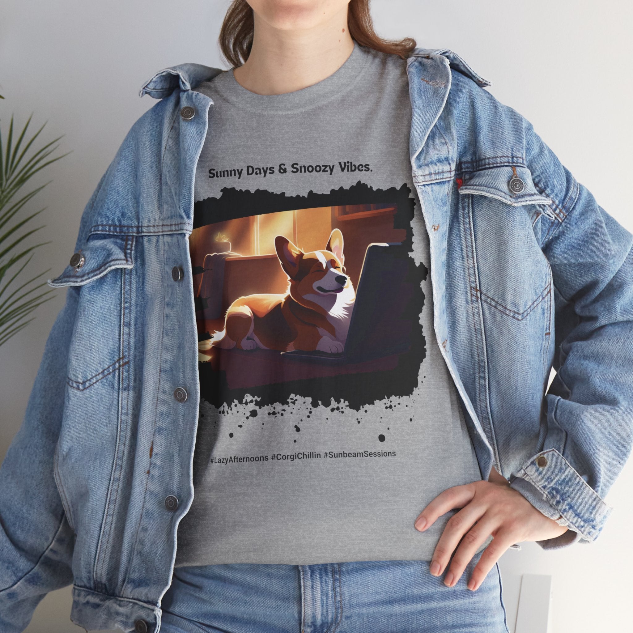 Unisex “Sunny Days & Snoozy Vibes” Corgi T‑Shirt – Chill Pup Gift