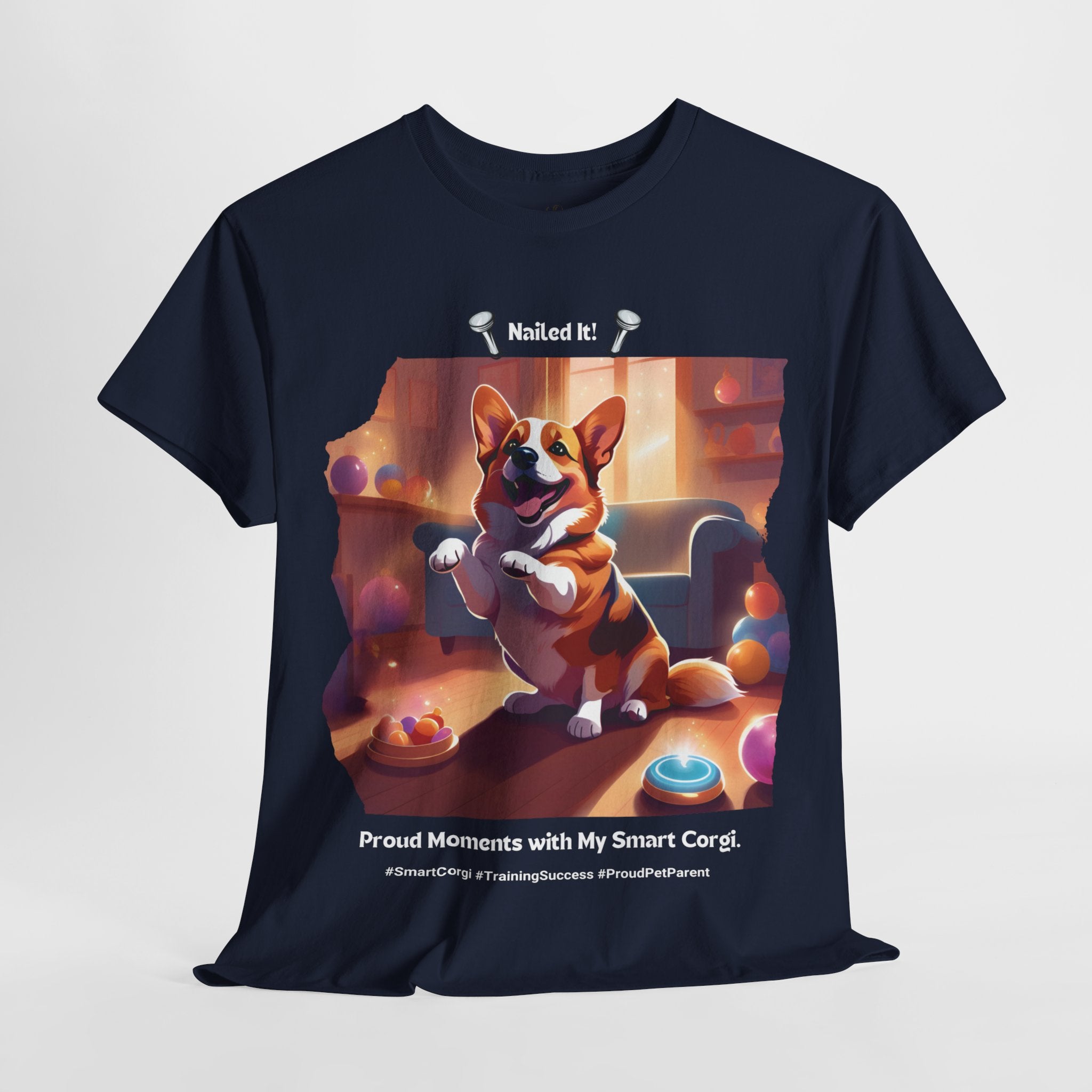 Celebrate the intelligence and trainability of your Corgi with this fun and inspiring t-shirt. Featuring a proud Corgi standing tall, the design captures the joy and accomplishment of successful training. Perfect for Corgi owners and dog lovers who value mental stimulation and teamwork.