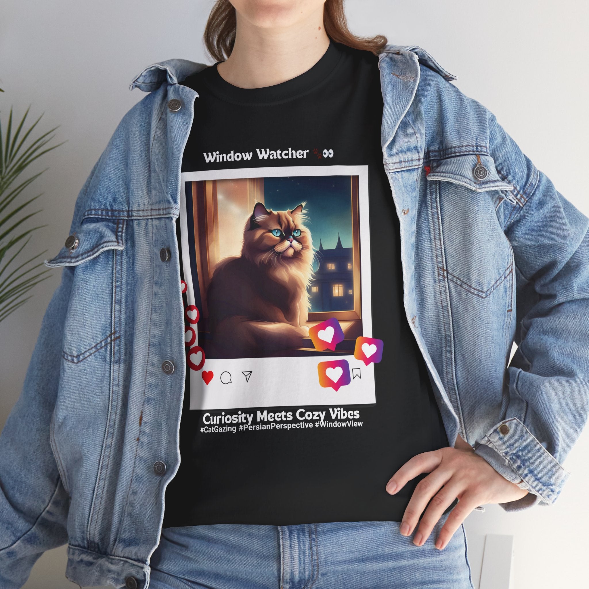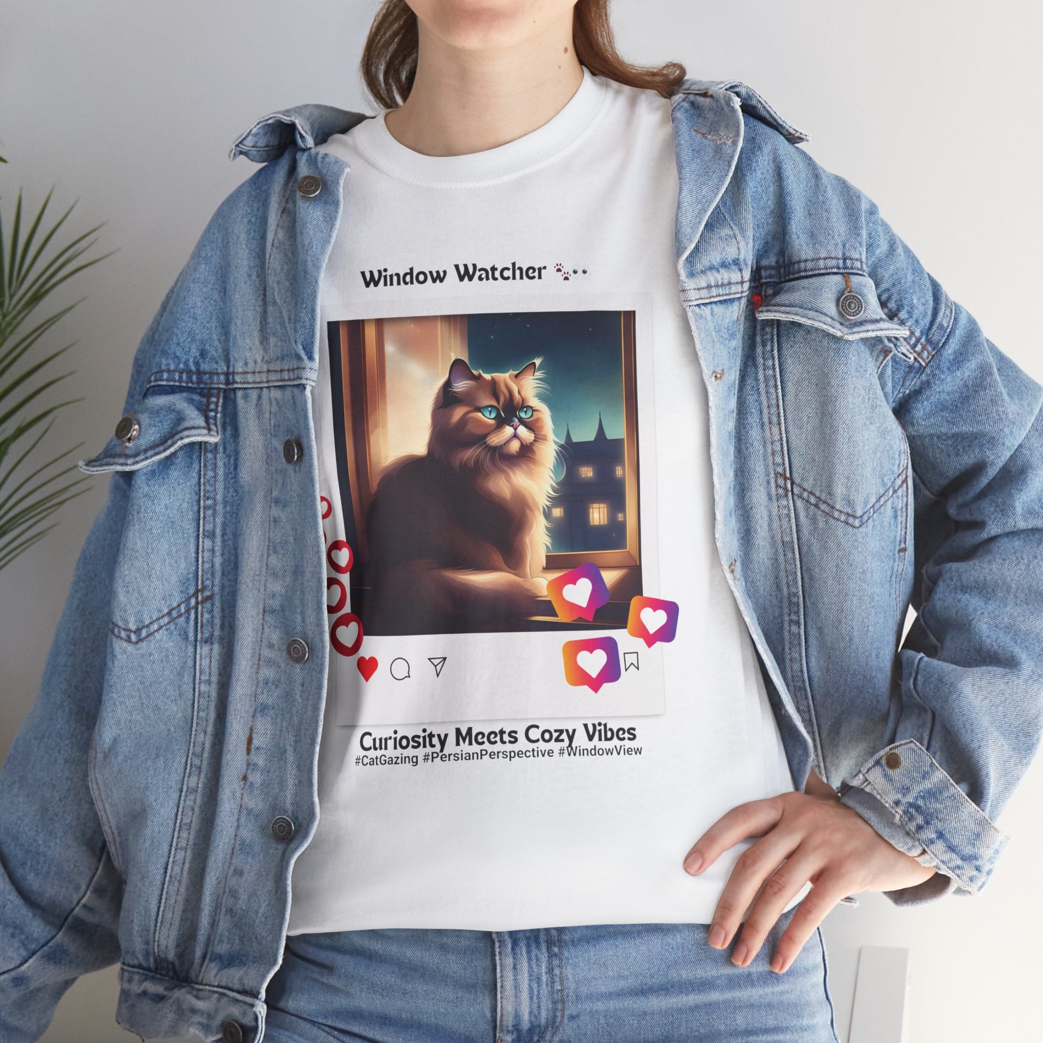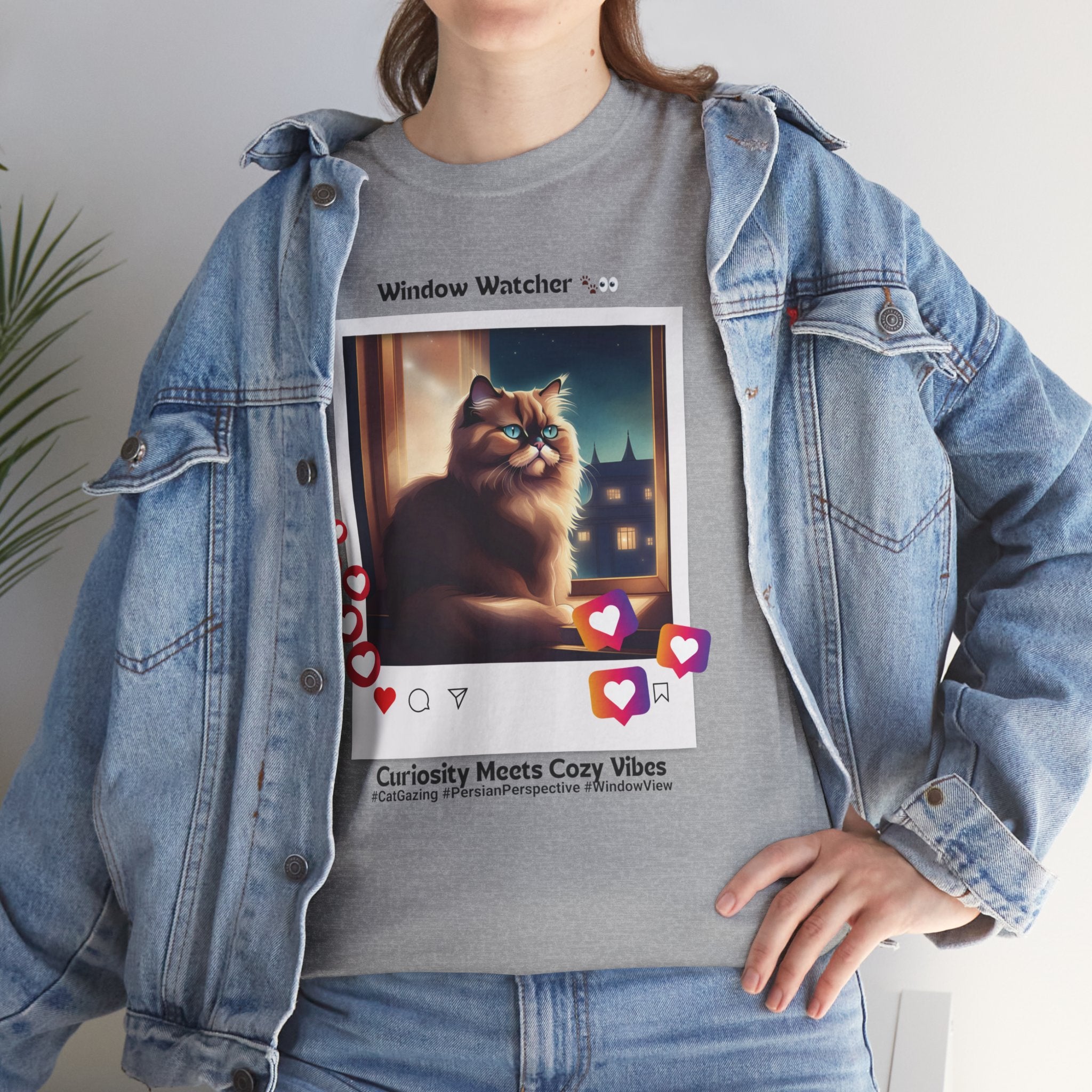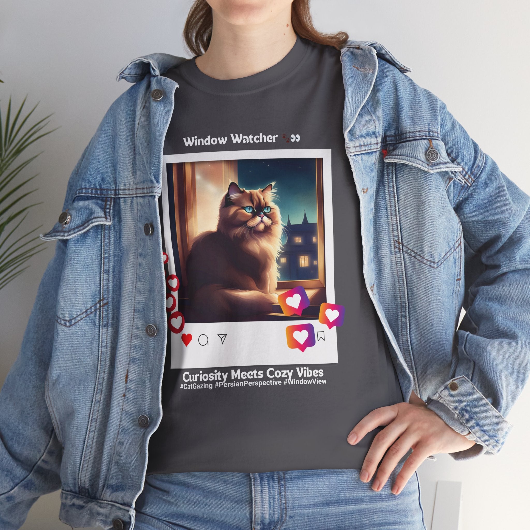 Unisex “Window Watcher” Persian T‑Shirt – Observant Cat Gift