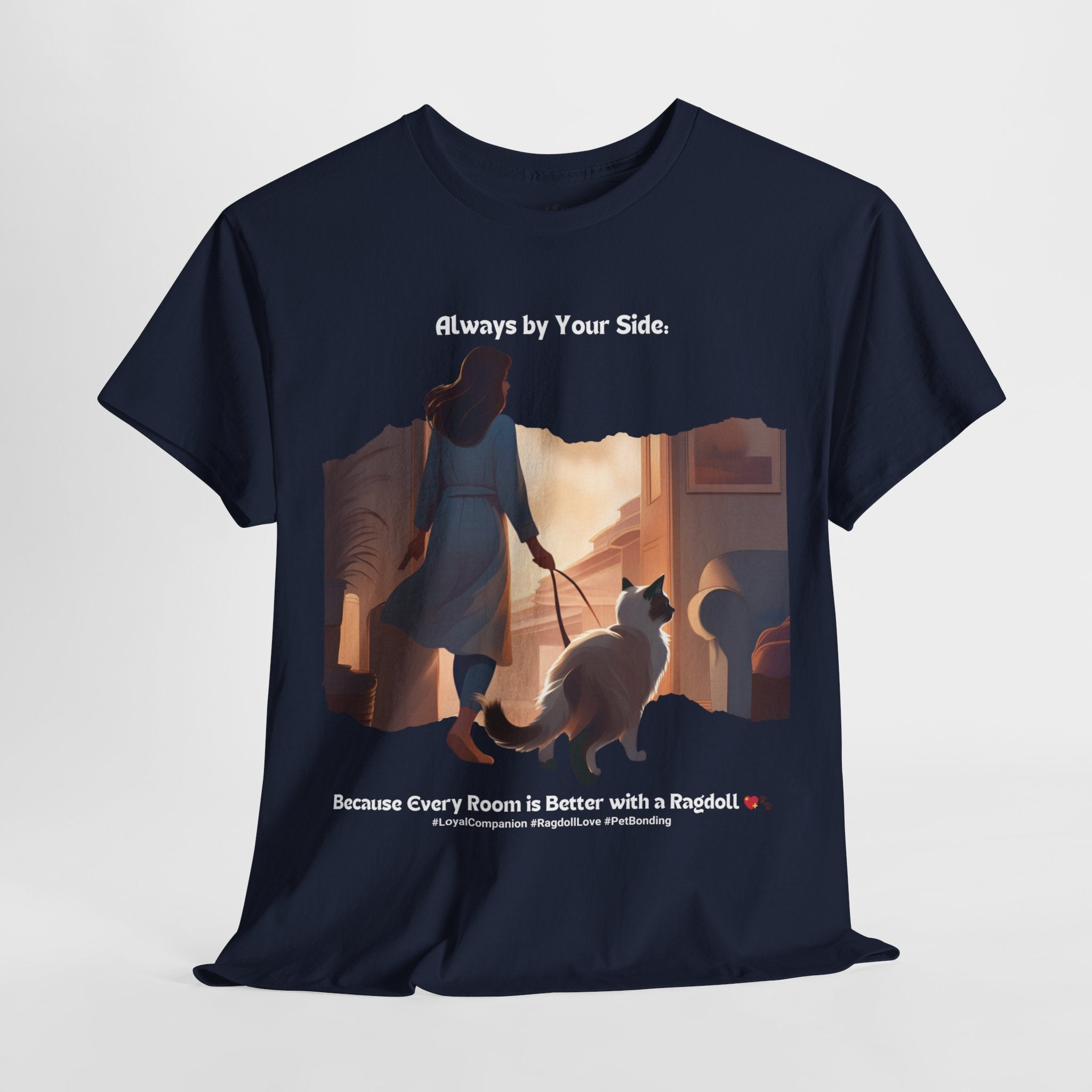 Are you a proud Ragdoll owner who cherishes the unwavering loyalty and companionship your furry friend provides? This t-shirt is a must-have for any cat parent who appreciates the incredible bond they share with their feline companion. Our design captures the heartwarming moment of a Ragdoll walking alongside their human, offering unconditional love and support.