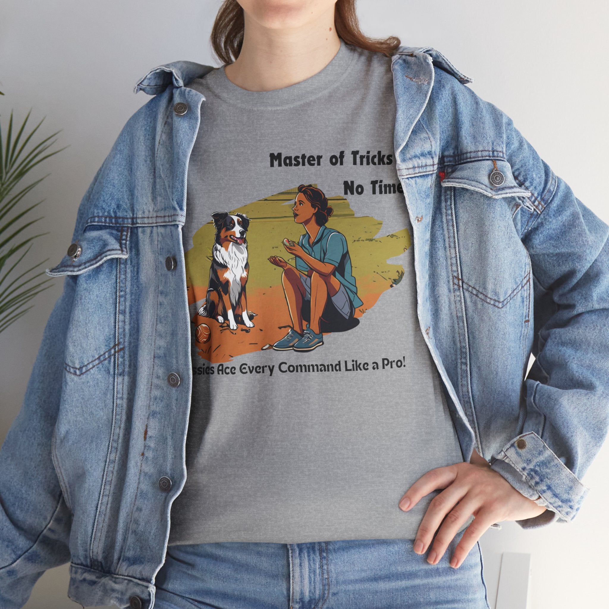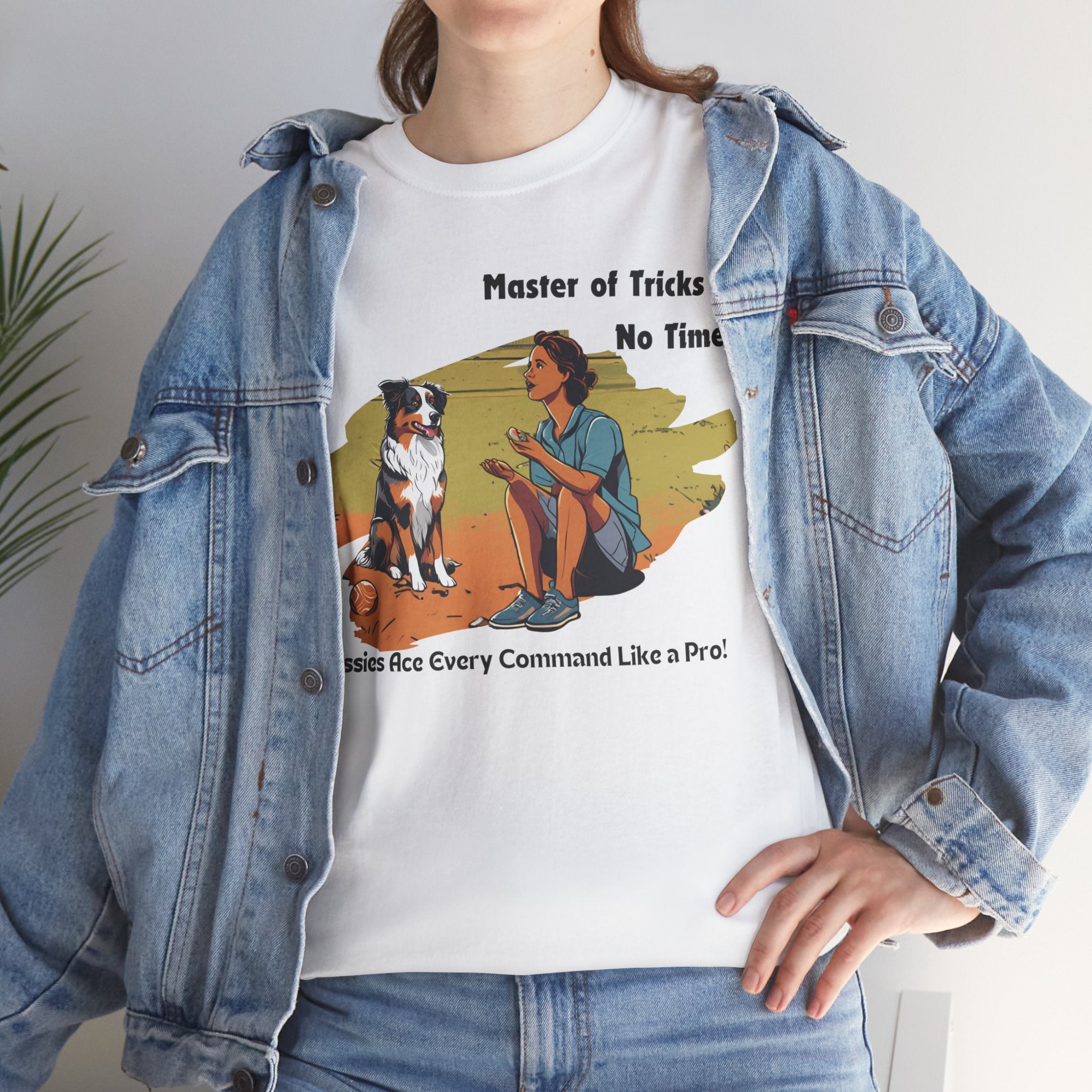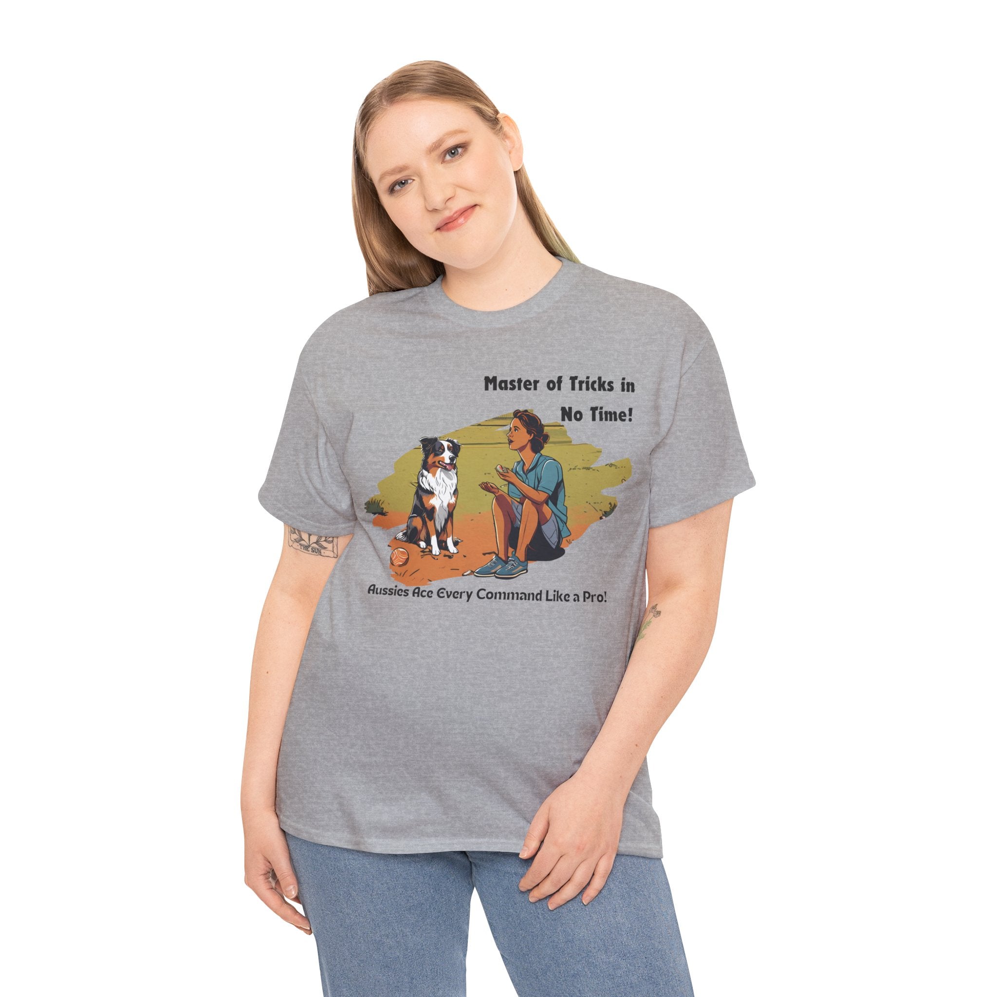 Celebrate your Australian Shepherd's intelligence and trainability with this fun and informative t-shirt. Our design features a human teaching an Aussie new tricks, showcasing their natural aptitude for learning. Aussies are known for their quick wit and eagerness to please, making them the perfect companions for dog training enthusiasts.