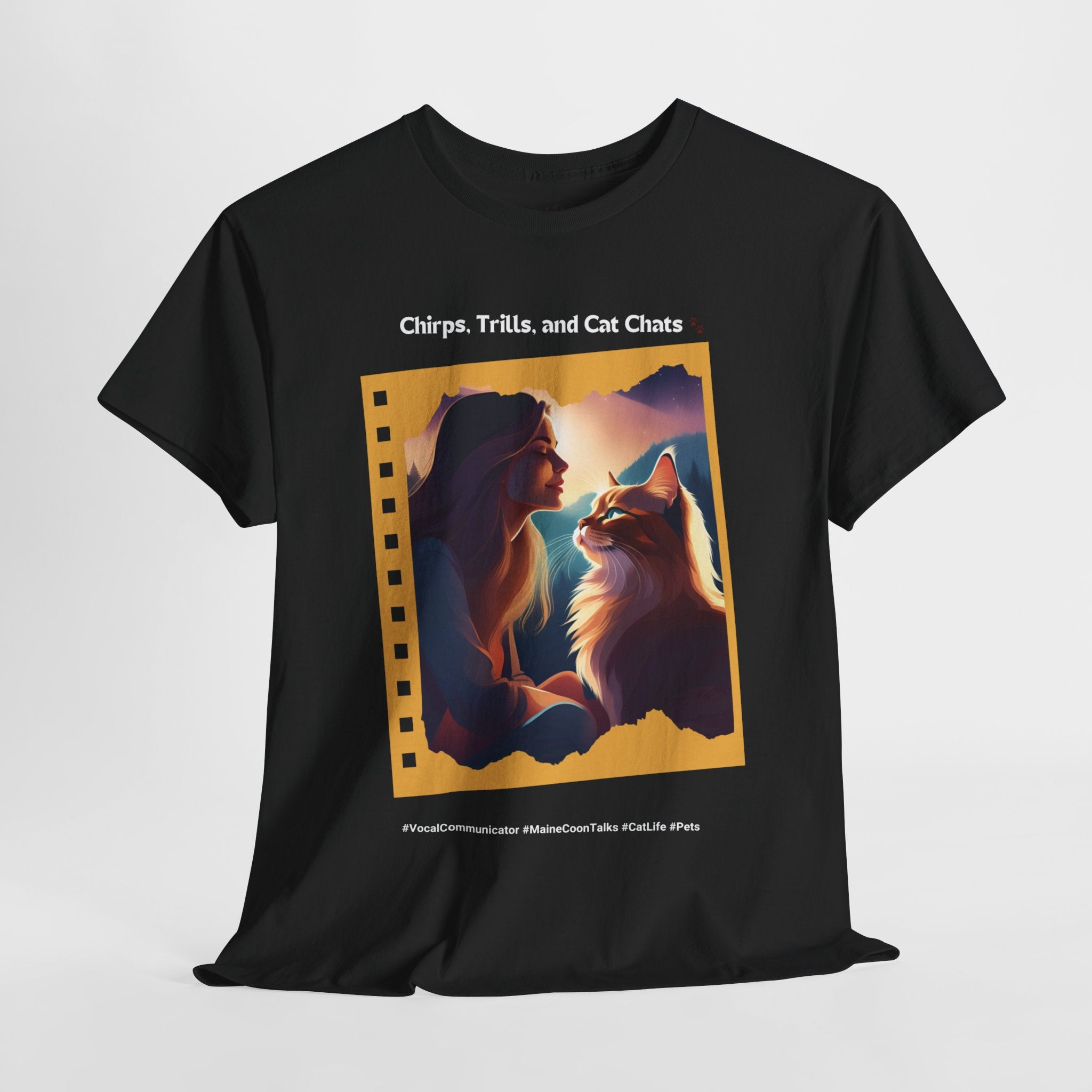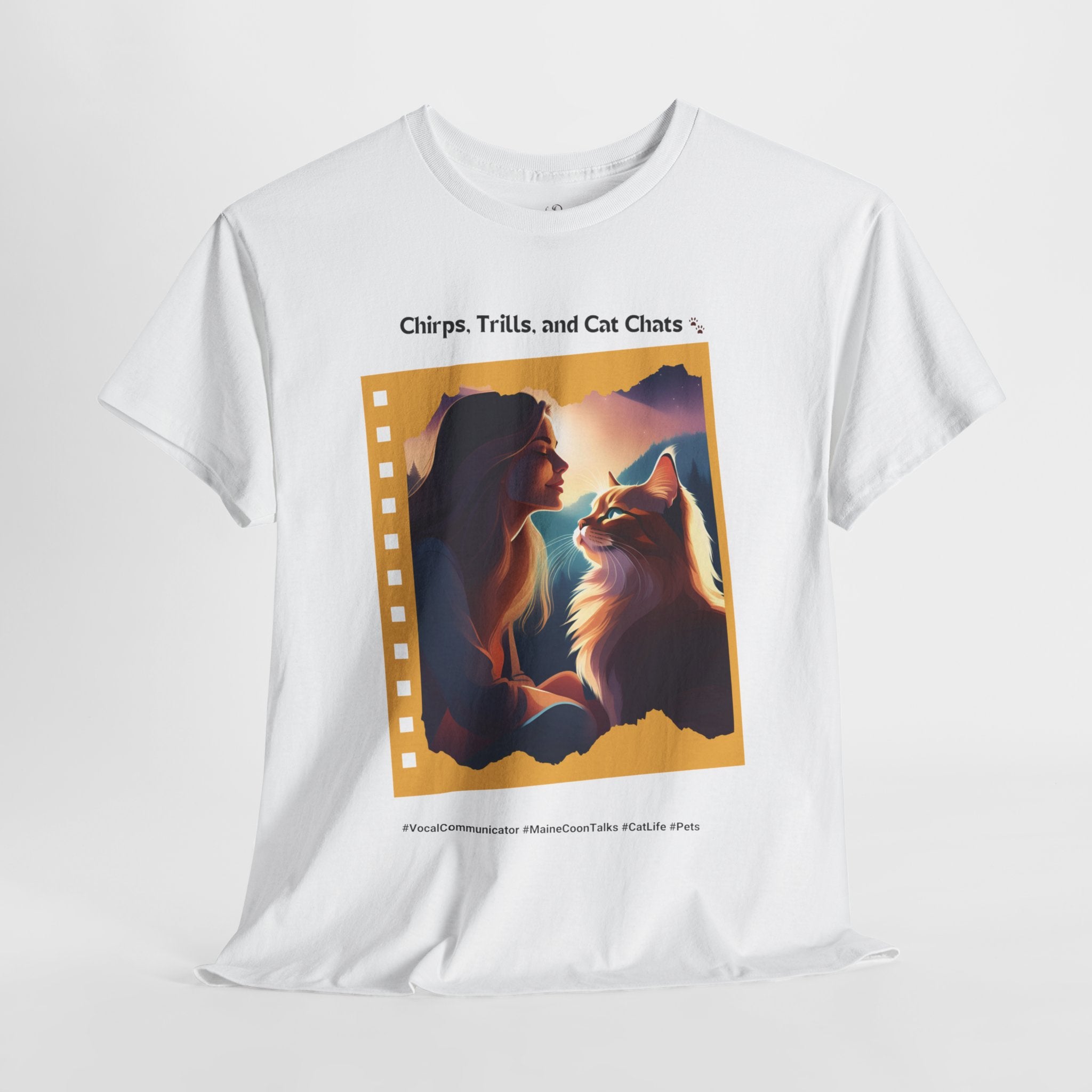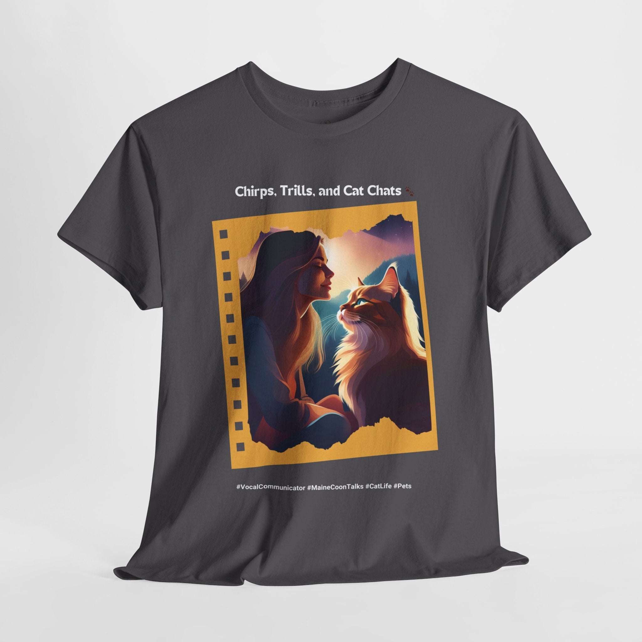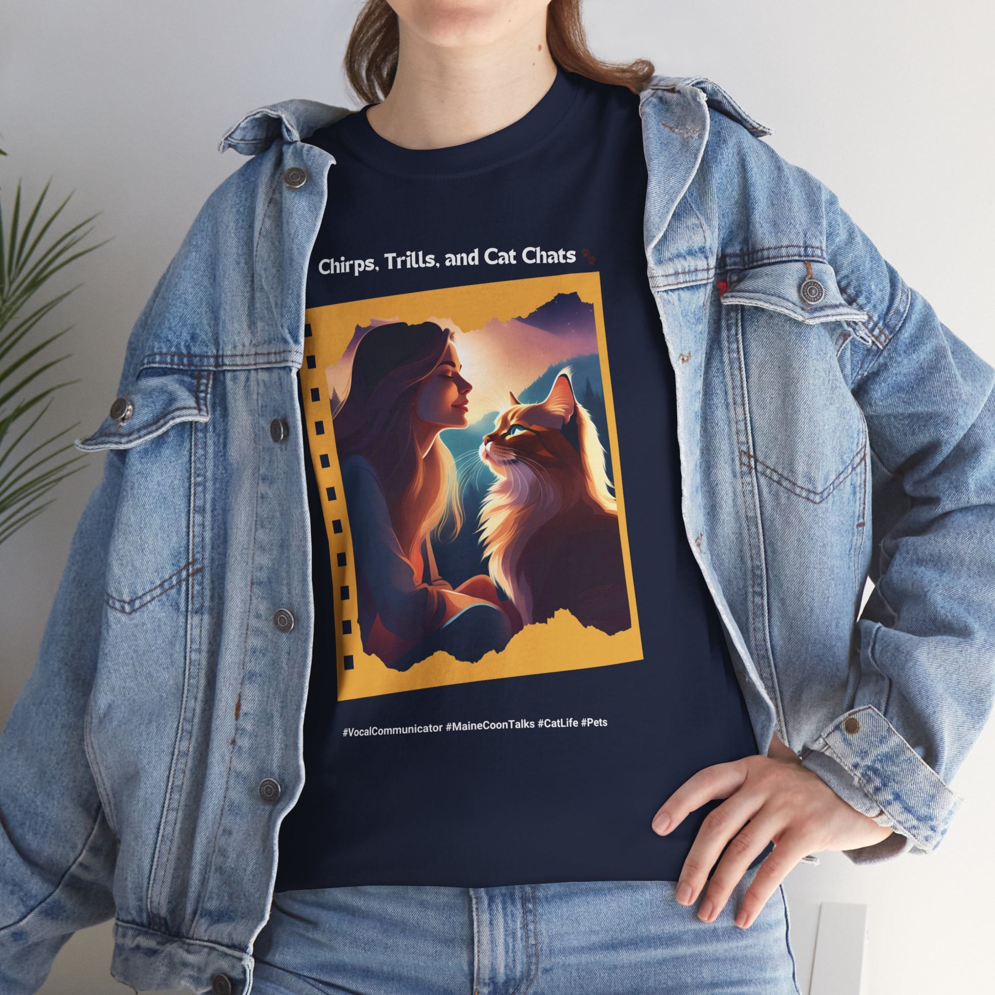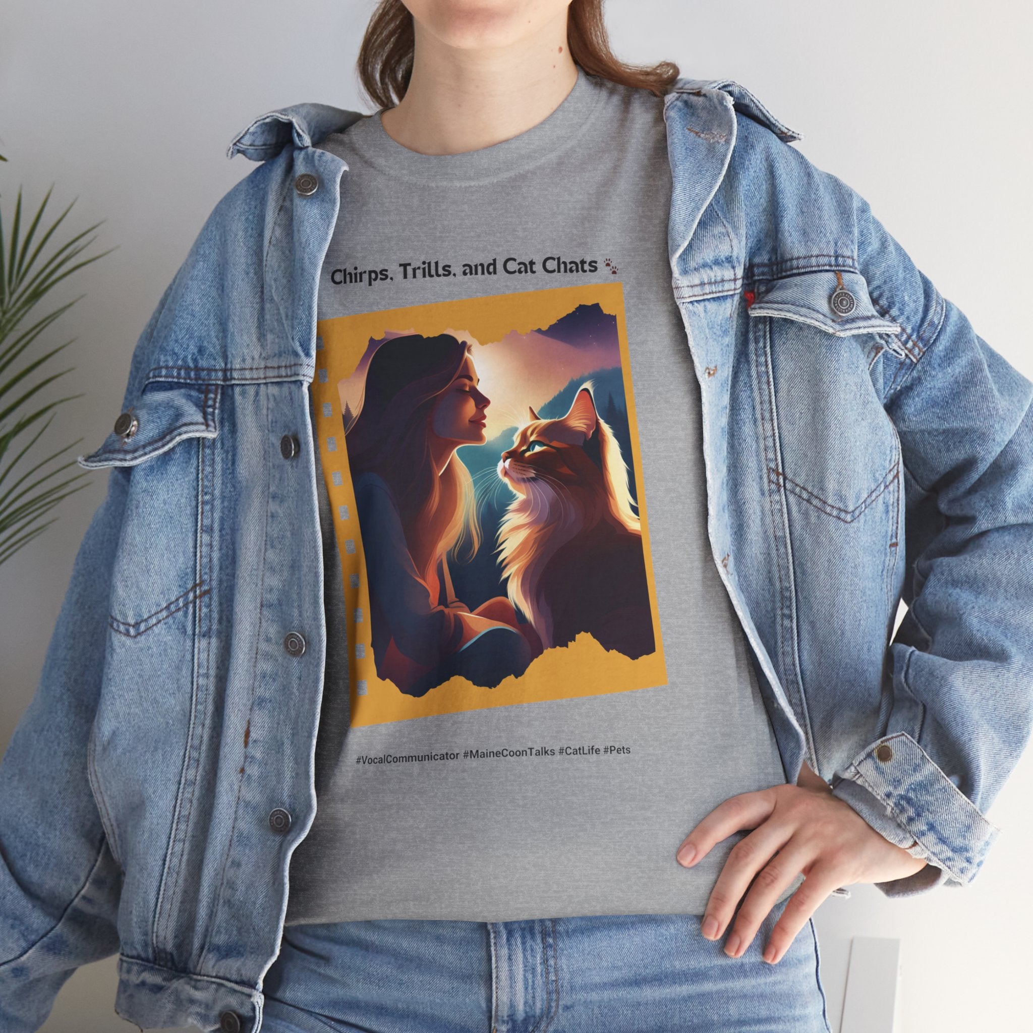 Women’s “Chirps, Trills & Cat Chats” Maine Coon T‑Shirt – Vocal Cat Mom Gift