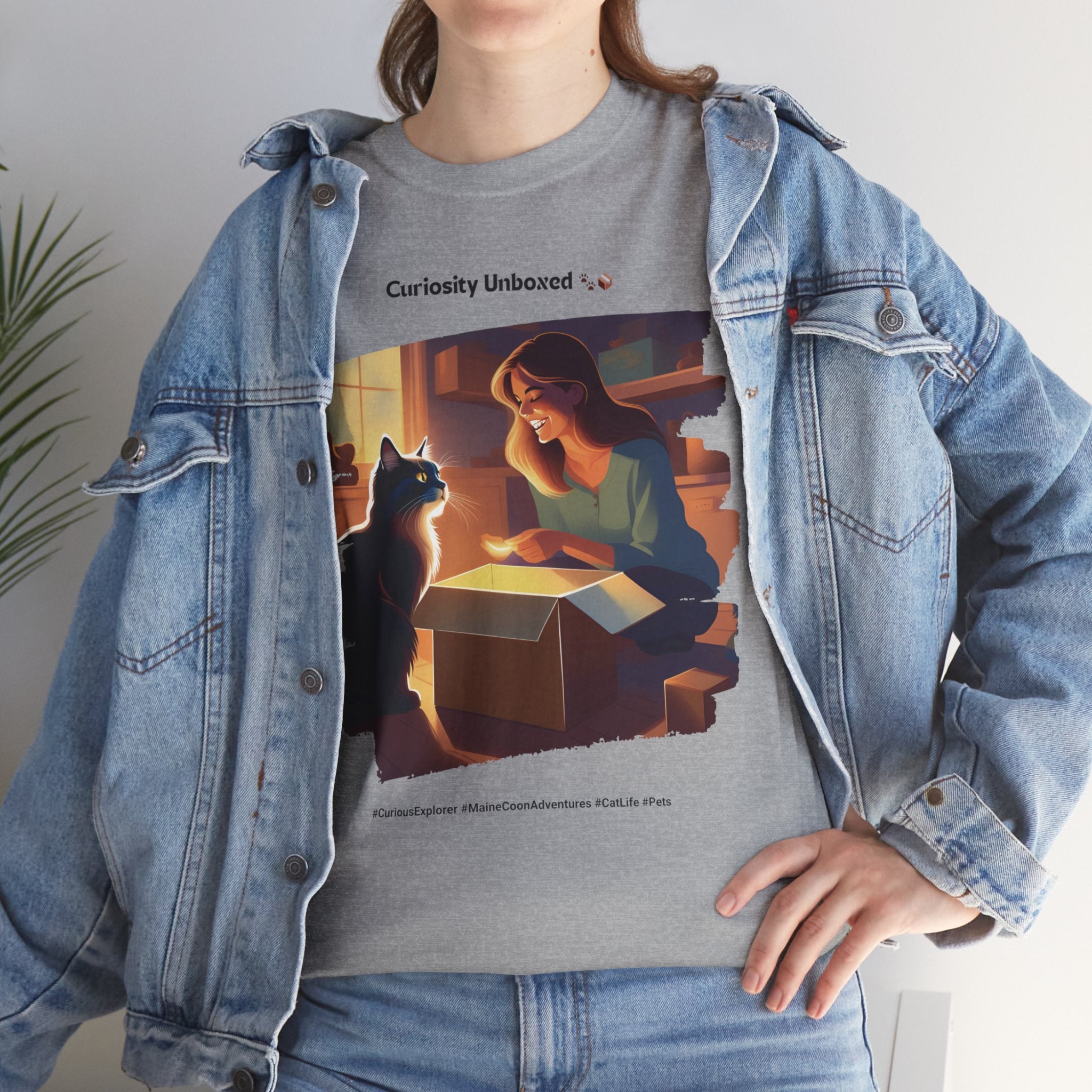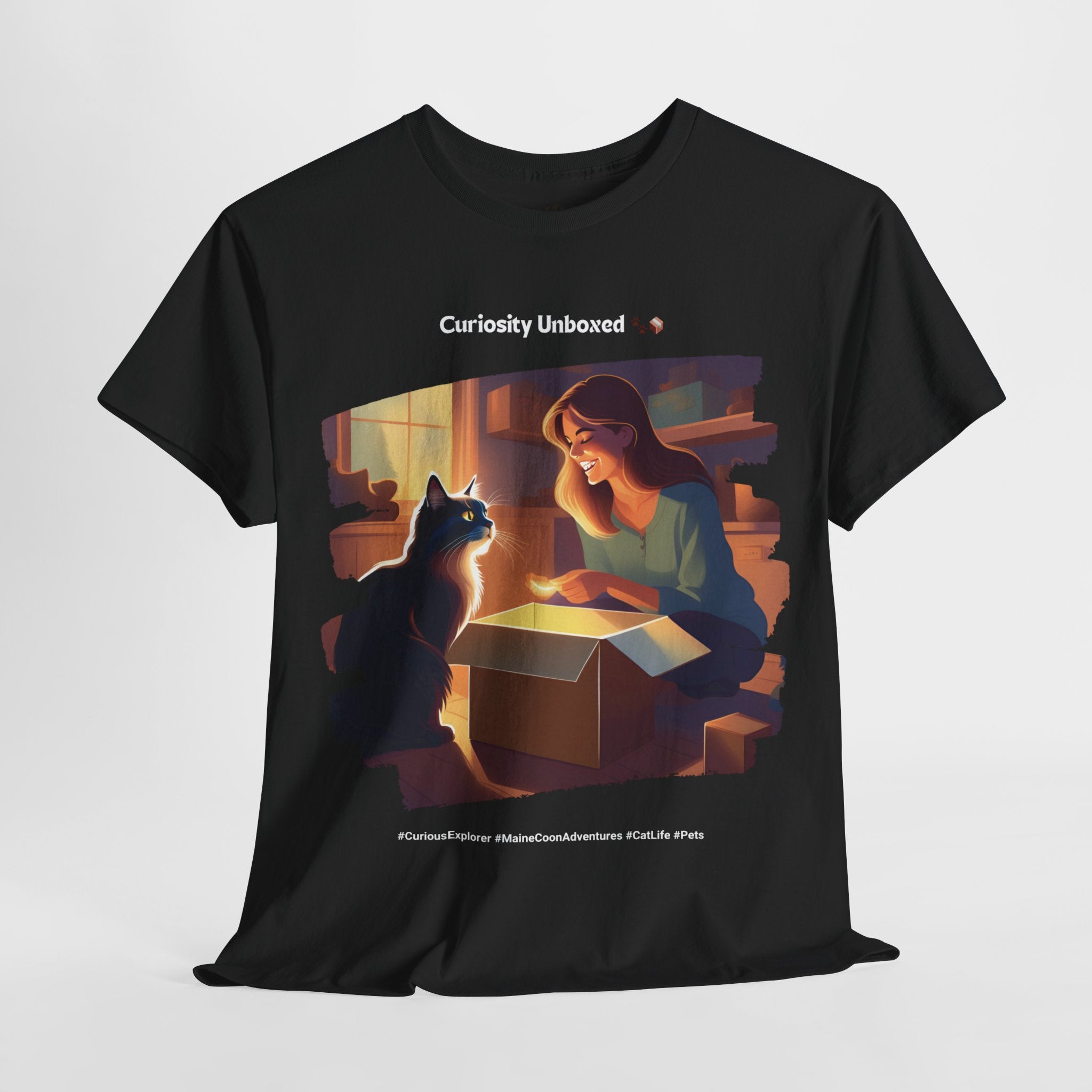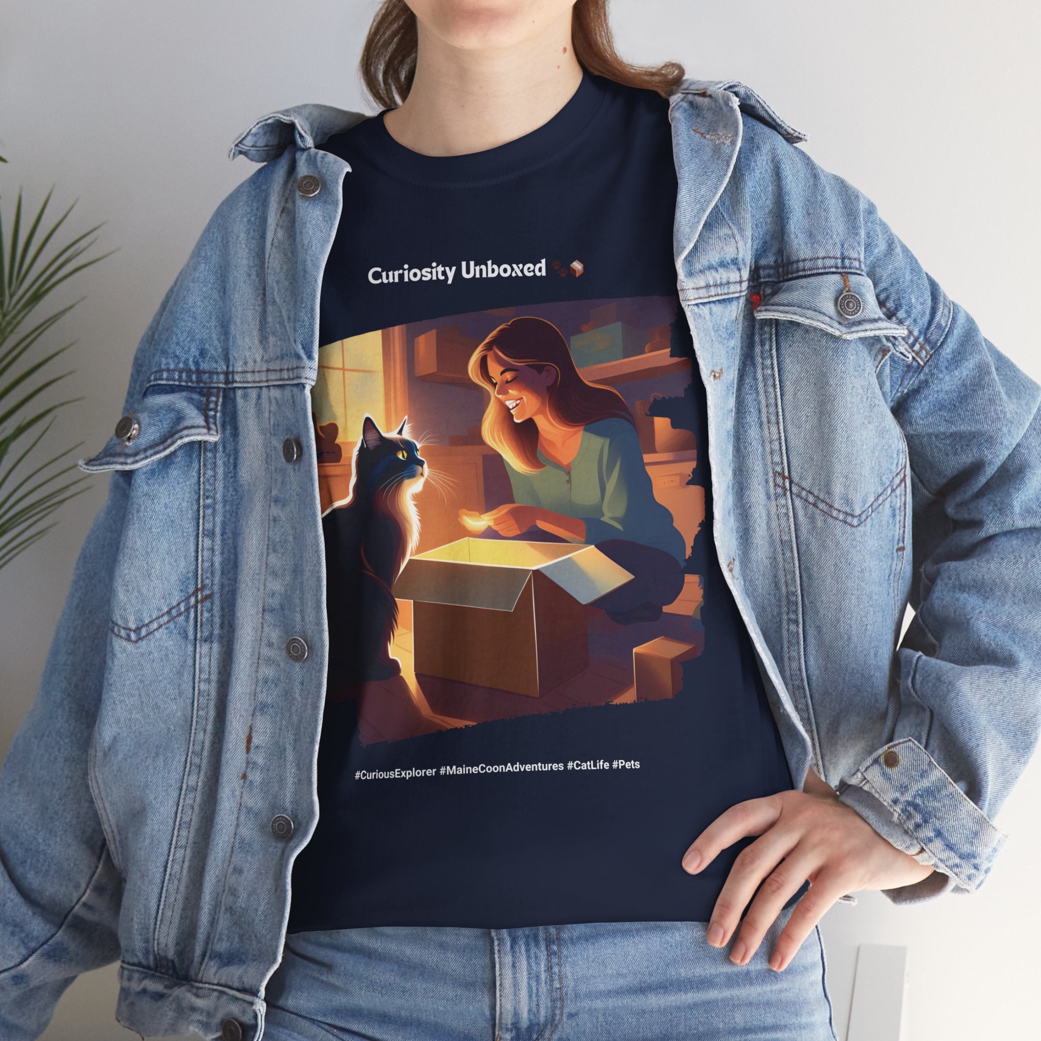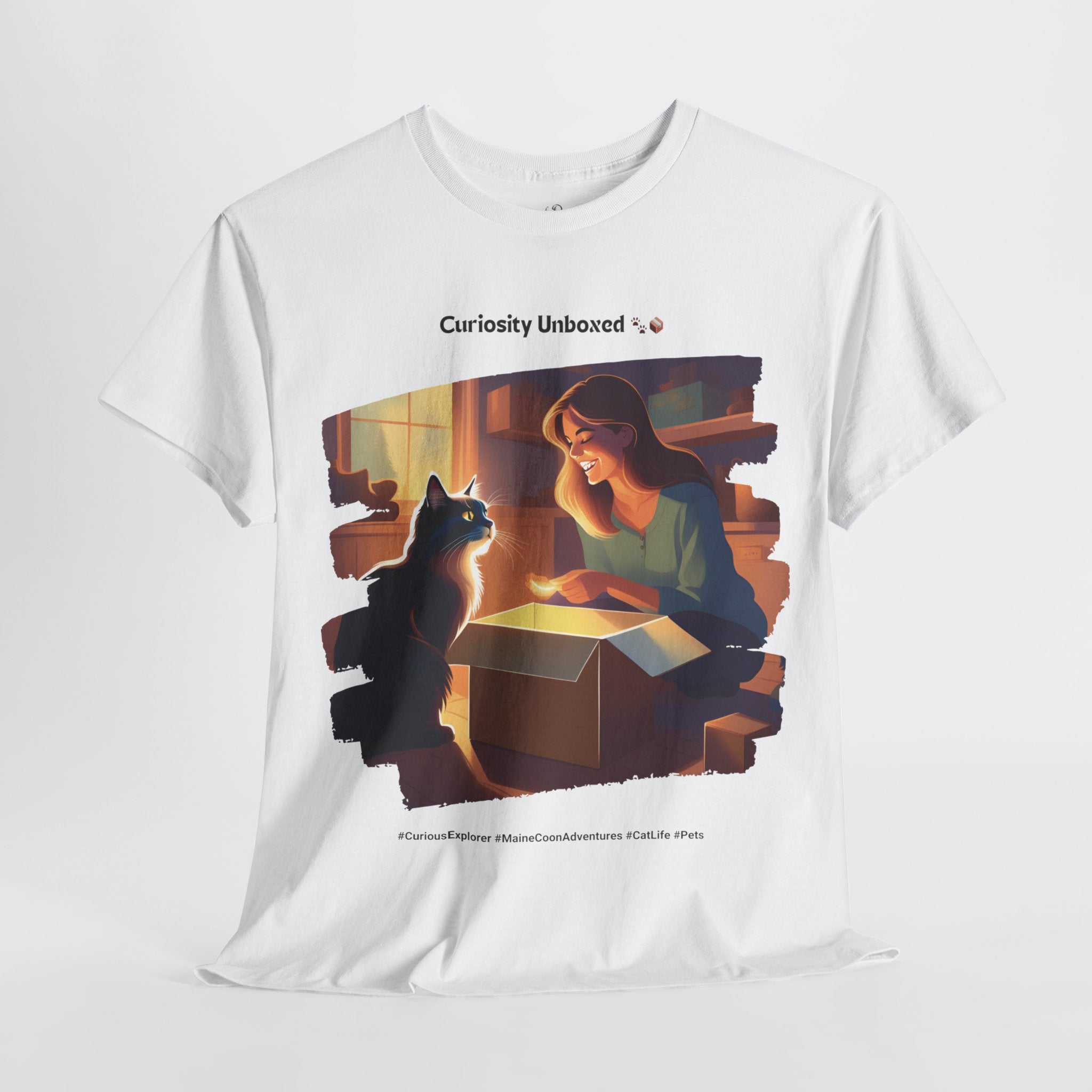 Women’s “Curiosity Unboxed” Maine Coon T‑Shirt – Adventurous Cat Mom Gift