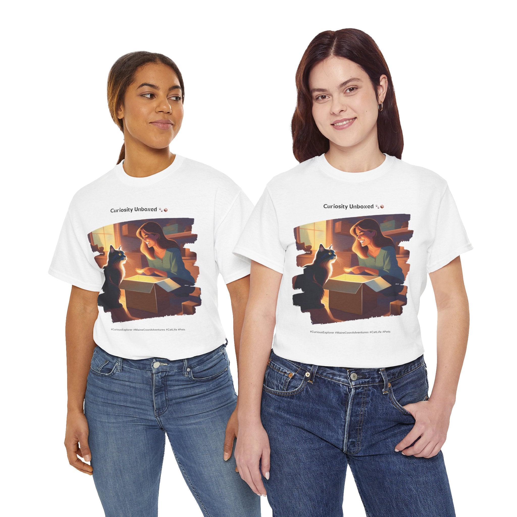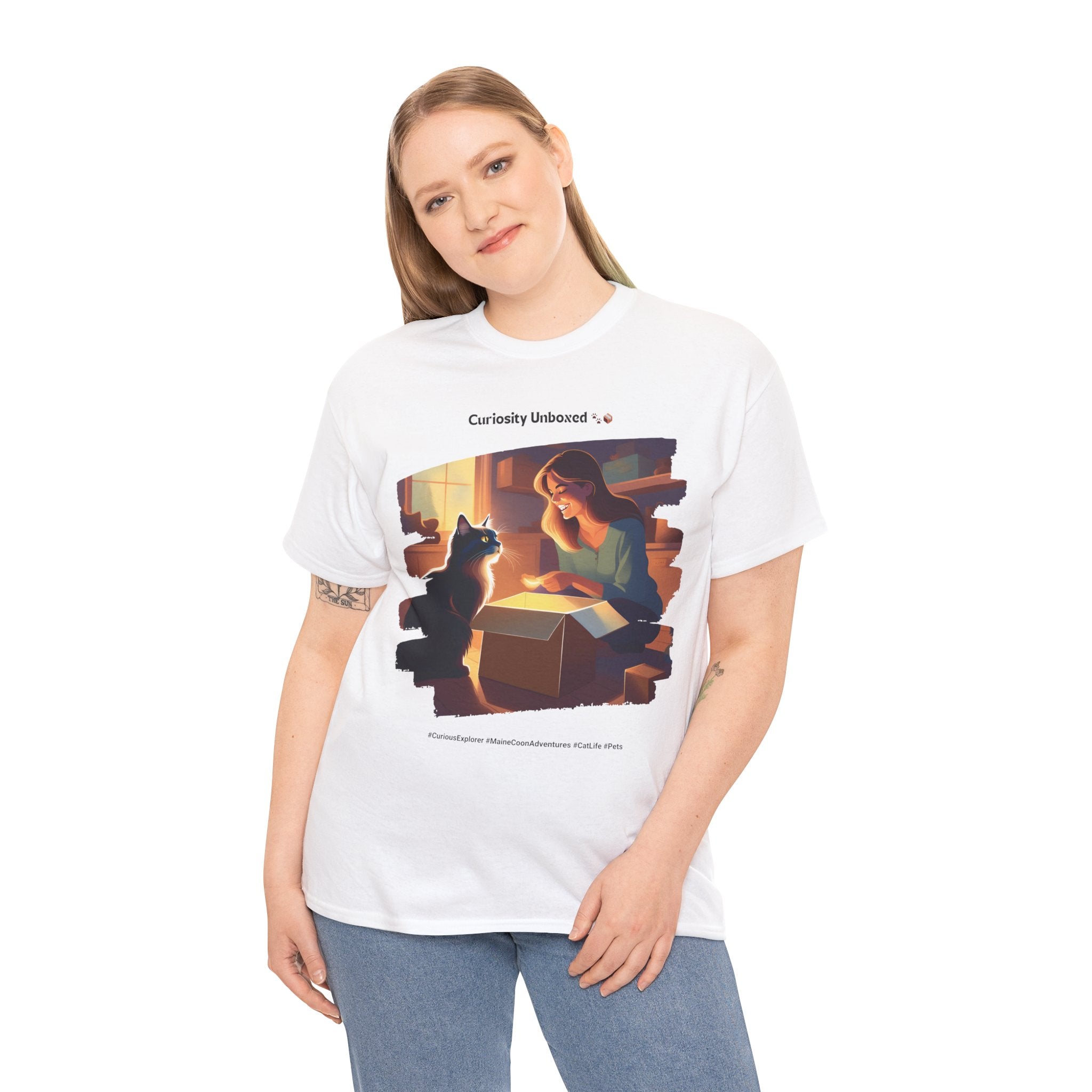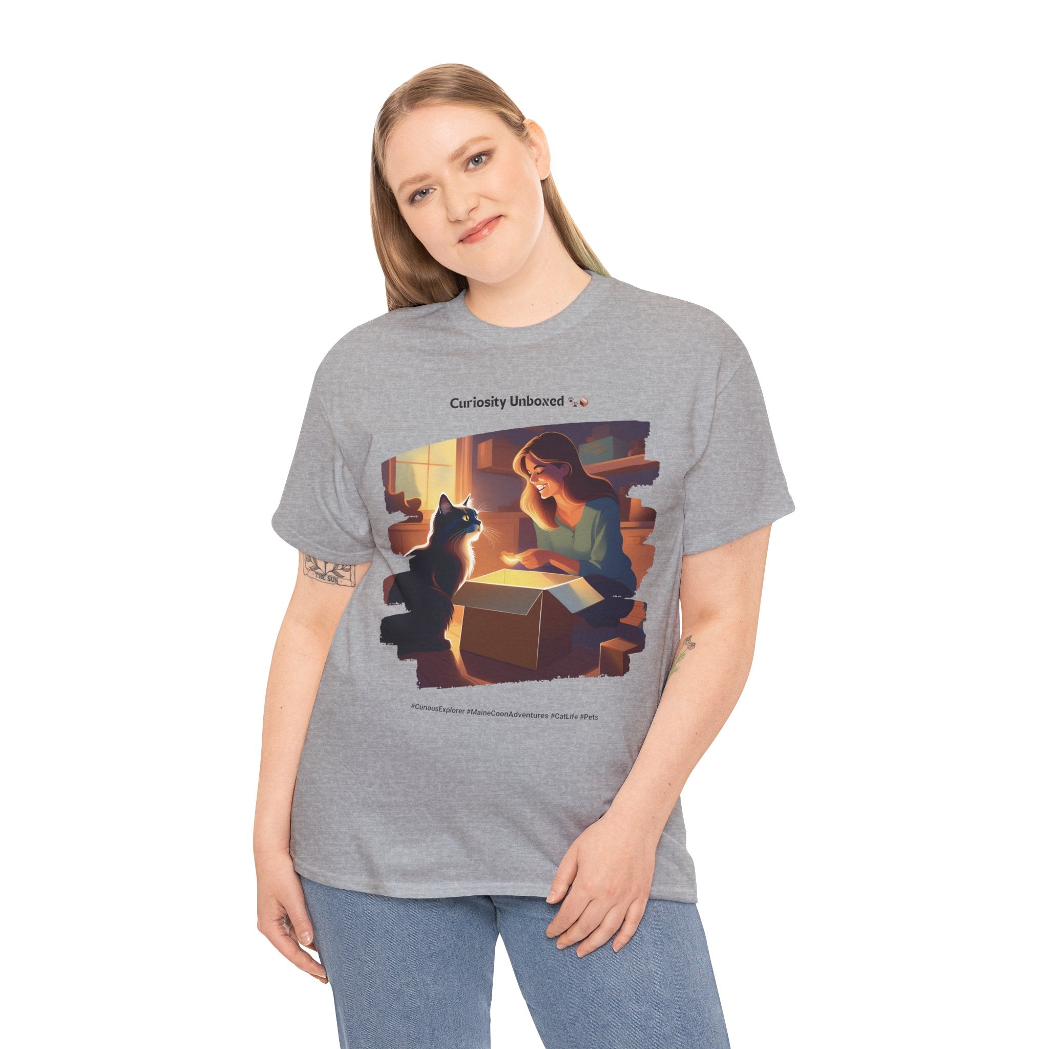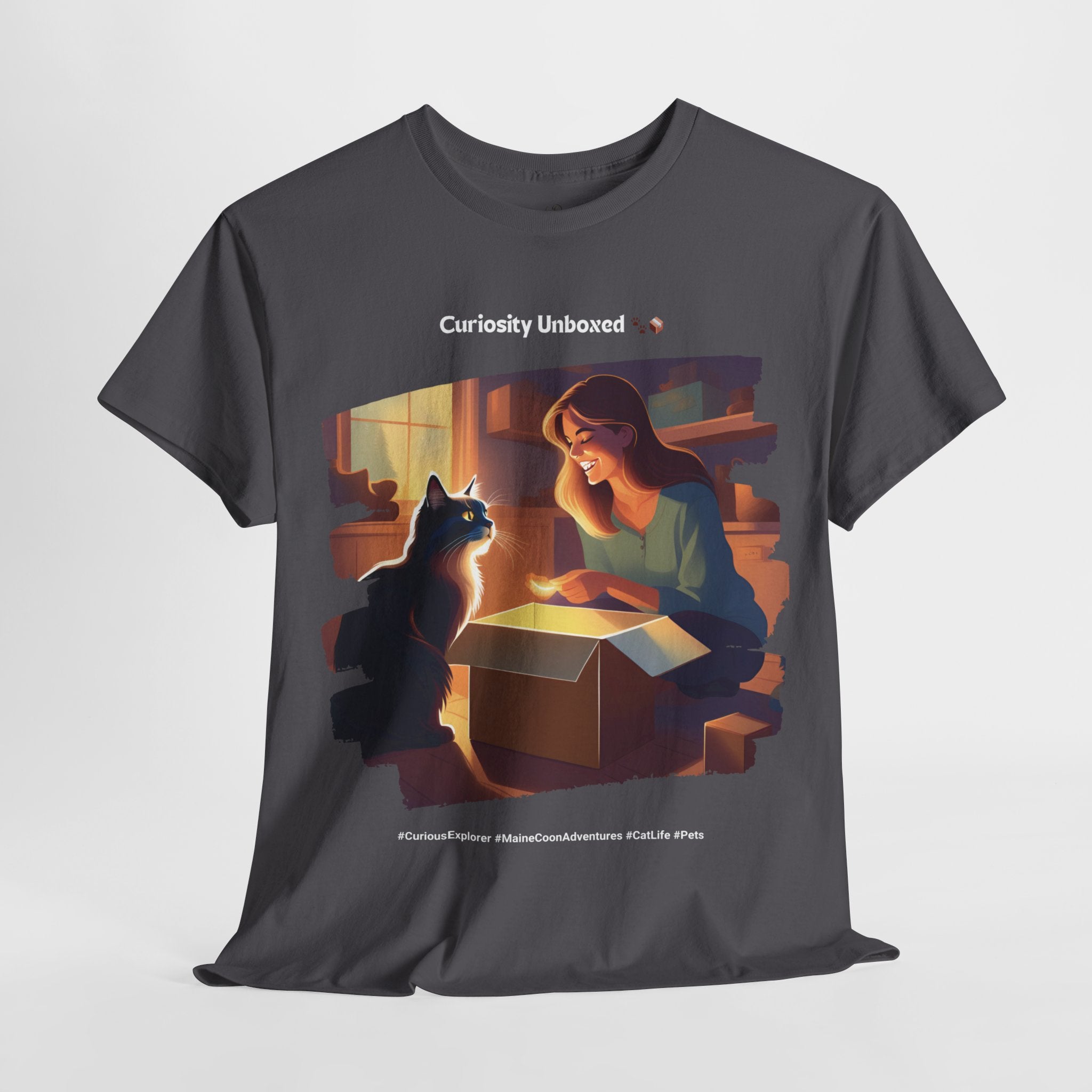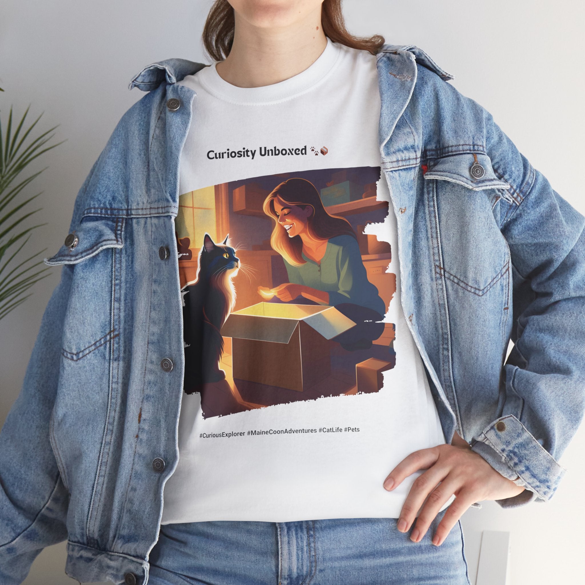Women’s “Curiosity Unboxed” Maine Coon T‑Shirt – Adventurous Cat Mom Gift