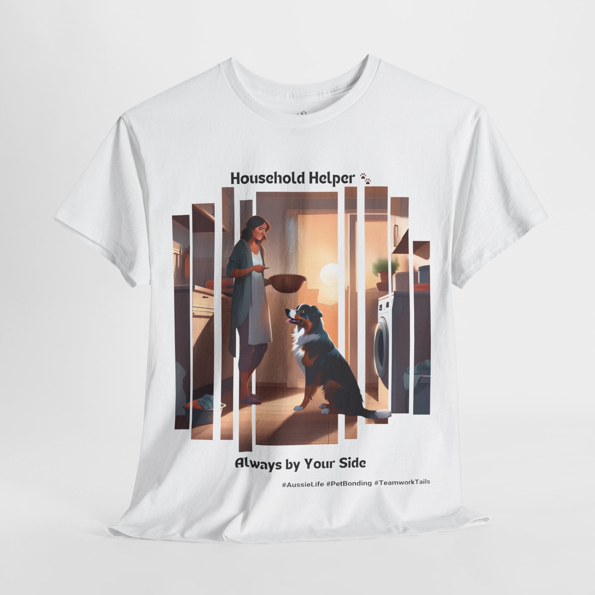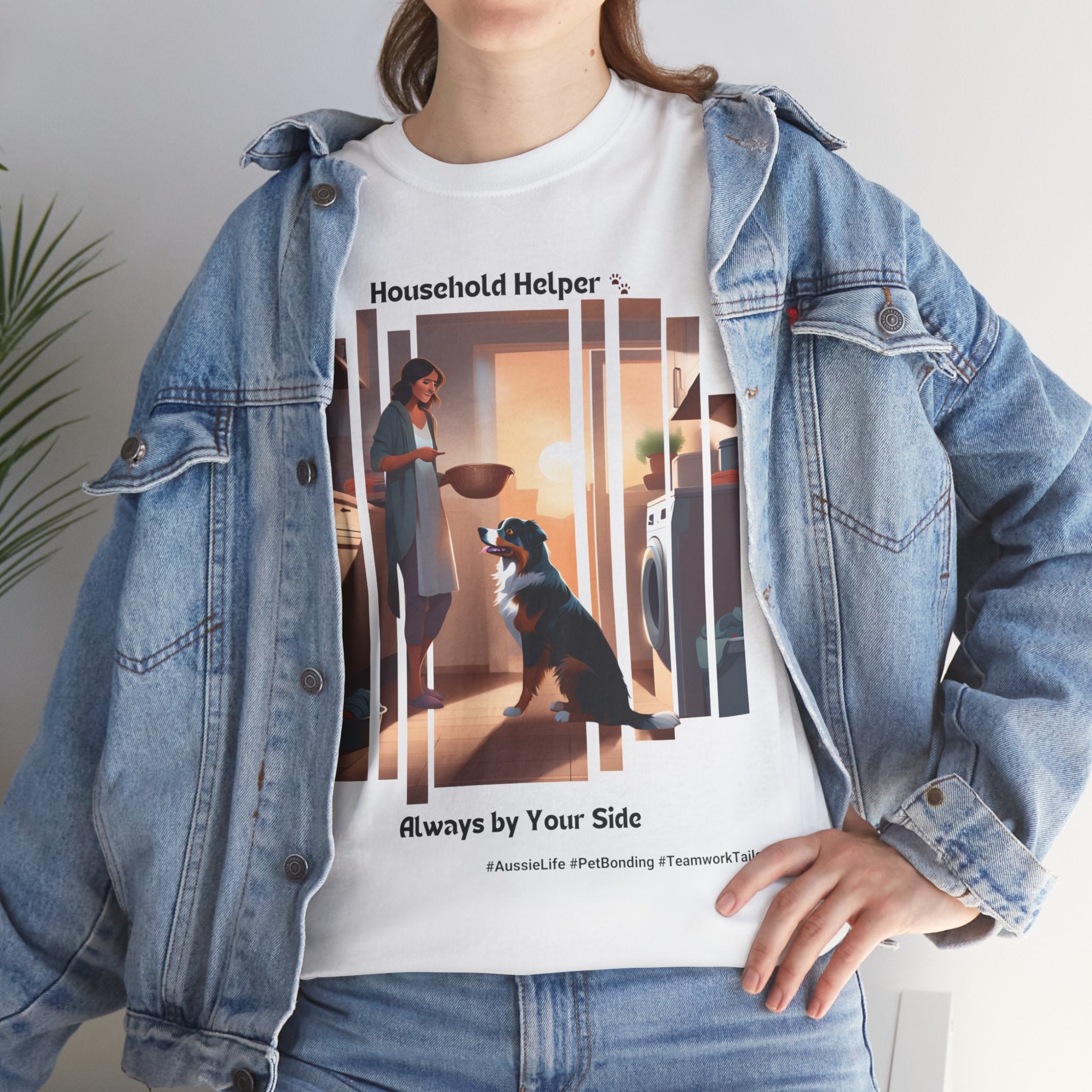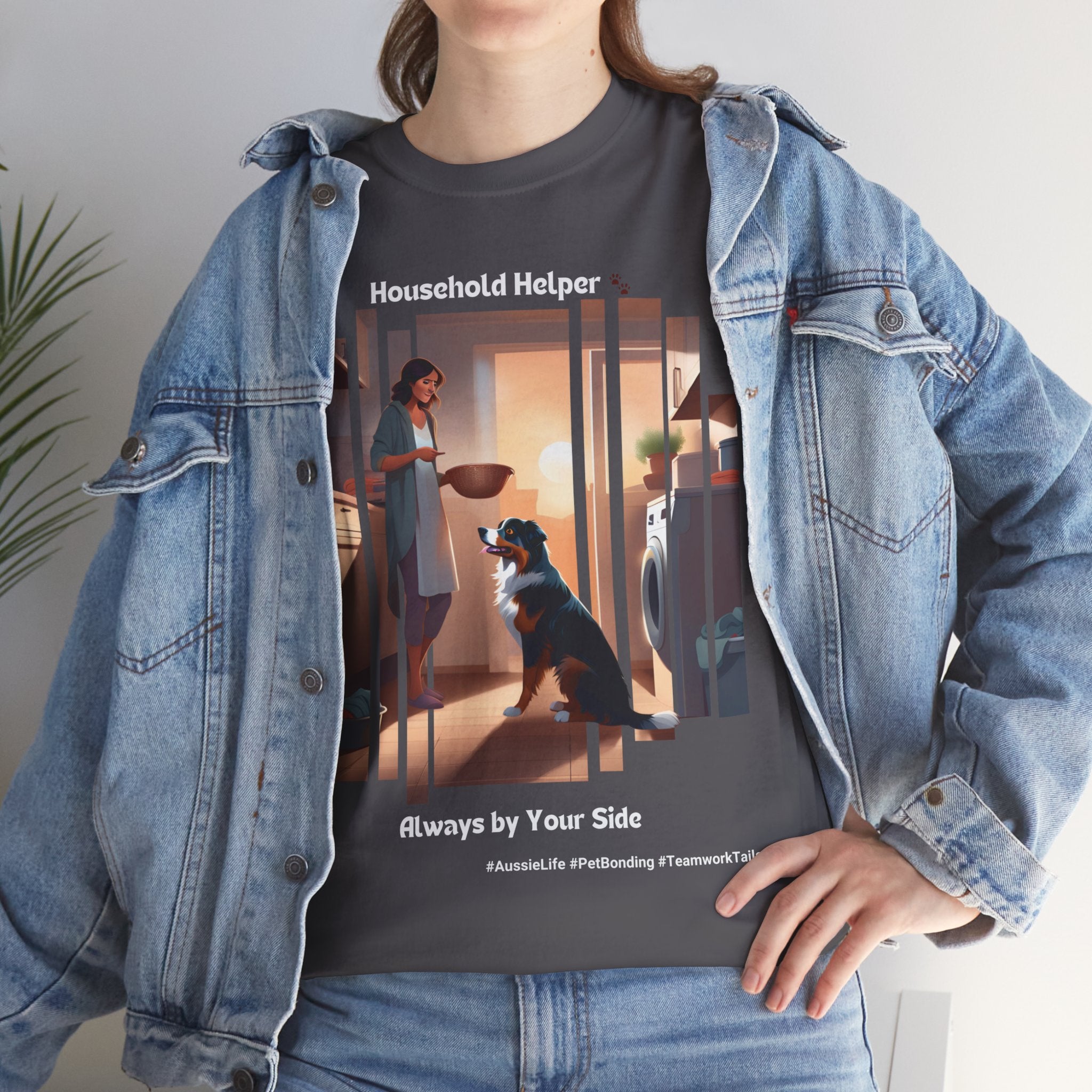 Women’s “Household Helper” Australian Shepherd T‑Shirt – Helper Pup Tee, Home Heart Gift