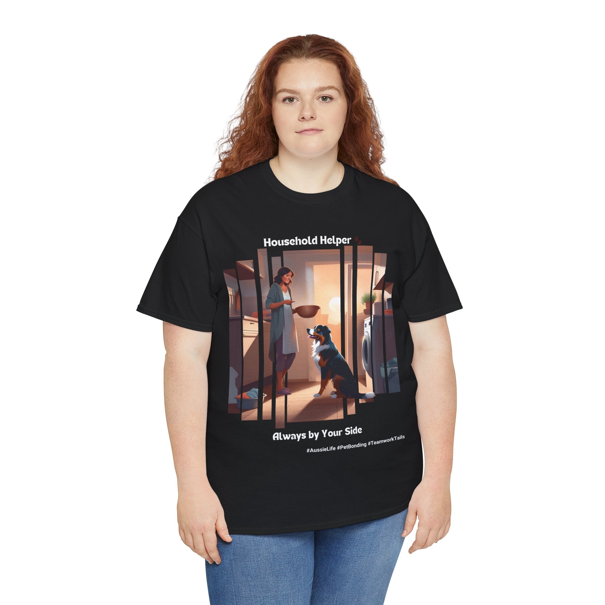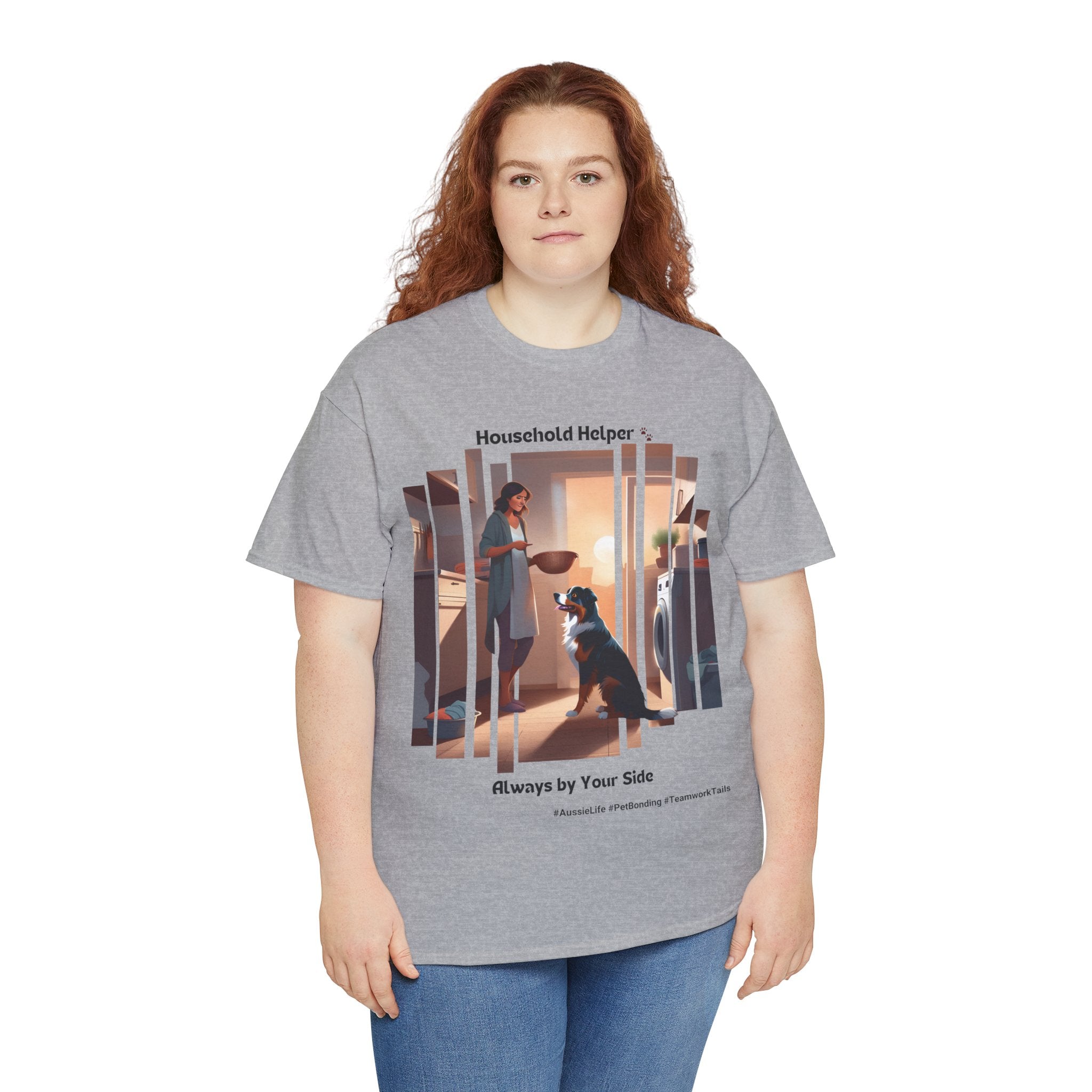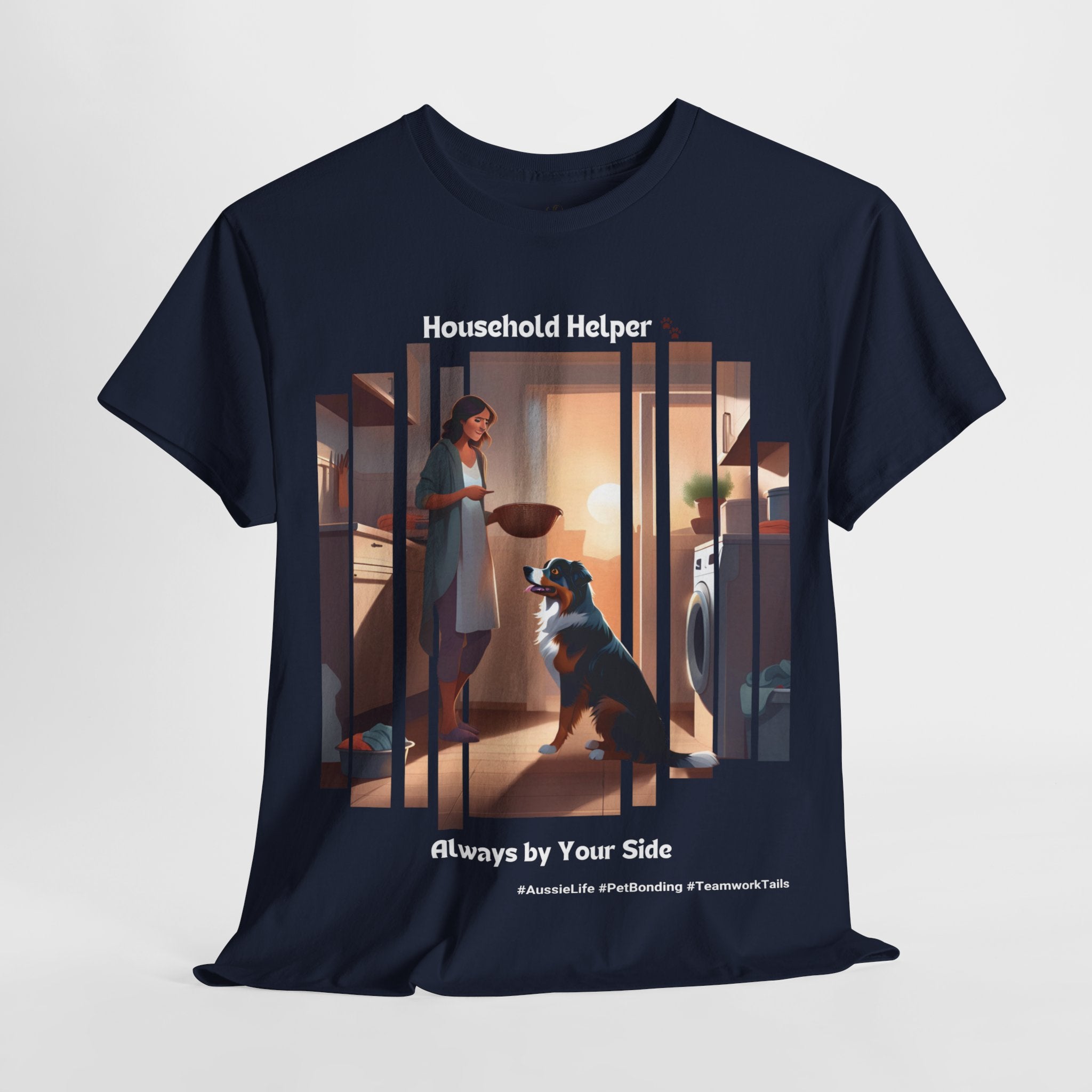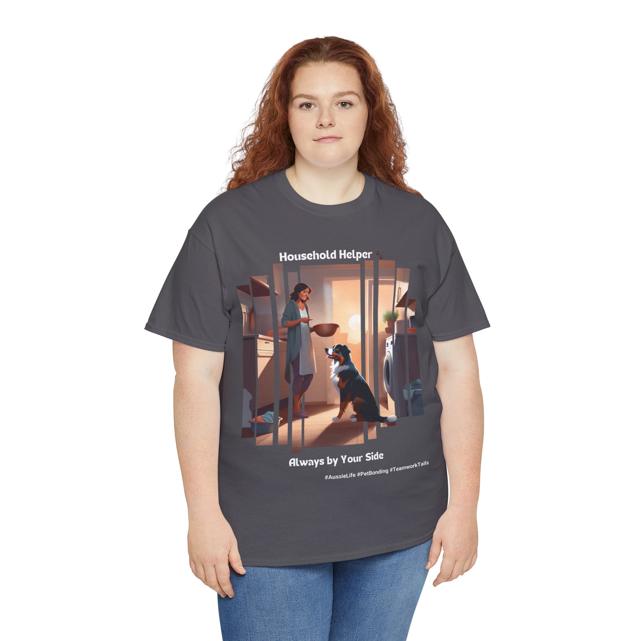 Women’s “Household Helper” Australian Shepherd T‑Shirt – Helper Pup Tee, Home Heart Gift