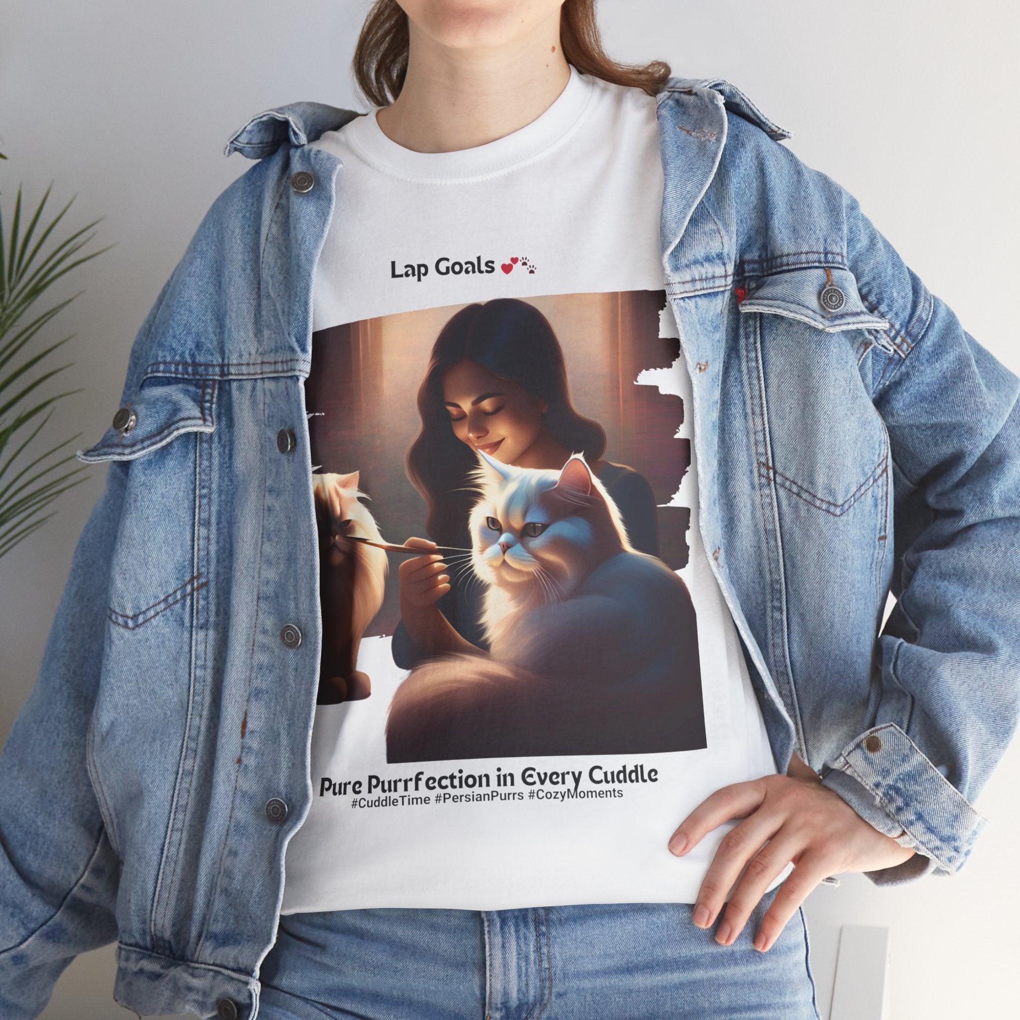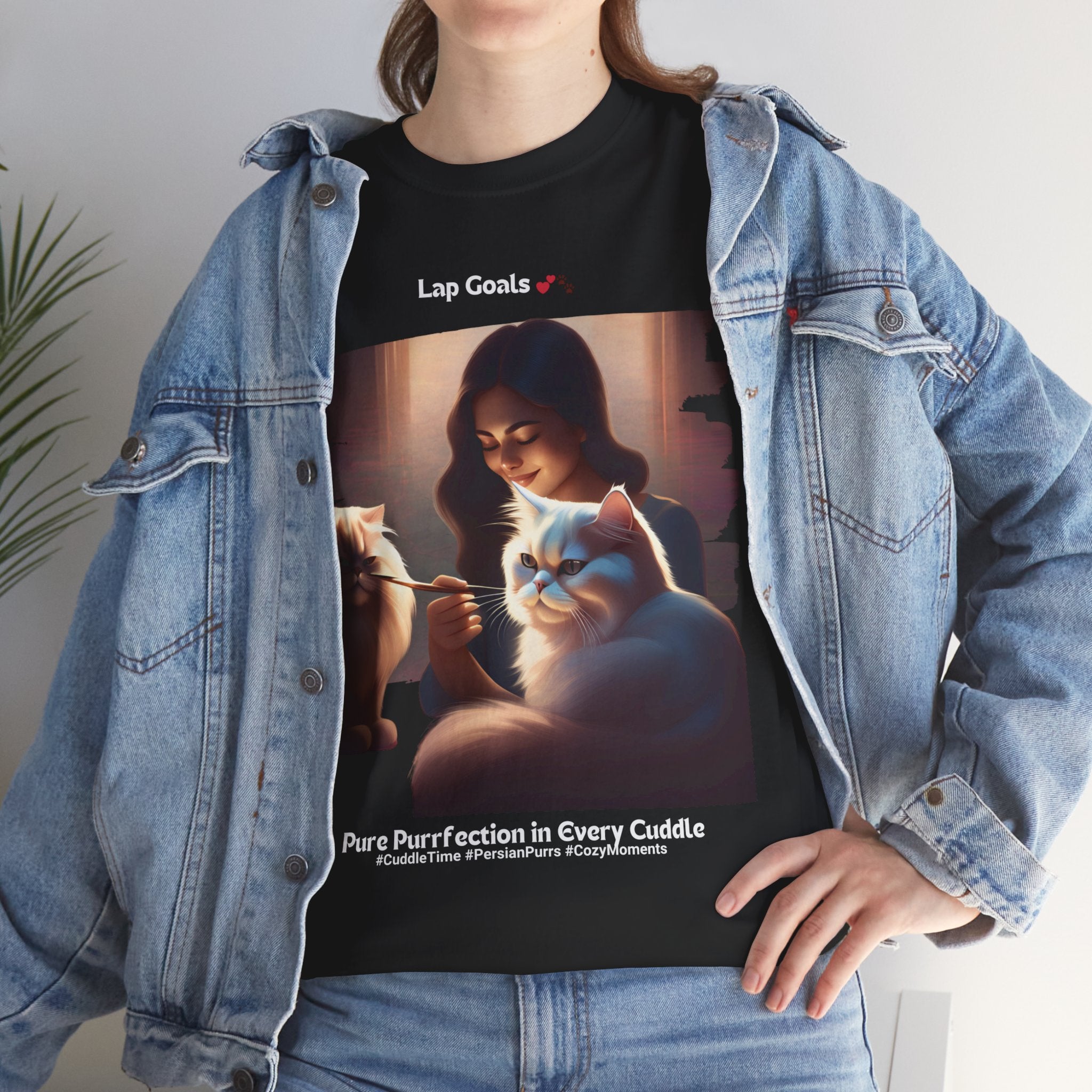 Are you dreaming of the ultimate cuddle buddy? Look no further than the Persian cat. Known for their affectionate nature and love of cozy moments, Persian cats make the ideal lap companions. This t-shirt celebrates the heartwarming bond between a human and their Persian cat, capturing the pure joy and comfort that these furry friends bring.