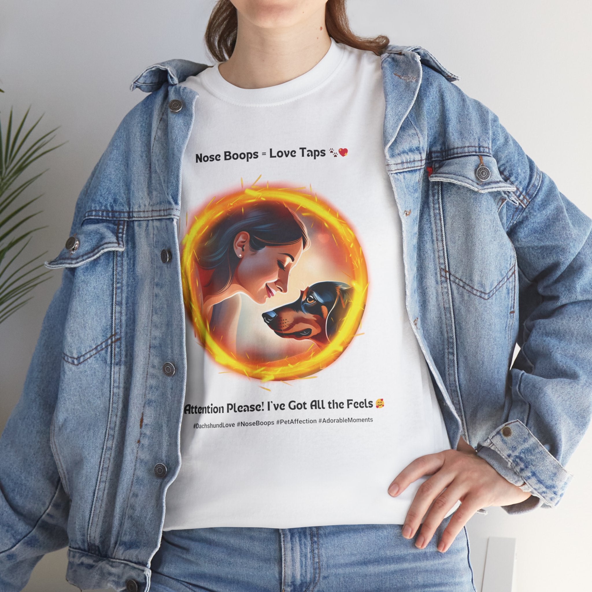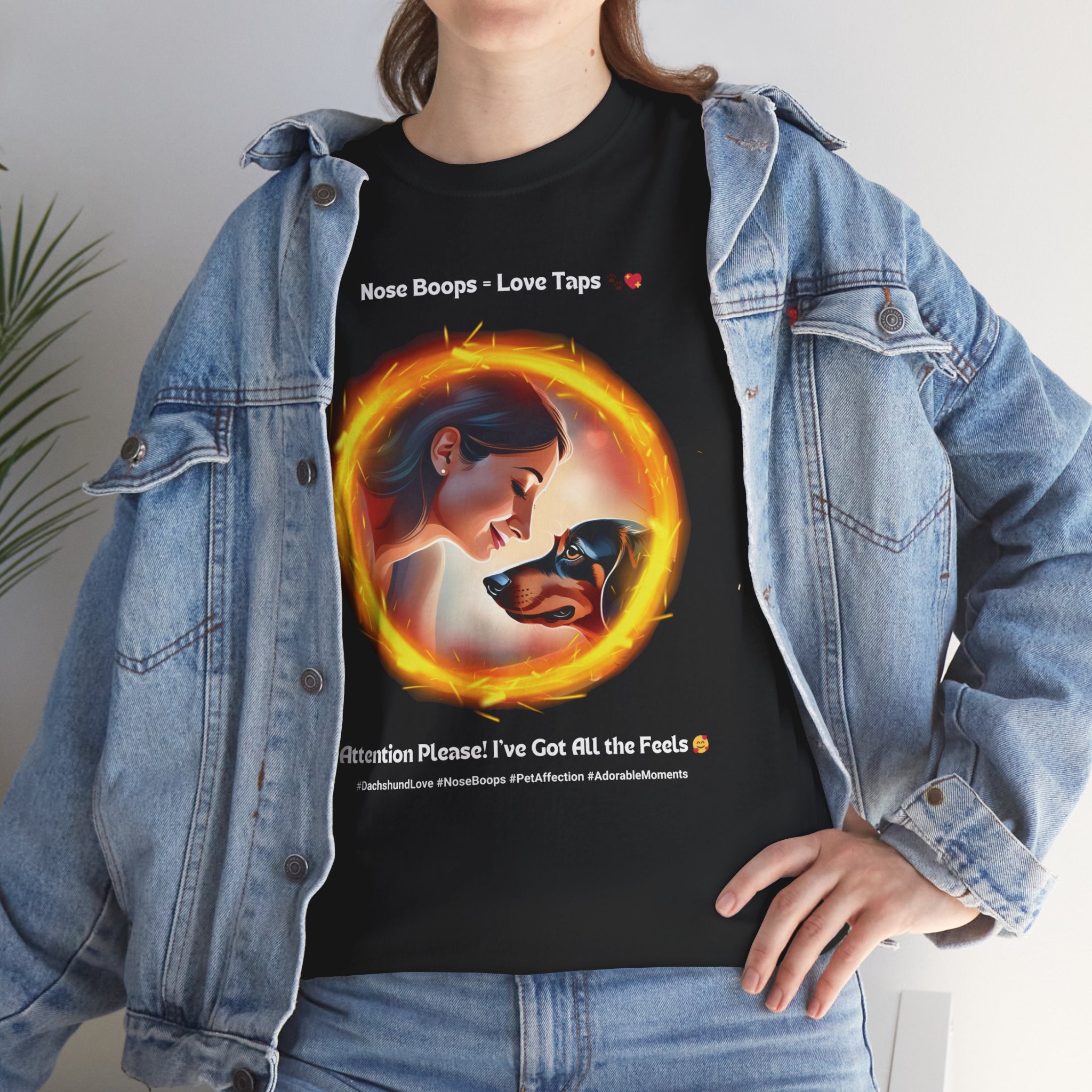 Women’s “Nose Boops = Love Taps” Dachshund T‑Shirt – Affectionate Pup Mom Gift