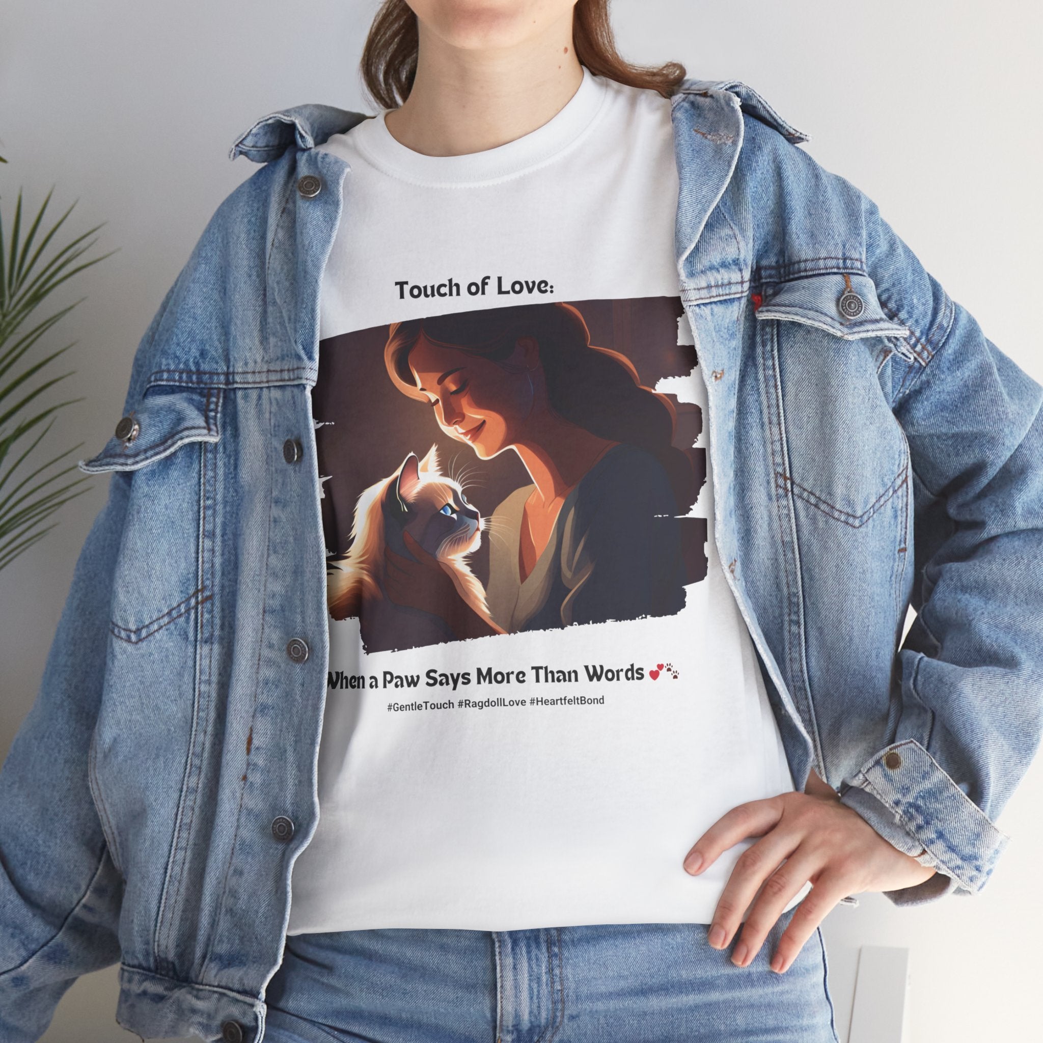 Experience the heartwarming power of a gentle touch with our Ragdoll t-shirt. This design features a beautiful image of a human lovingly petting the Ragdoll cat, capturing the unspoken bond they share.