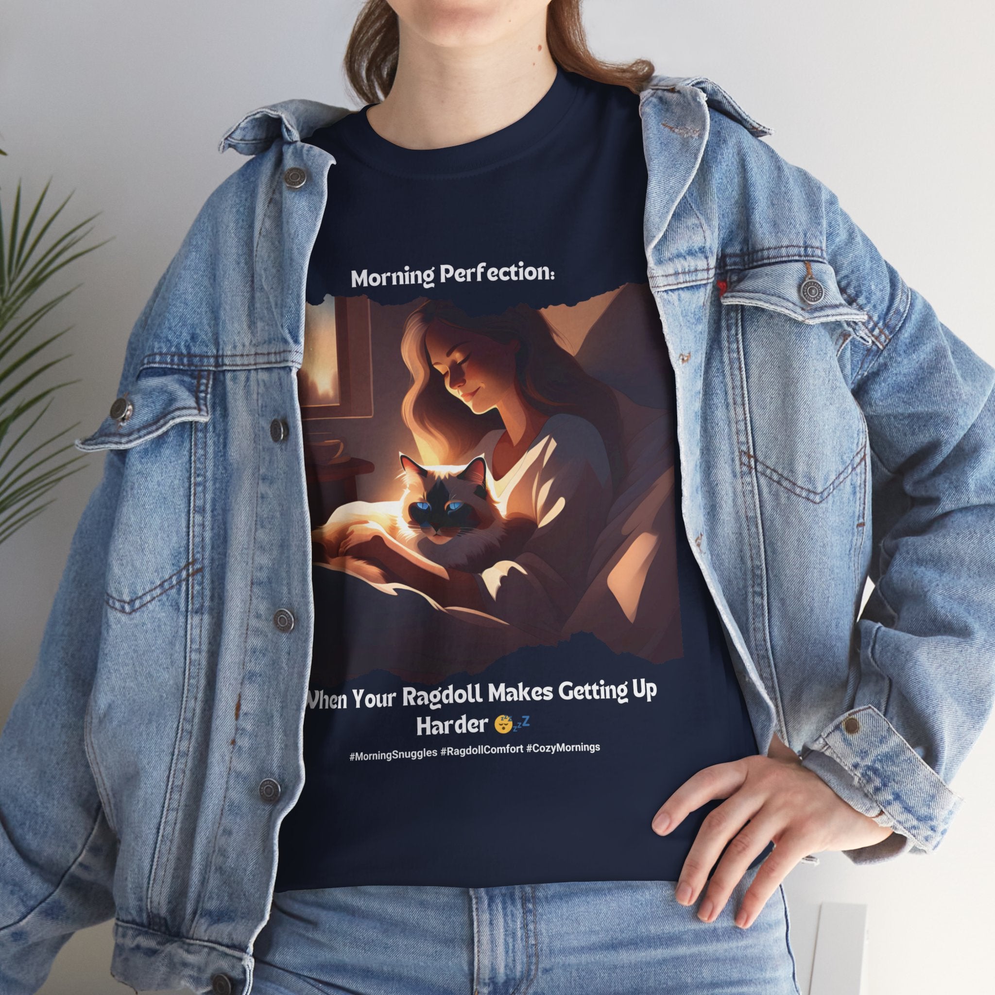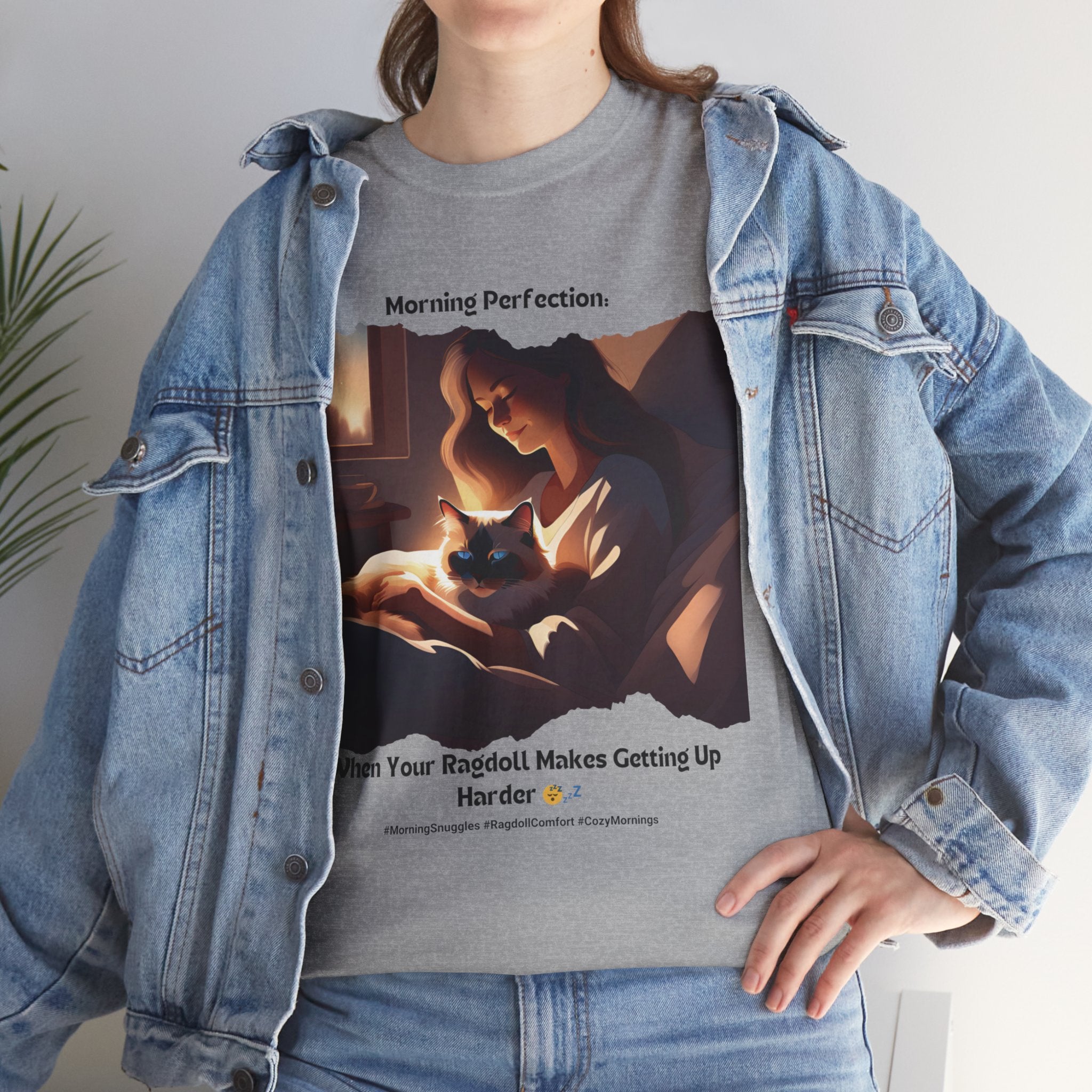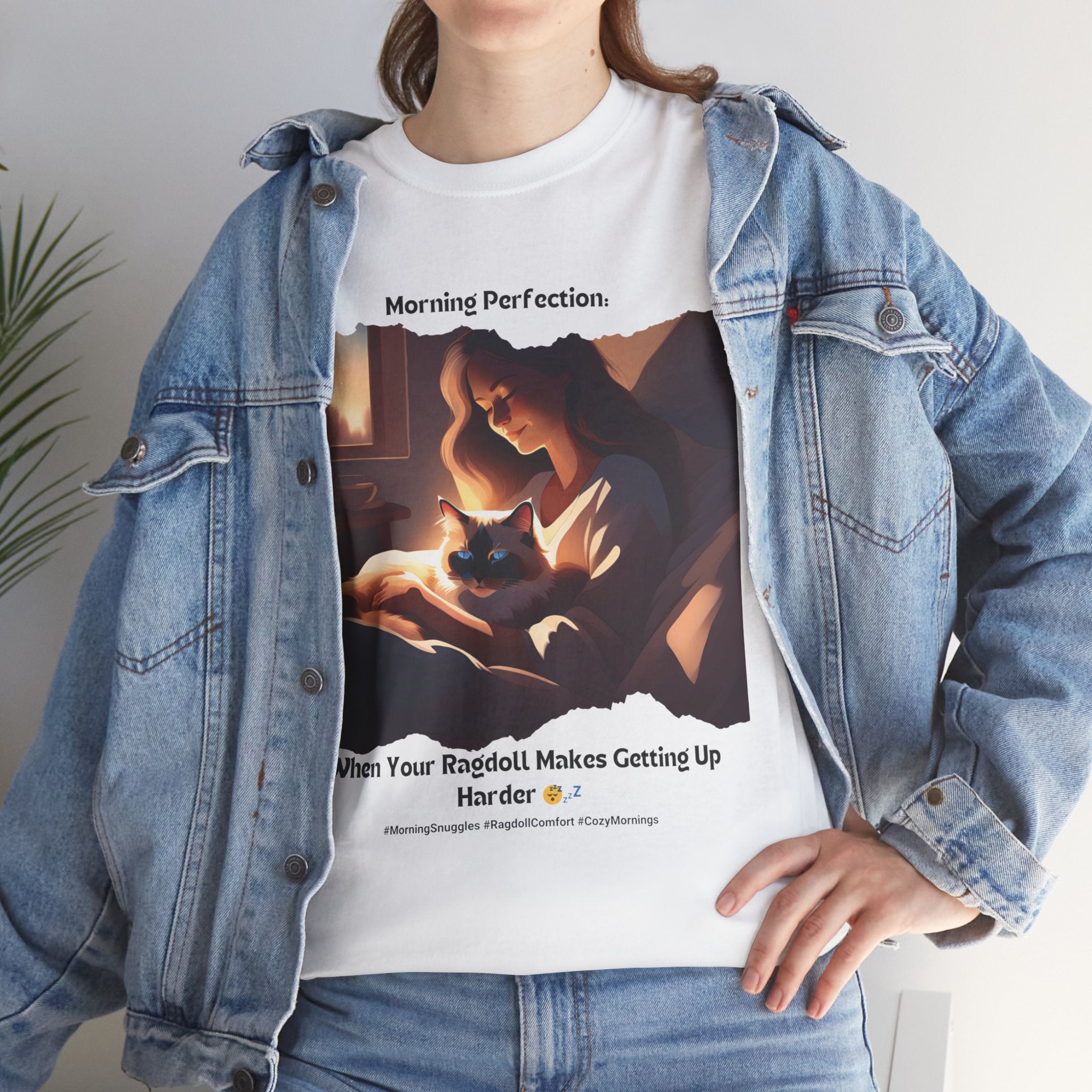 Start your day off right with a dose of pure bliss. Our Ragdoll t-shirt features a heartwarming image of a human cuddling with the adorable Ragdoll cat in bed. This design perfectly captures the irresistible urge to stay snuggled up and enjoy the morning's peaceful atmosphere.