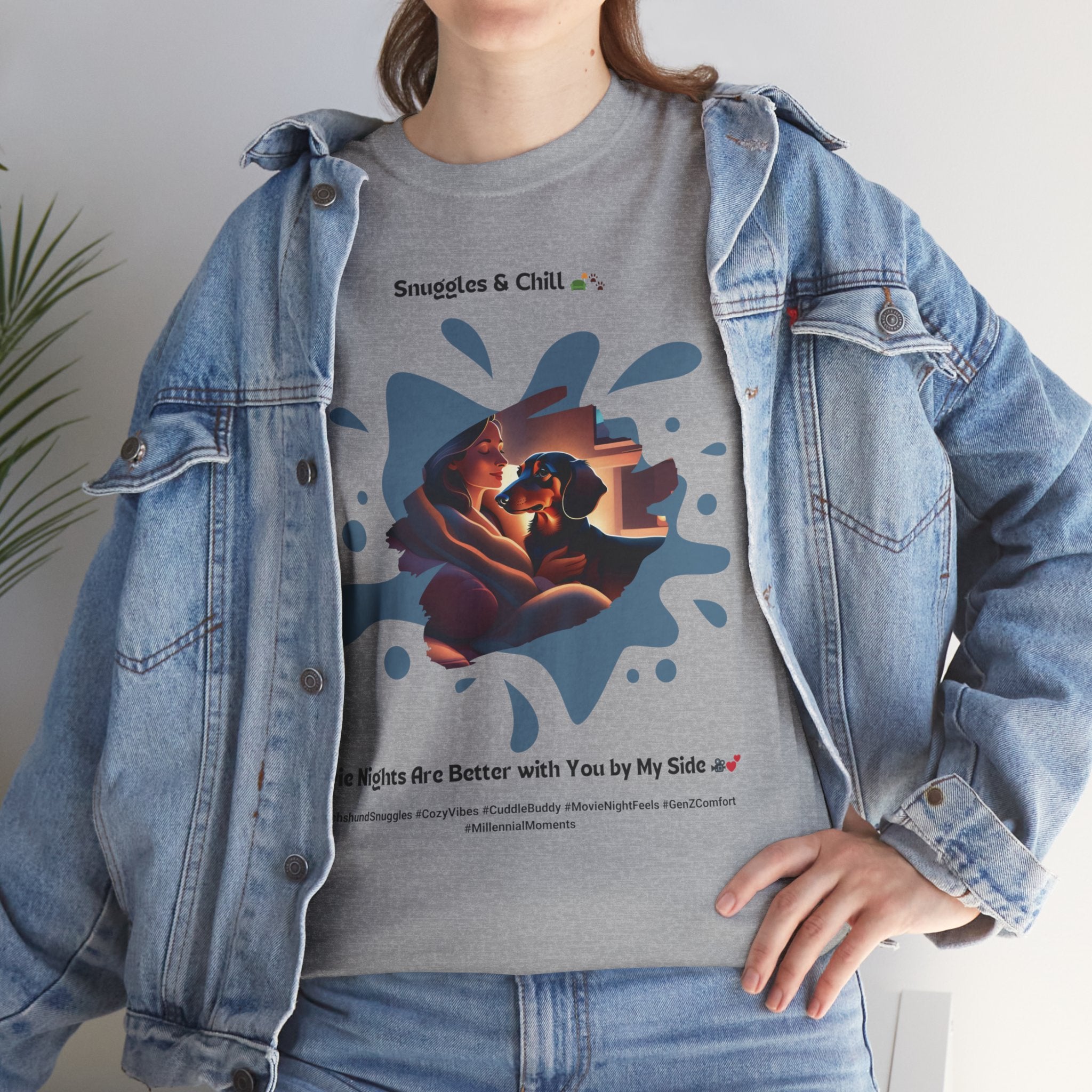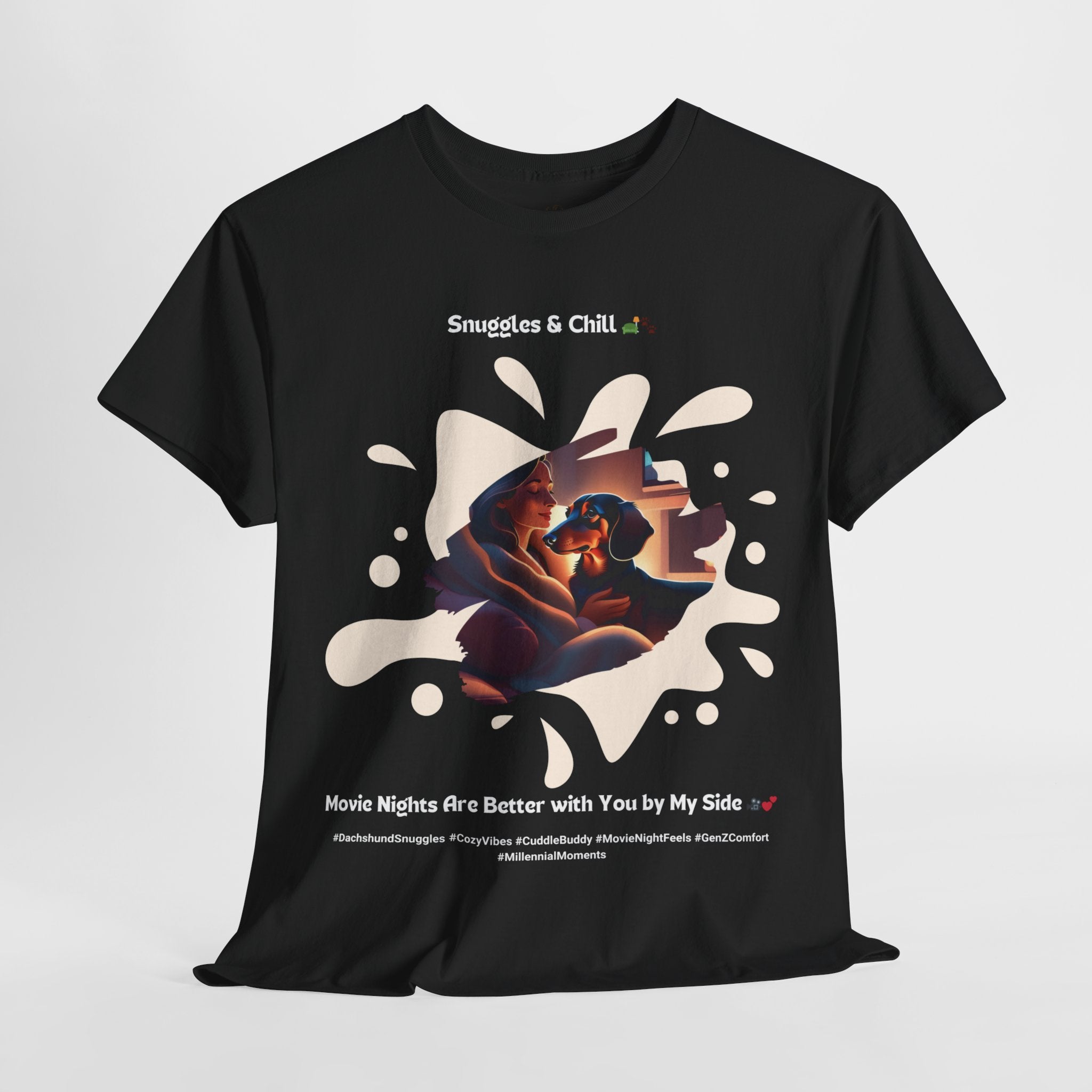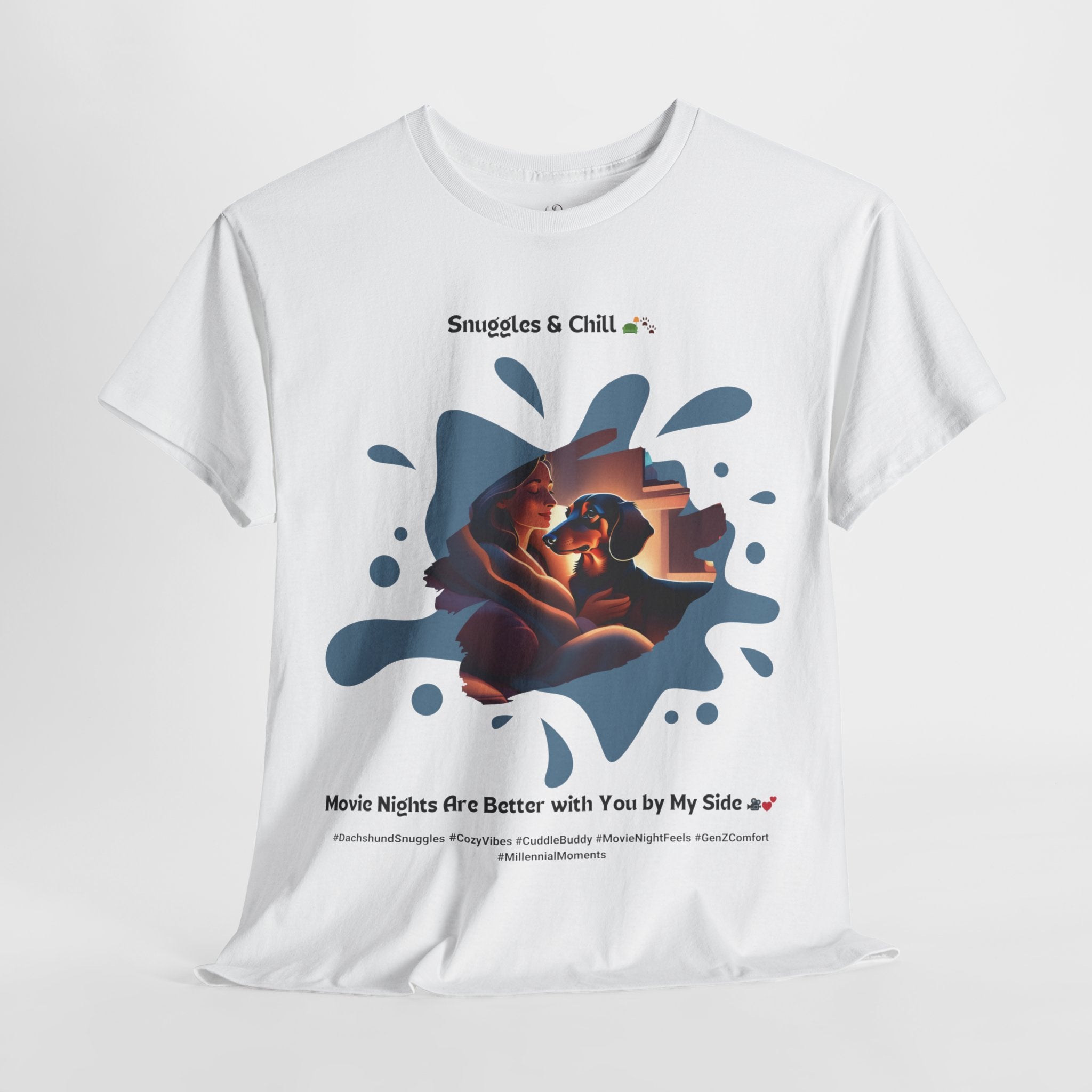 Women’s “Snuggles & Chill” Dachshund T-Shirt – Movie Night Pup, Dog Mom Gift