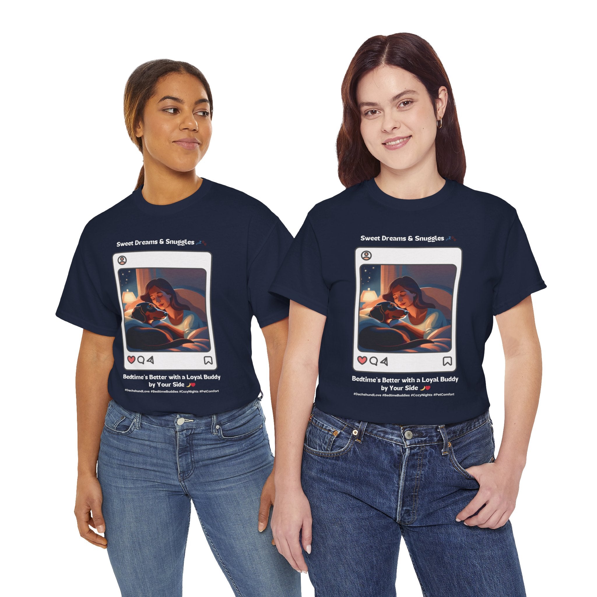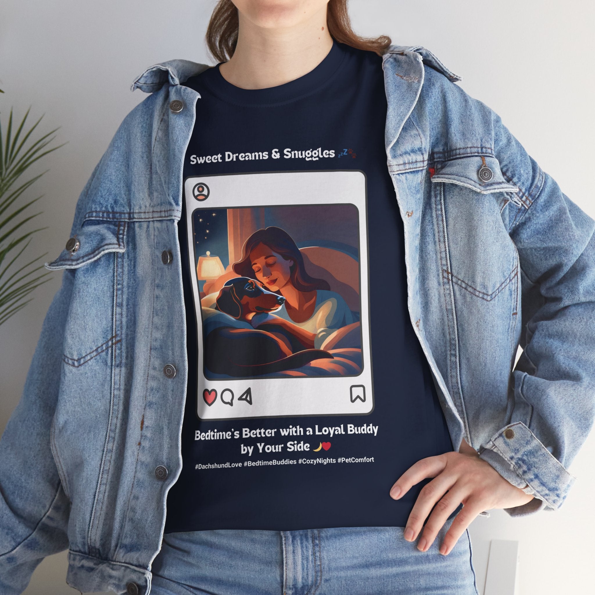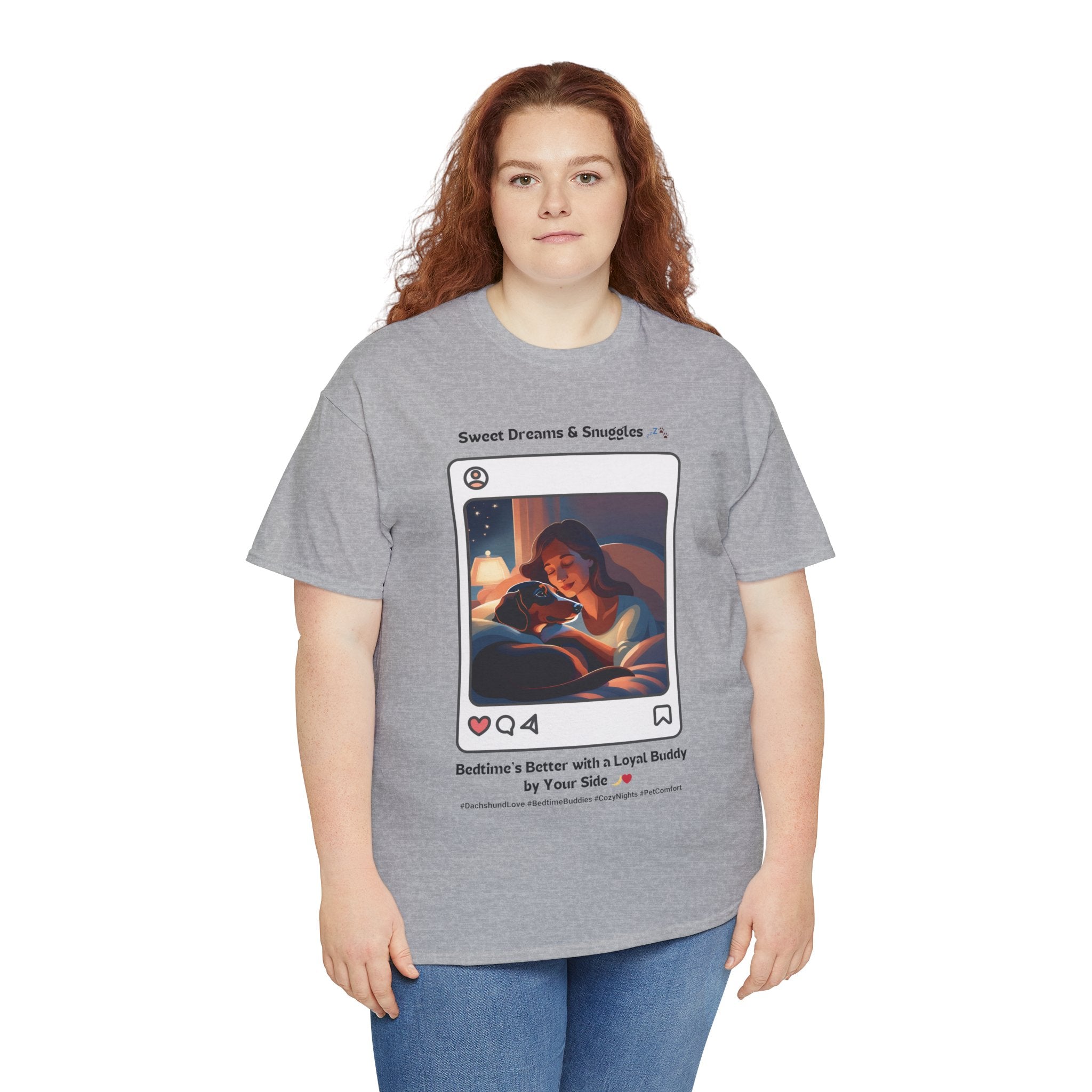 Women’s “Sweet Dreams & Snuggles” Dachshund T‑Shirt – Cozy Love Mom Gift