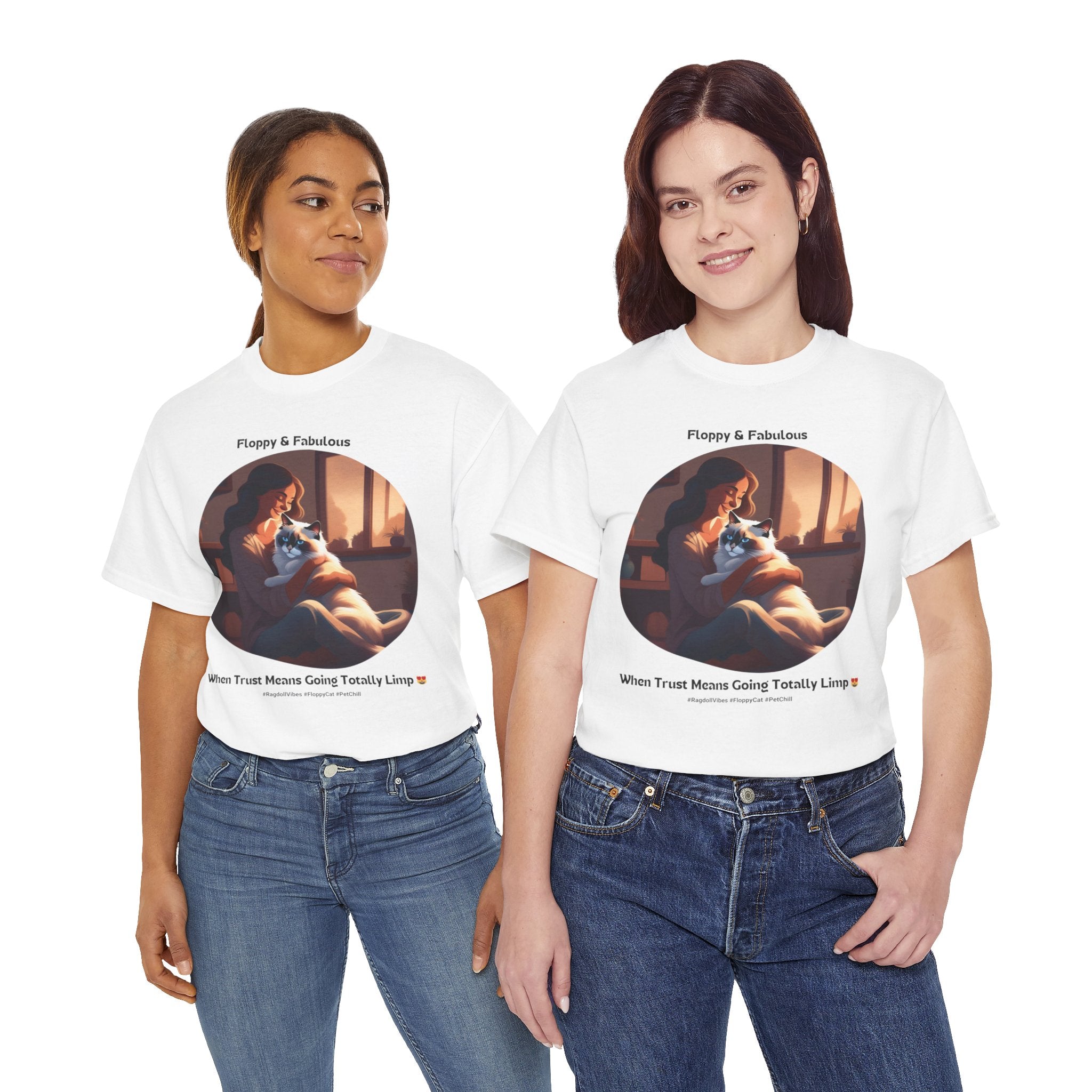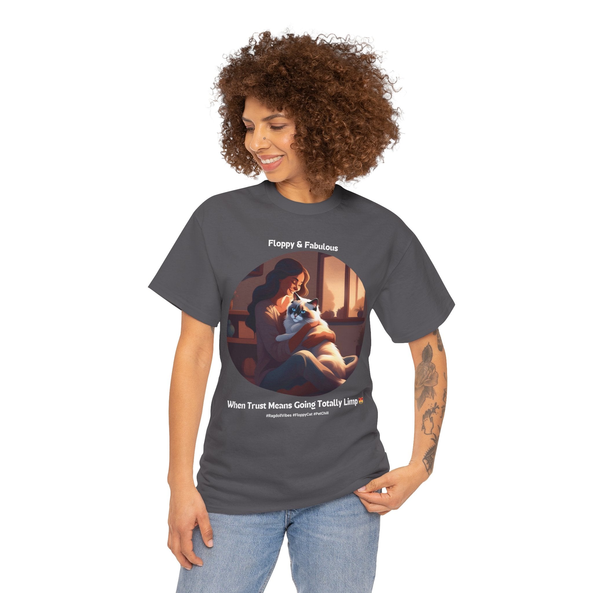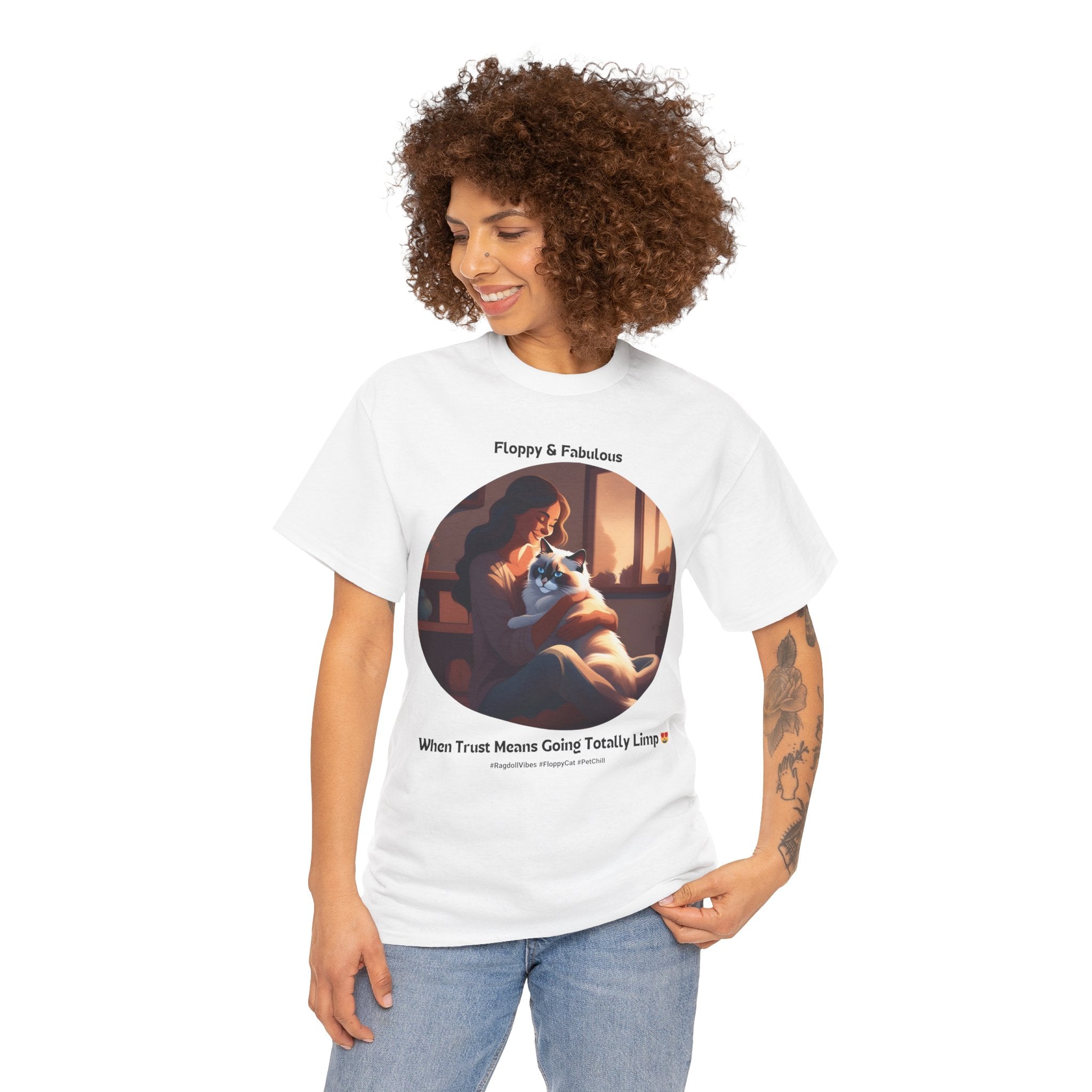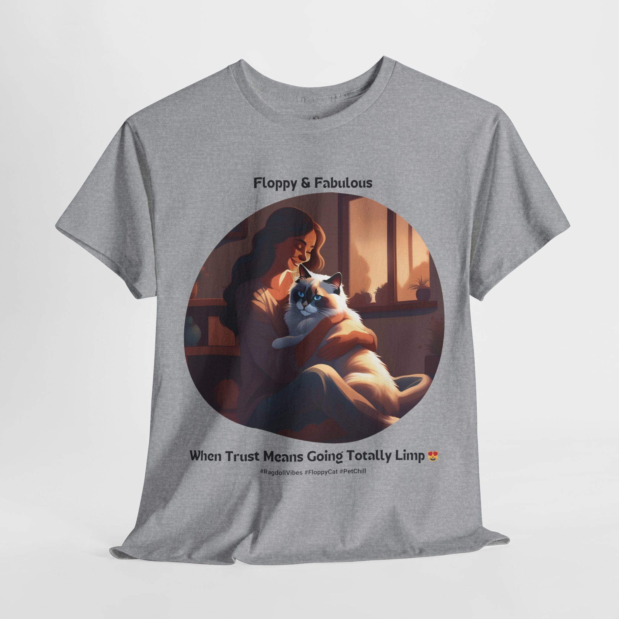 Experience the ultimate in feline relaxation with our Ragdoll t-shirt. This design features a heartwarming image of a human cuddling with a Ragdoll cat, capturing the trust and comfort that these incredible pets bring to our lives.