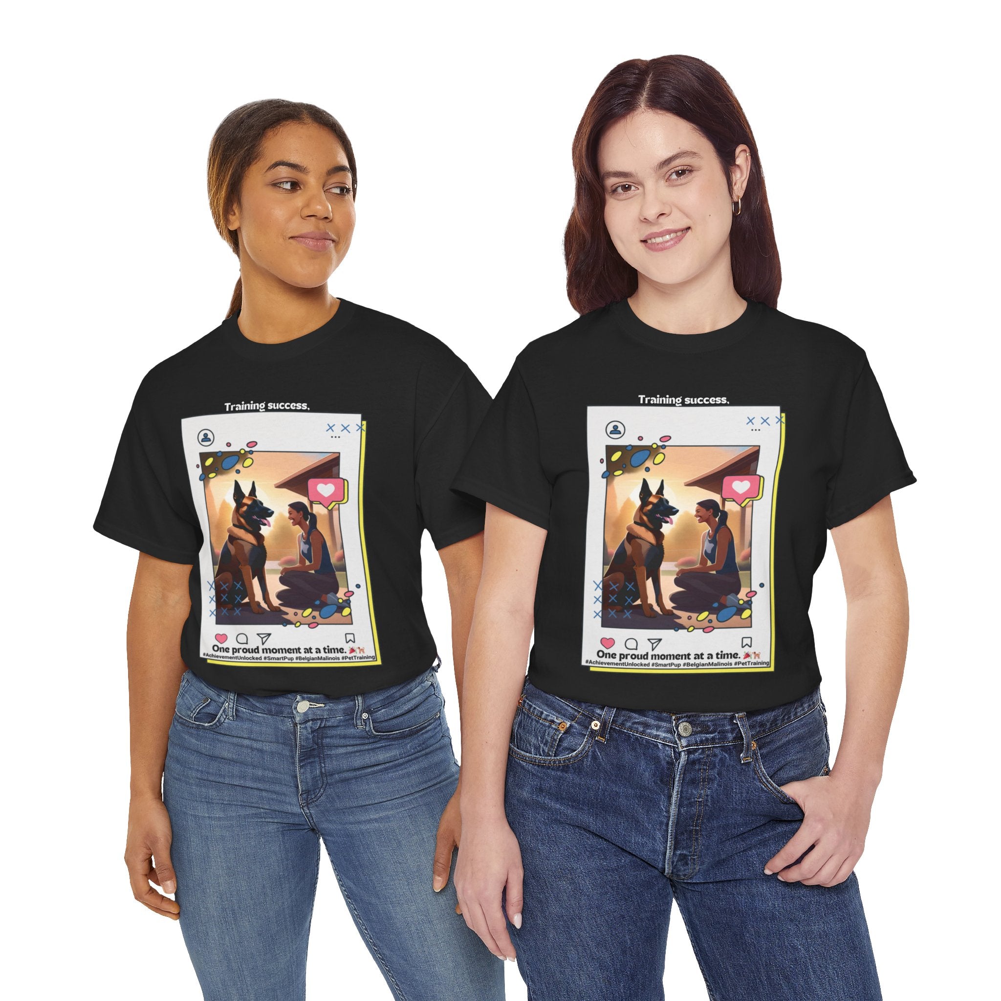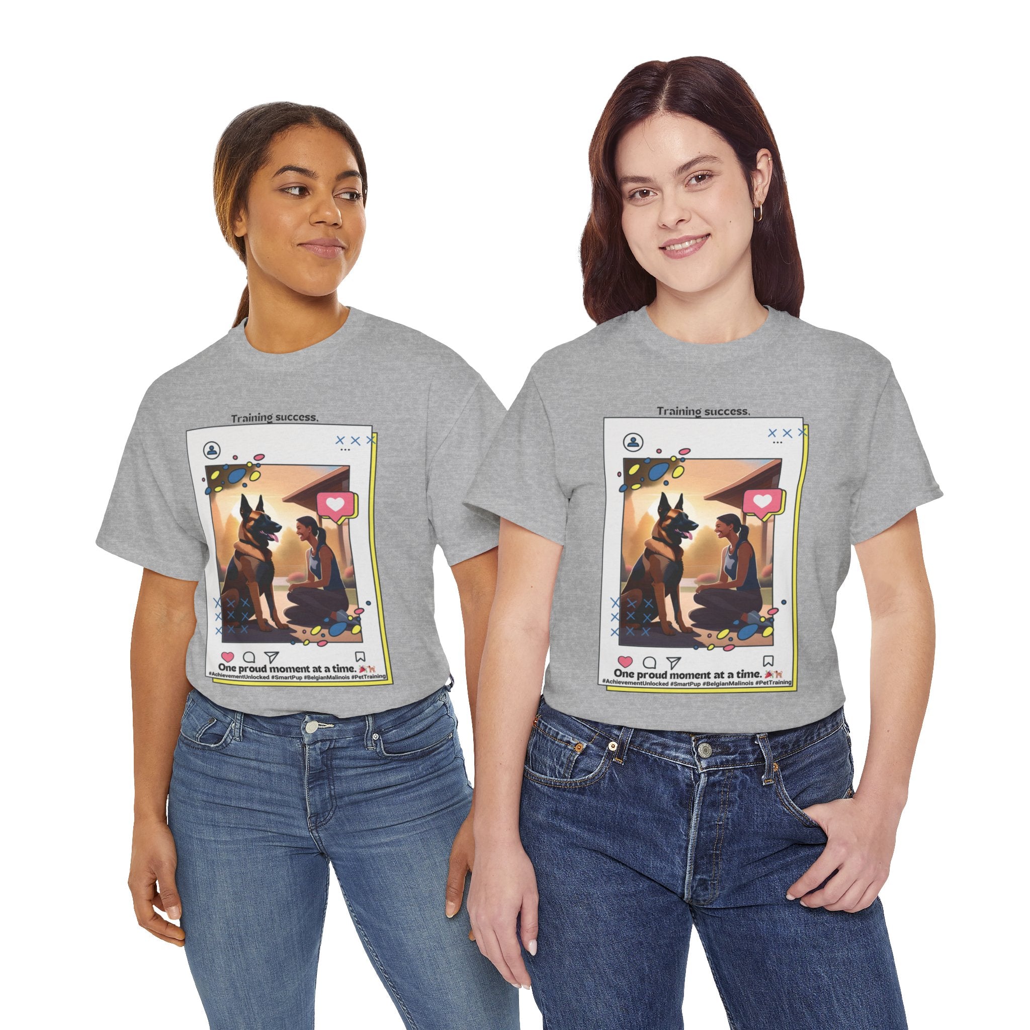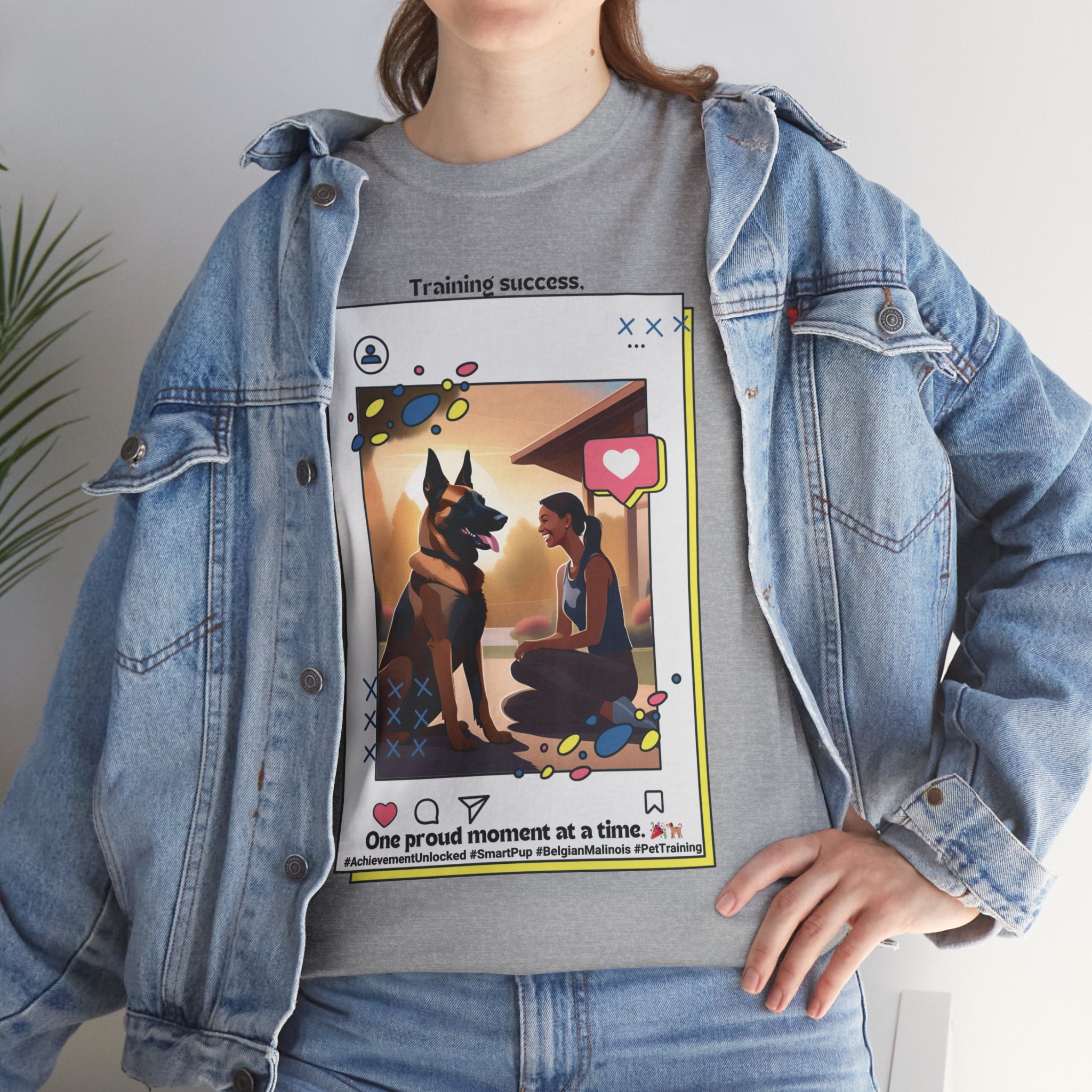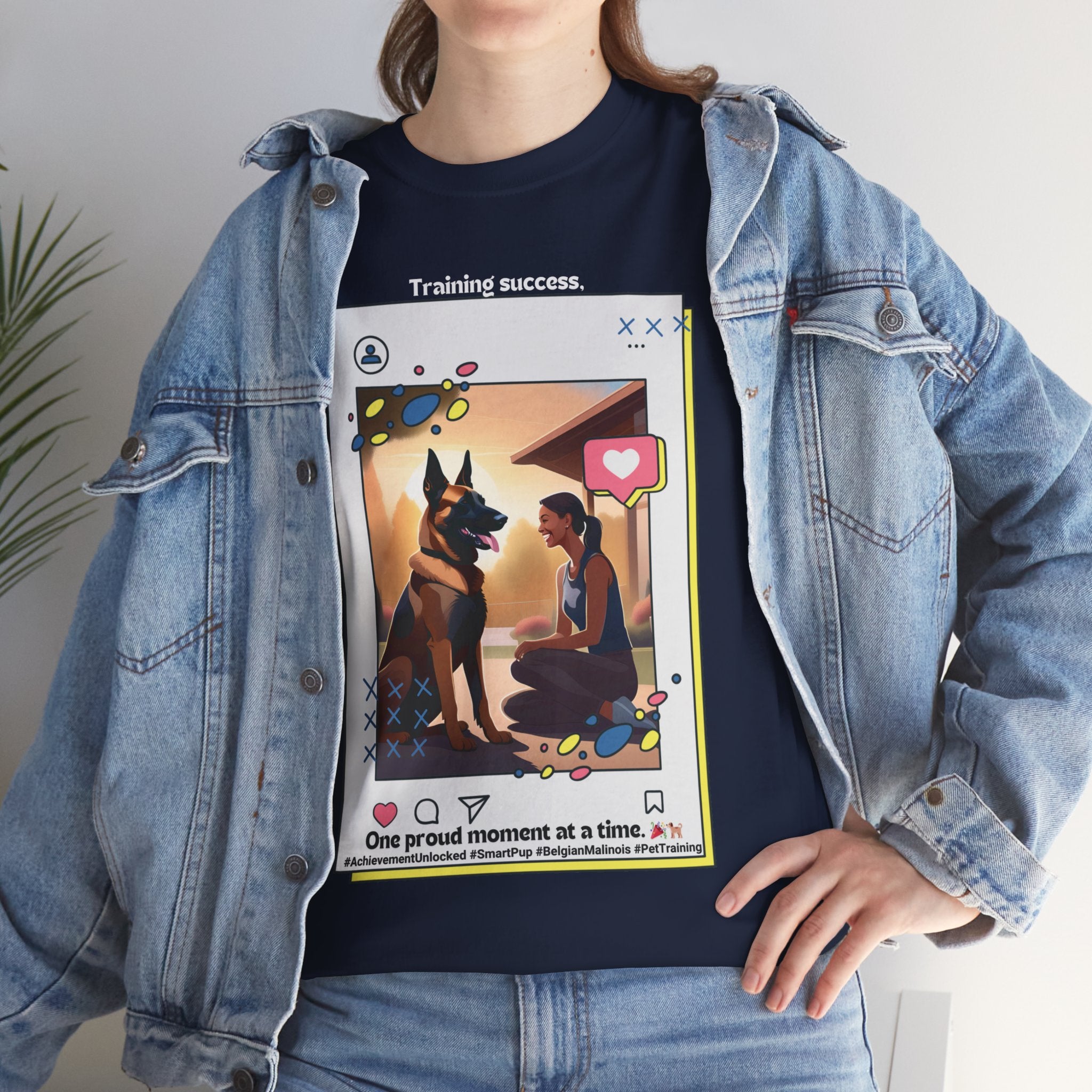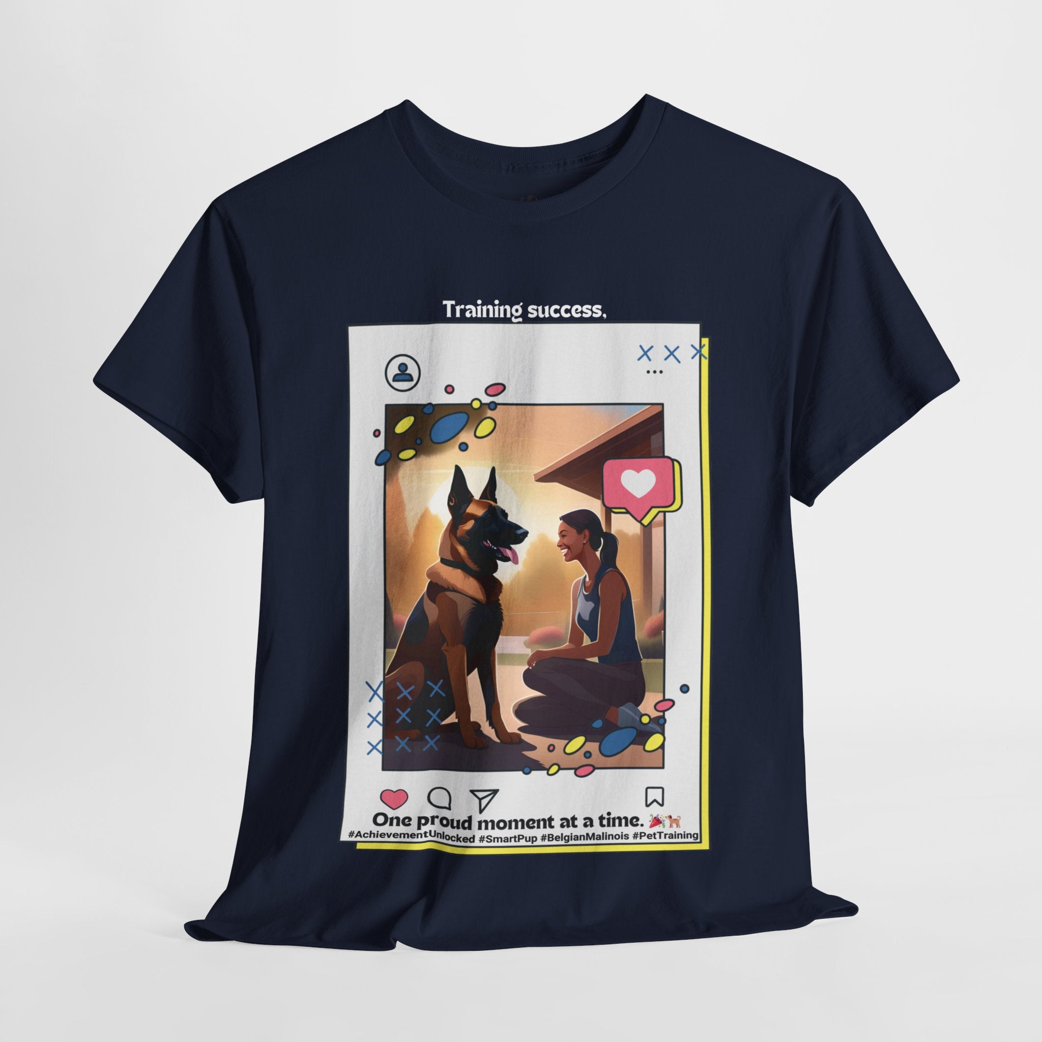 Are you a proud Belgian Malinois owner who loves training and bonding with your furry friend? This t-shirt is a must-have for any dog parent who appreciates their canine companion's intelligence and trainability. Our design features a happy owner celebrating a training milestone with their Belgian Malinois, showcasing the joy and satisfaction that comes from a successful training journey.