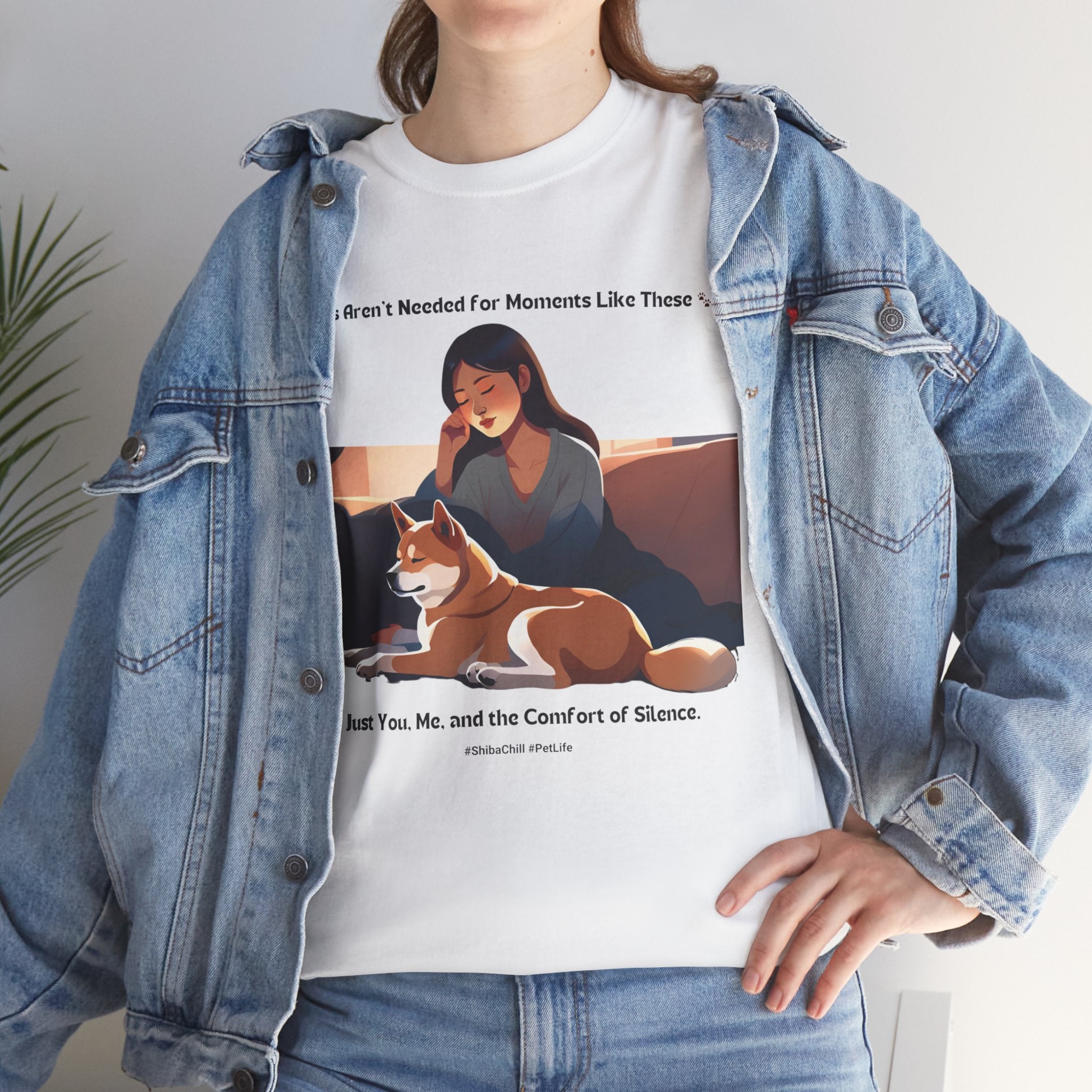 Women’s “Words Aren’t Needed” Shiba Inu T‑Shirt – Serene Pup Mom Gift