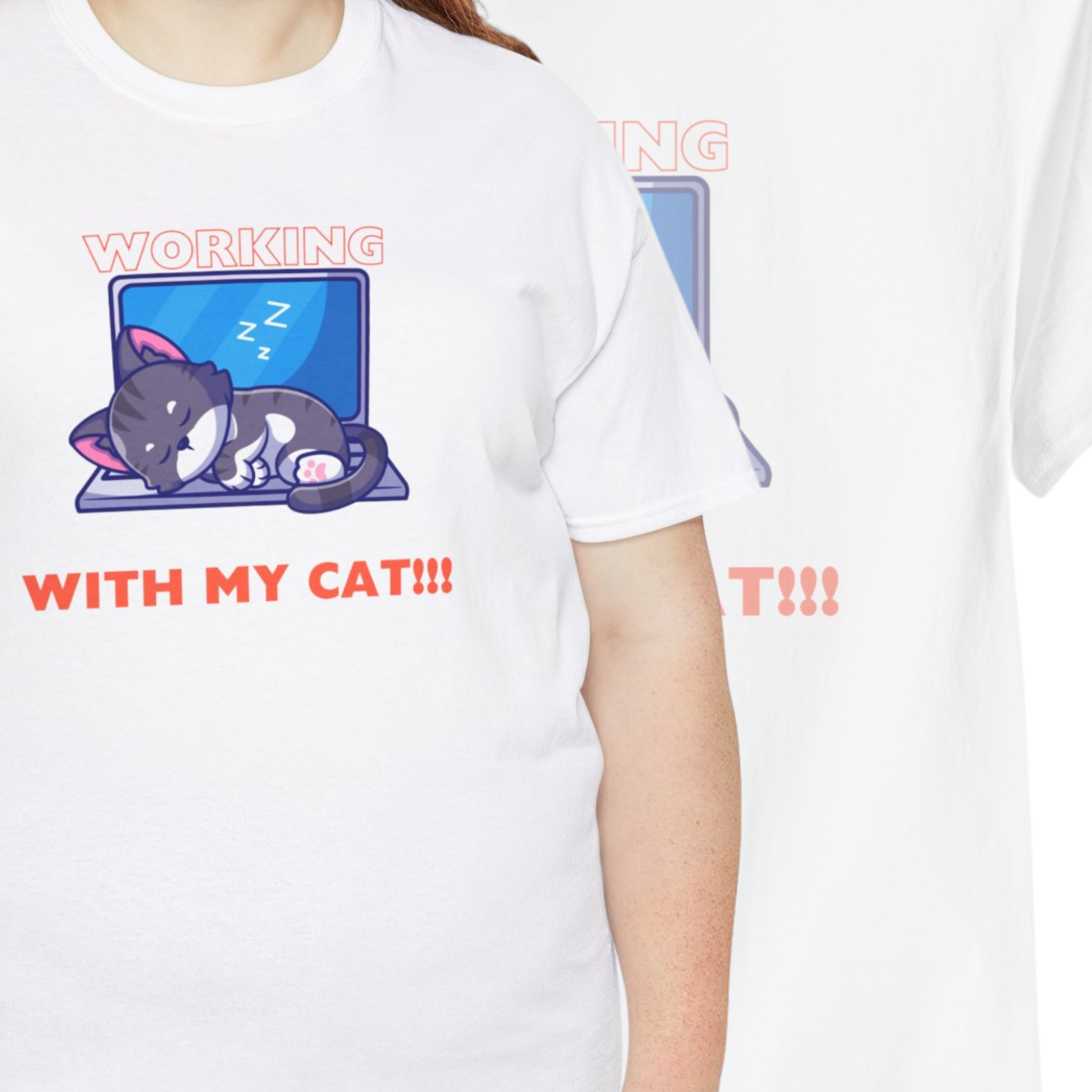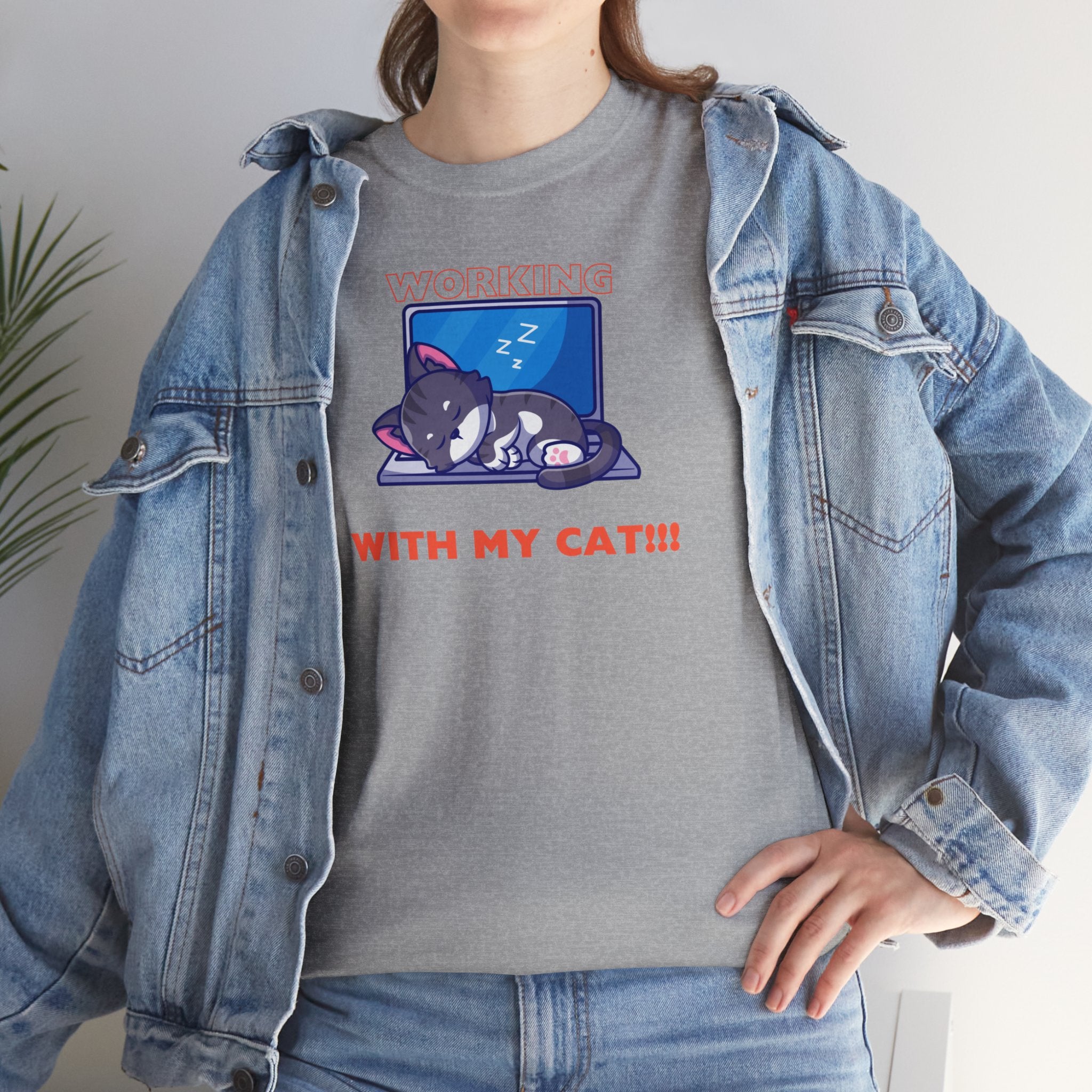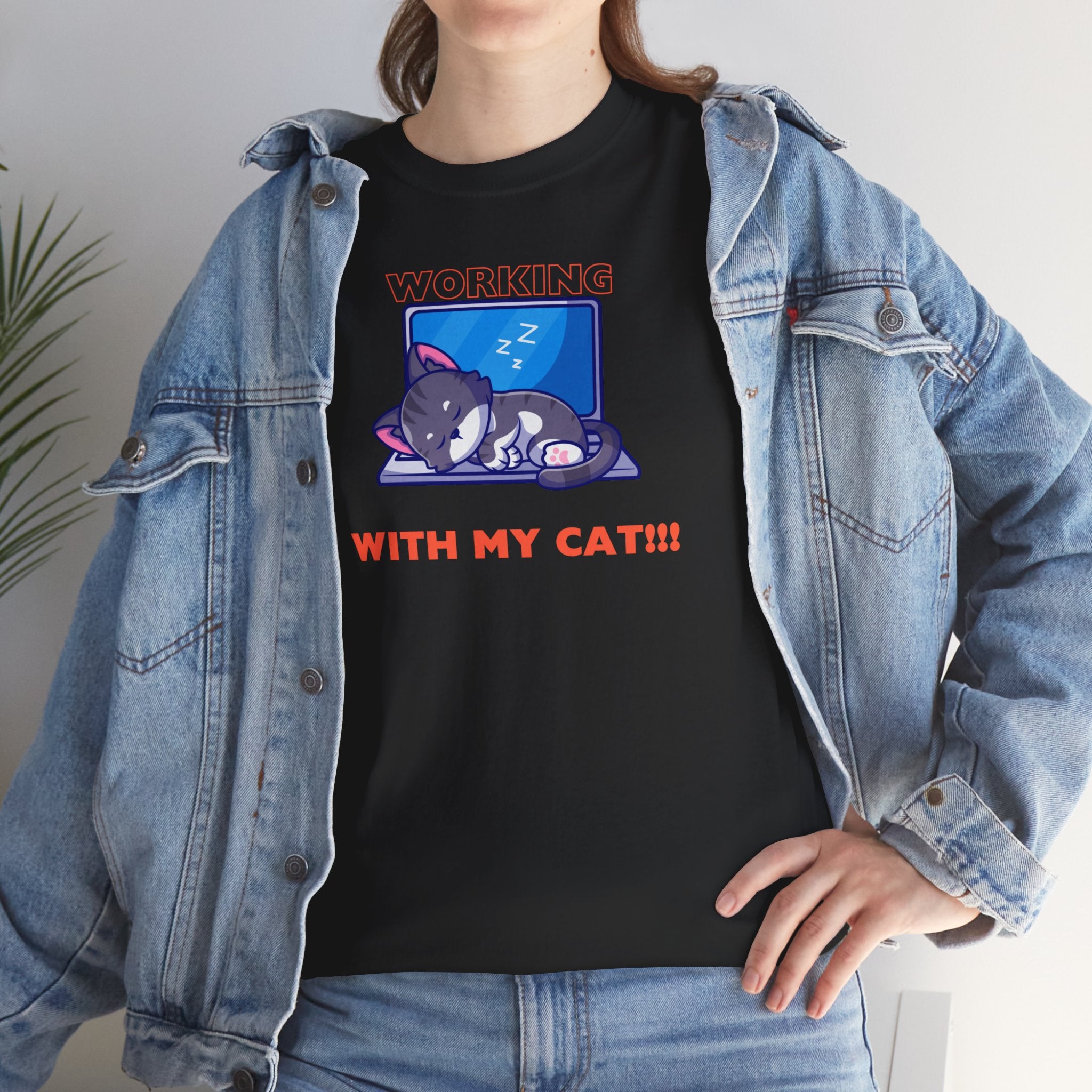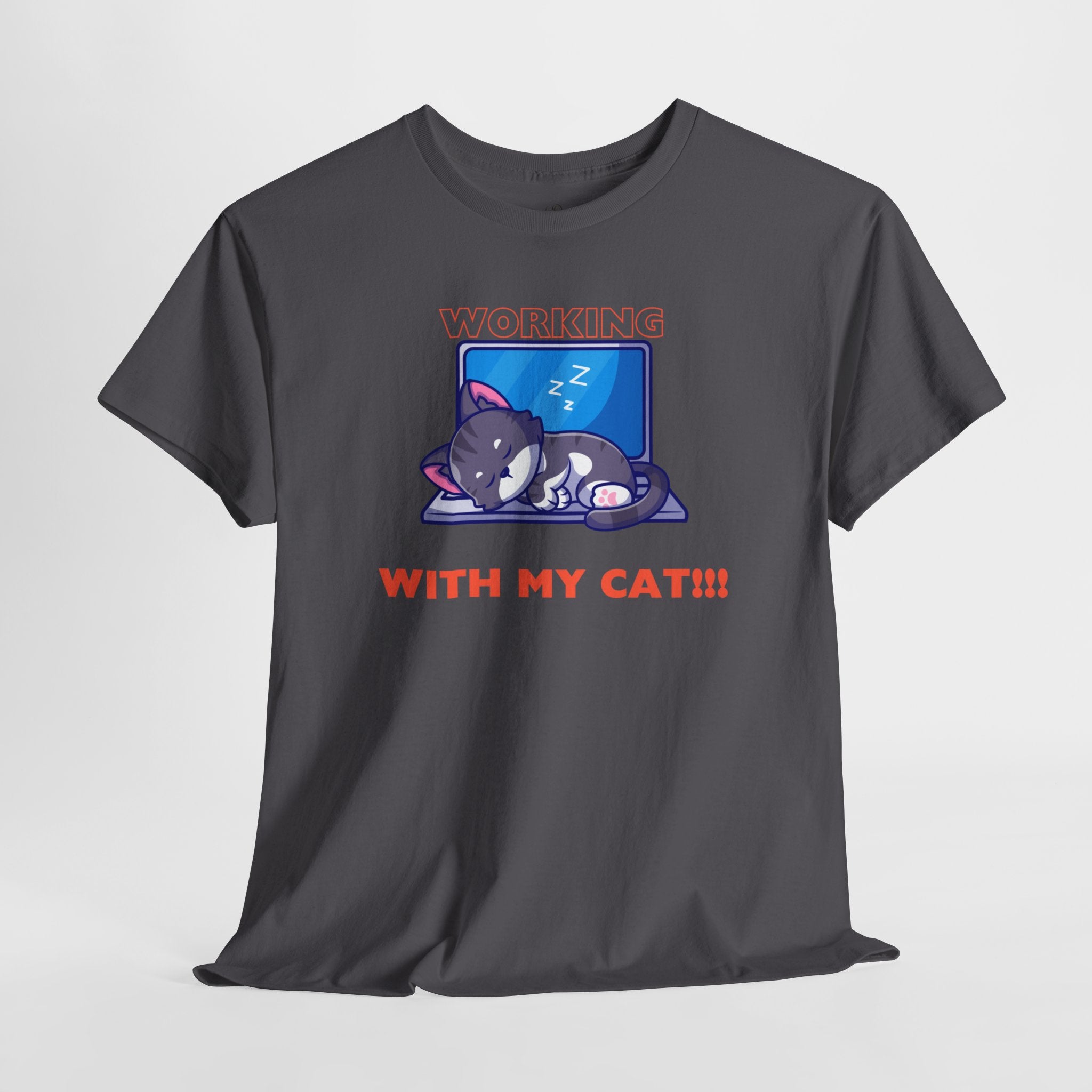 This humorous t-shirt features a cat napping on a laptop, capturing the relatable struggle of working from home with a feline friend. The design acknowledges the inconveniences but also celebrates the joy and companionship that cats bring to our lives.